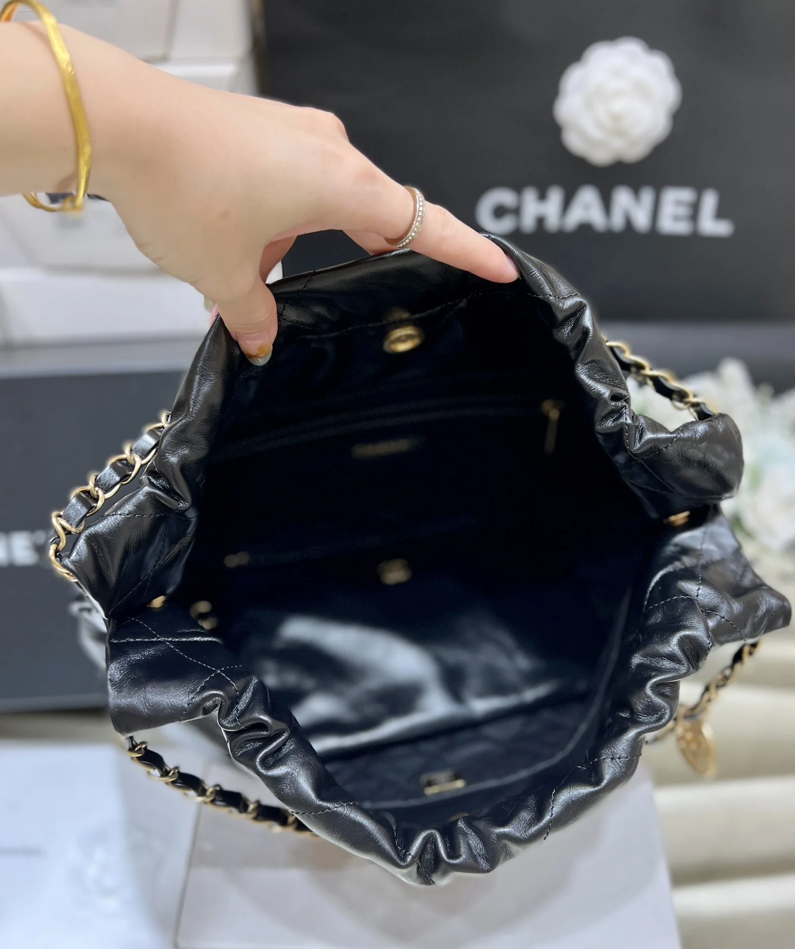 24C Early Spring Resort Collection 22 Horizontal Trash Bag, purchased at retail for 46,500. This horizontal trash bag from the 24C collection is highly sought after! As a staple piece from Chanel in recent years, it has been loved by celebrities. Practical, timeless, and classic, it s a must-have. Recommended: Authentic bodin vintage calfskin AS4486 (43*30*8cm).