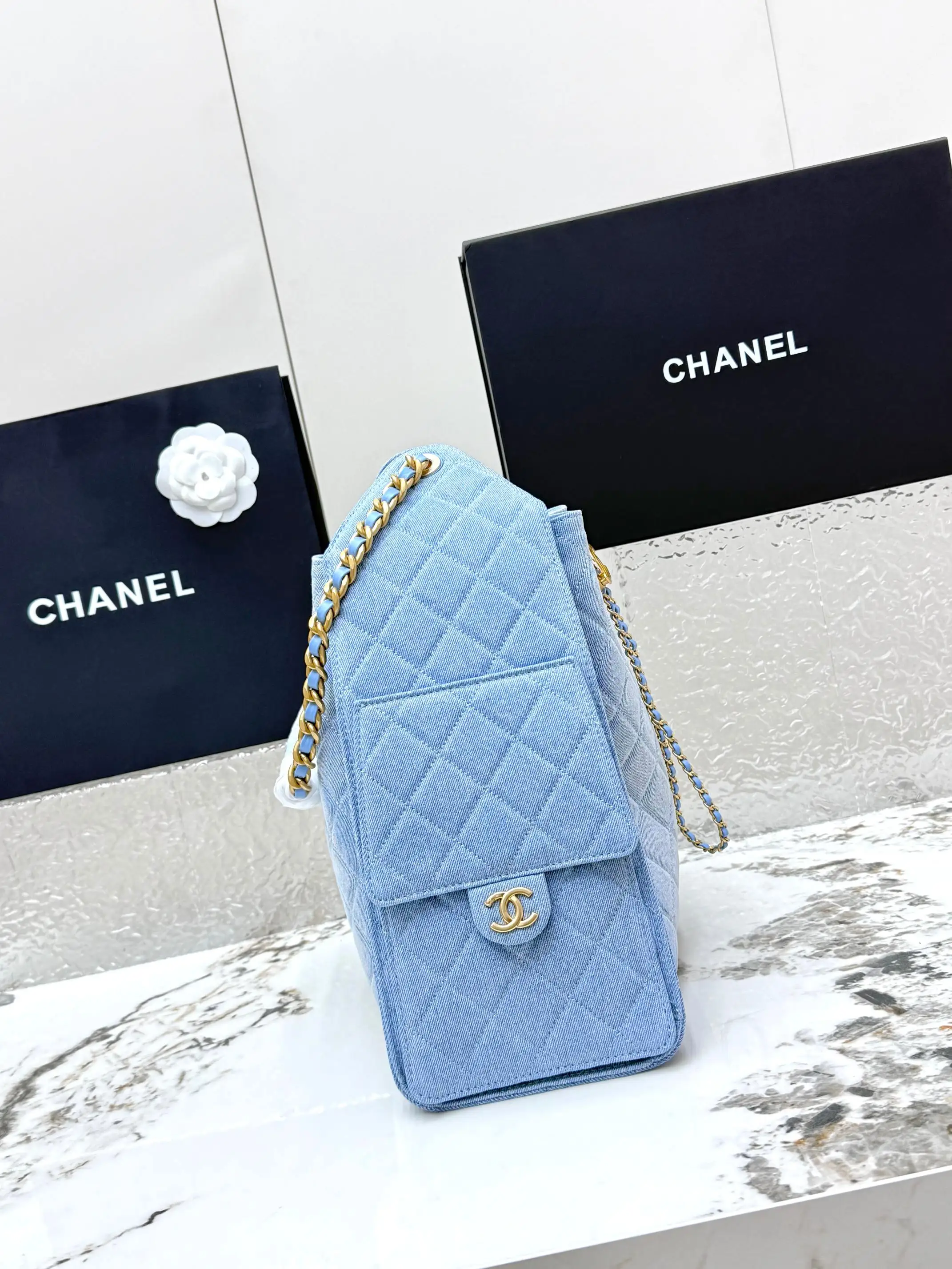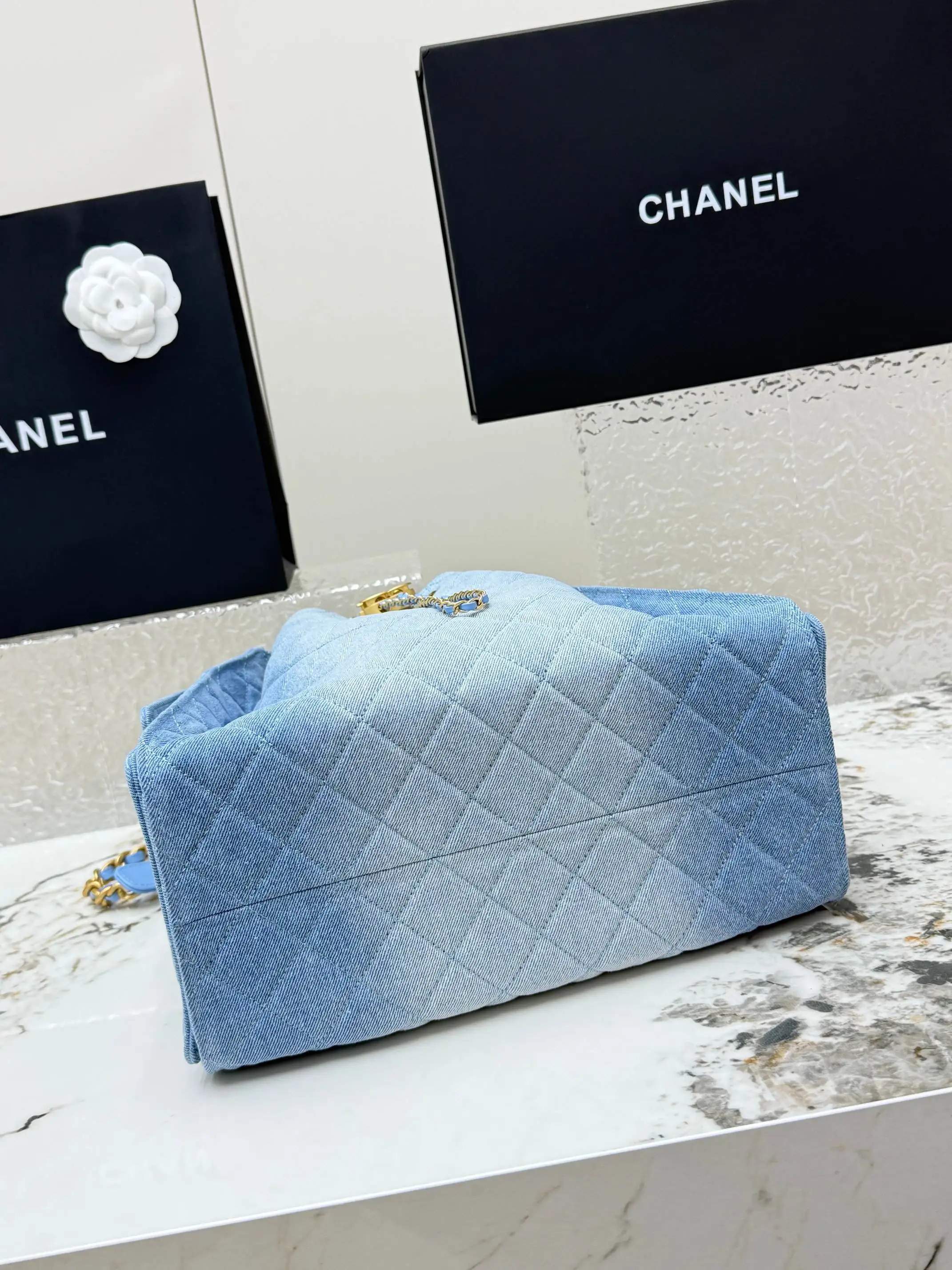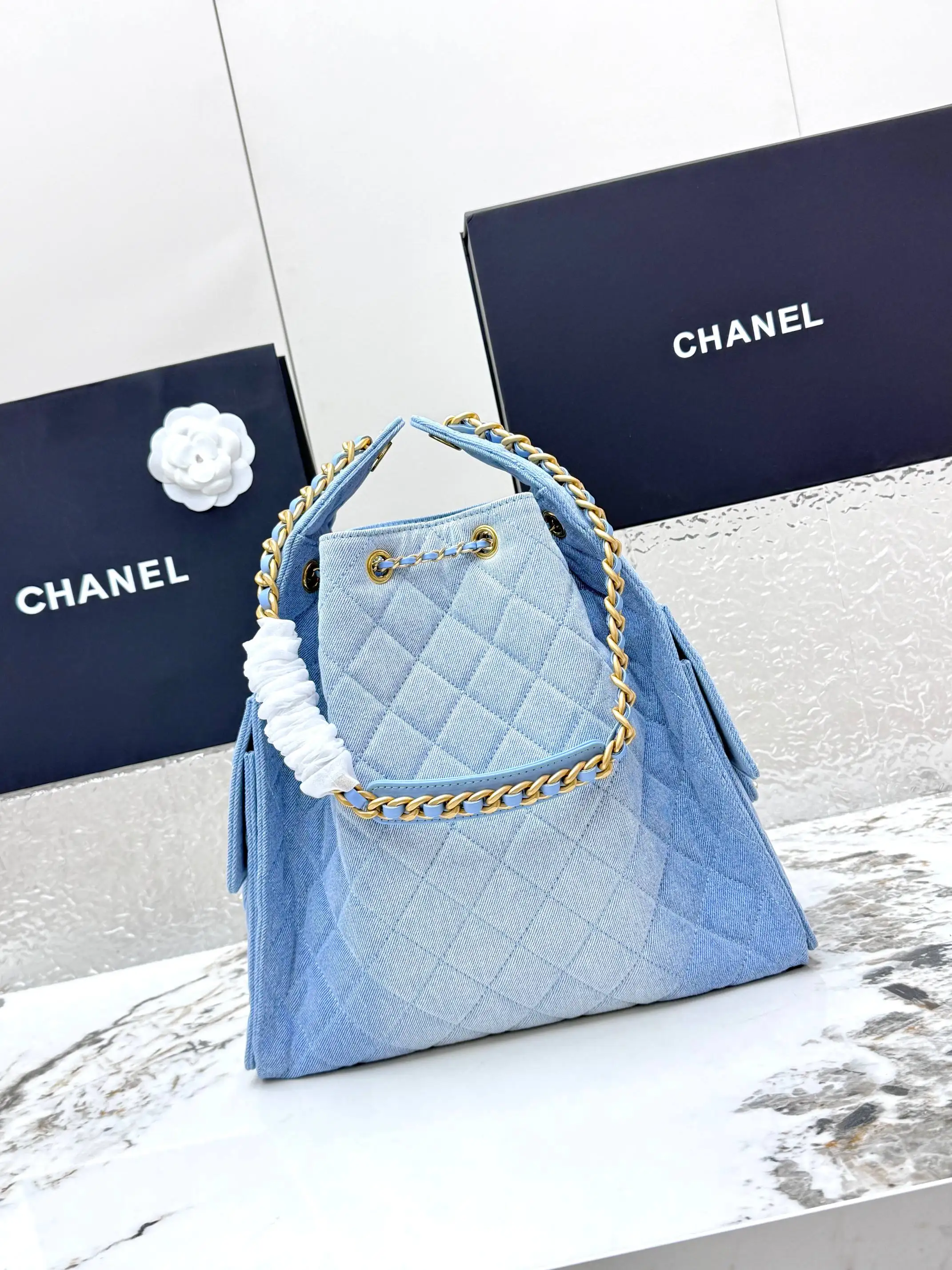 [Imported Genuine Leather ] CHANEL [Rose] (Medium Denim) Original Order Chanel Shoulder Bag 25Bag 26C Gold Double C Logo Quilted Pattern Leather Woven Chain Grained Embossed Imported Denim with Calfskin [Coffee] Medium Classic Blue Fabric, Runway Hot Hobo Unique design, the multi-pocket design perfectly embodies a casual and lazy vibe, paired with a lustrous retro hardware logo, it can be said to be the king of this season. Model: AS5311 Dimensions: Length 40xWidth 15xHeight 30cm!
