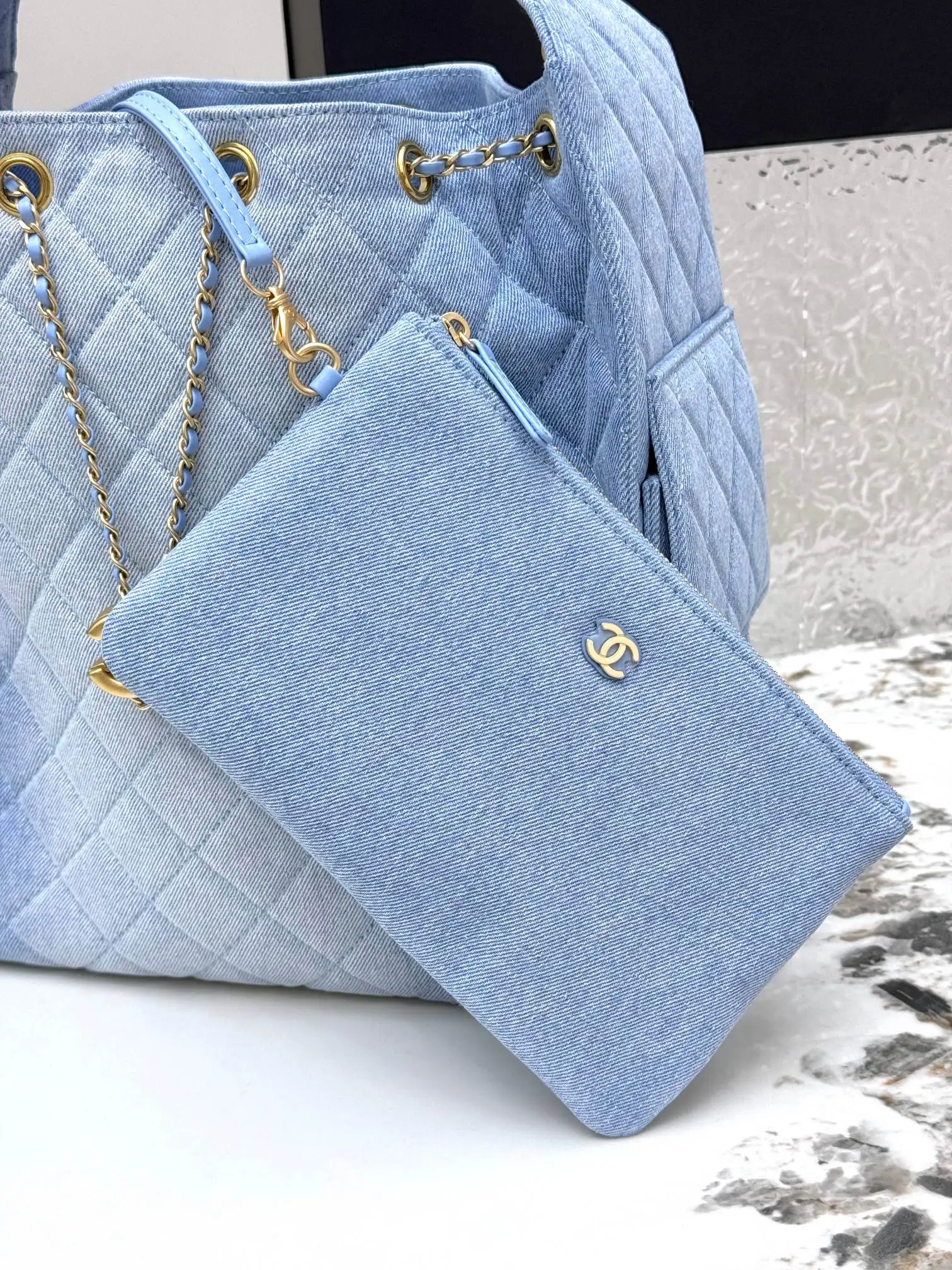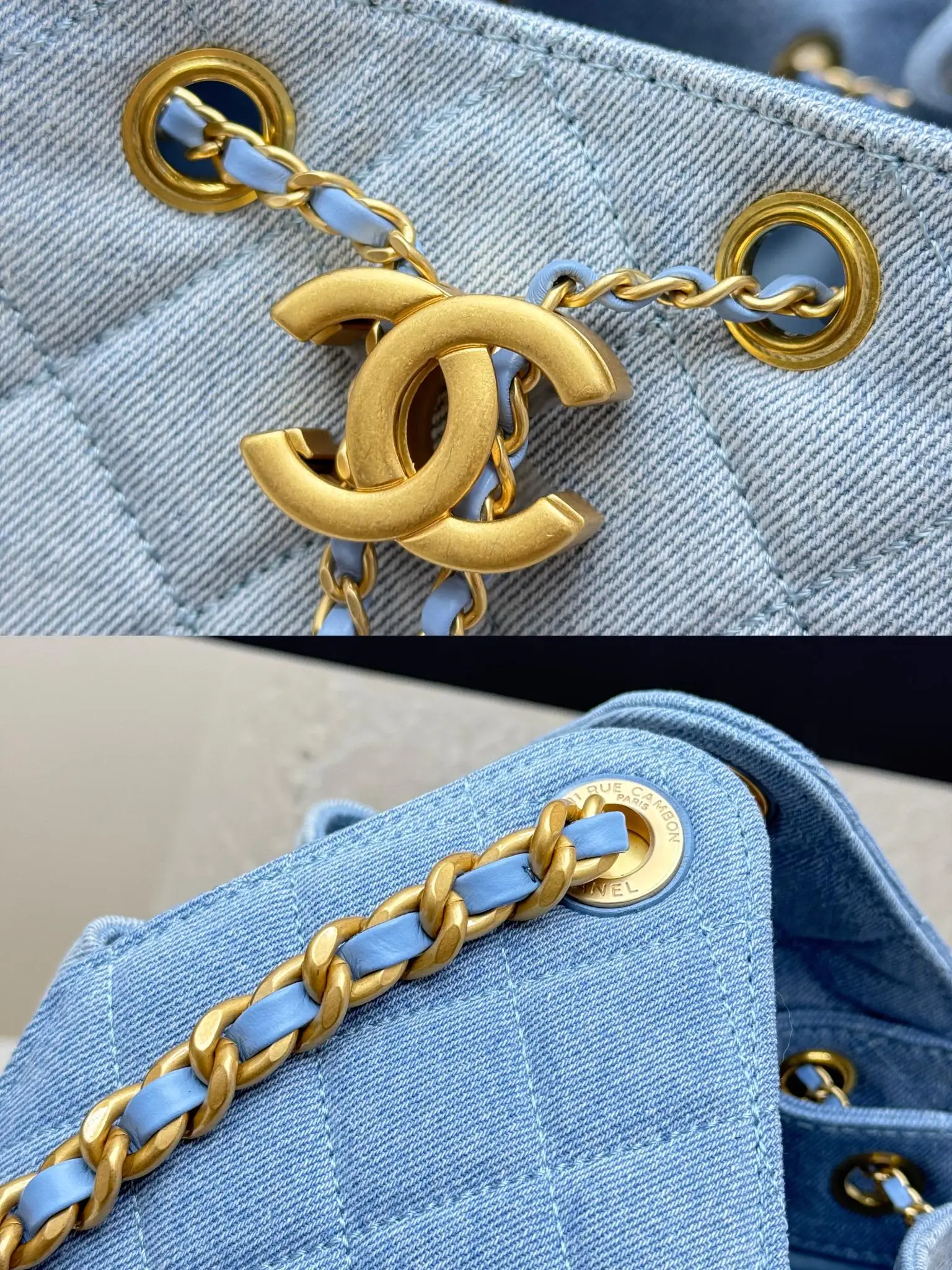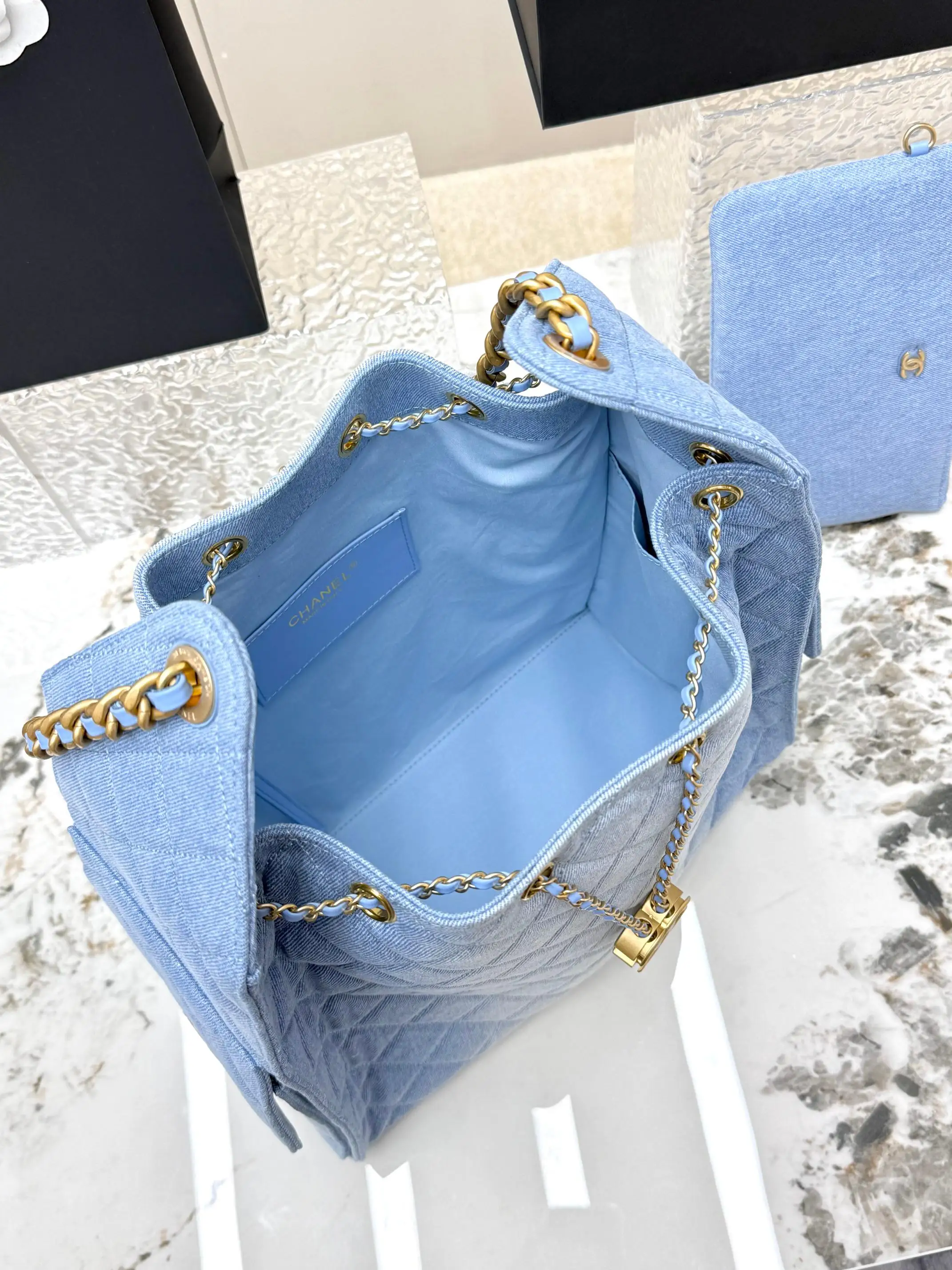 [Imported Genuine Leather ] CHANEL [Rose] (Medium Denim) Original Order Chanel Shoulder Bag 25Bag 26C Gold Double C Logo Quilted Pattern Leather Woven Chain Grained Embossed Imported Denim with Calfskin [Coffee] Medium Classic Blue Fabric, Runway Hot Hobo Unique design, the multi-pocket design perfectly embodies a casual and lazy vibe, paired with a lustrous retro hardware logo, it can be said to be the king of this season. Model: AS5311 Dimensions: Length 40xWidth 15xHeight 30cm!