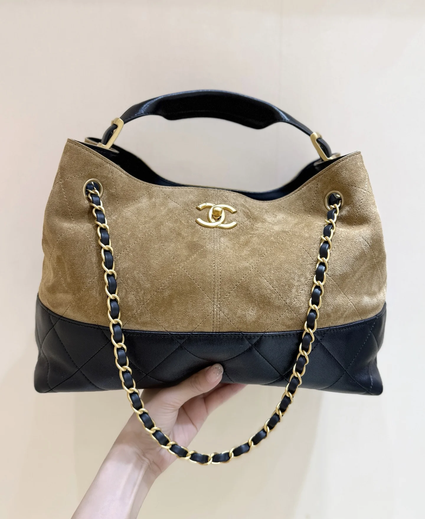 Original factory chip version 25A, purchased for 56000. Chane1 25A Suede Patchwork Hobo from the Metiers d art collection. The Metiers d art collection is the most anticipated each..