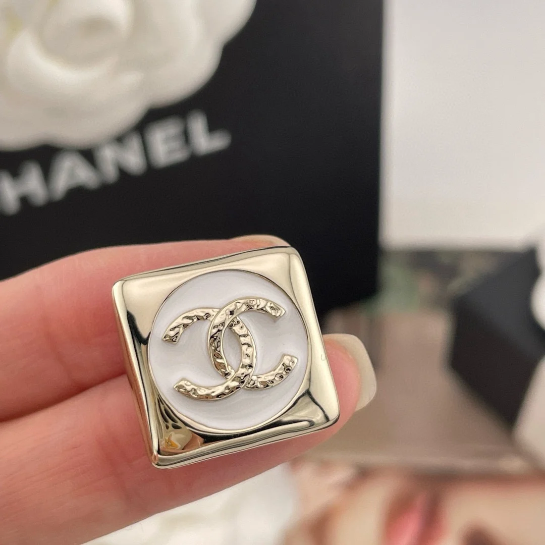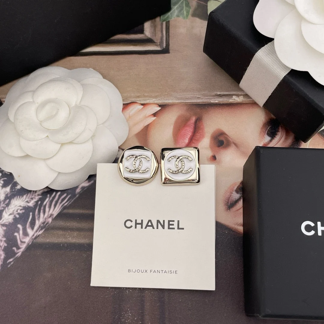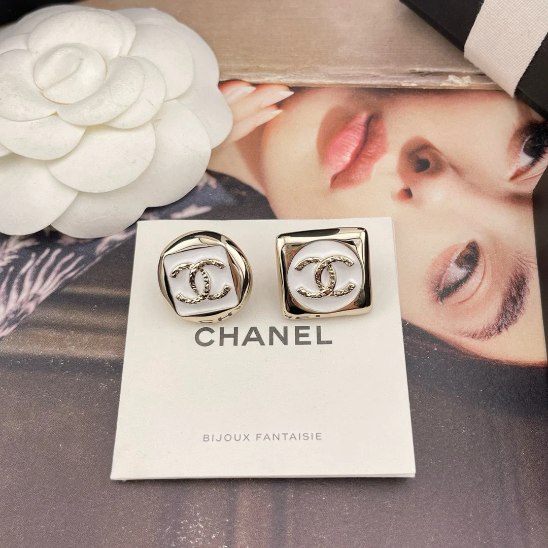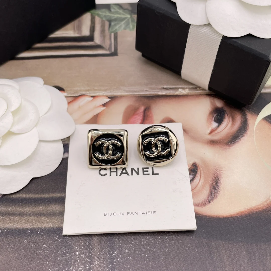 Chanel Asymmetrical enamel stud earrings with geometric shapes