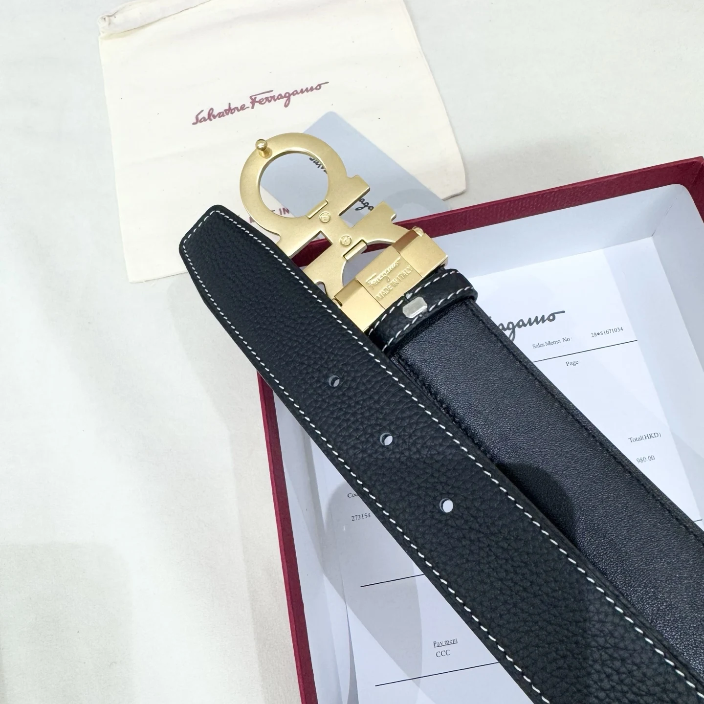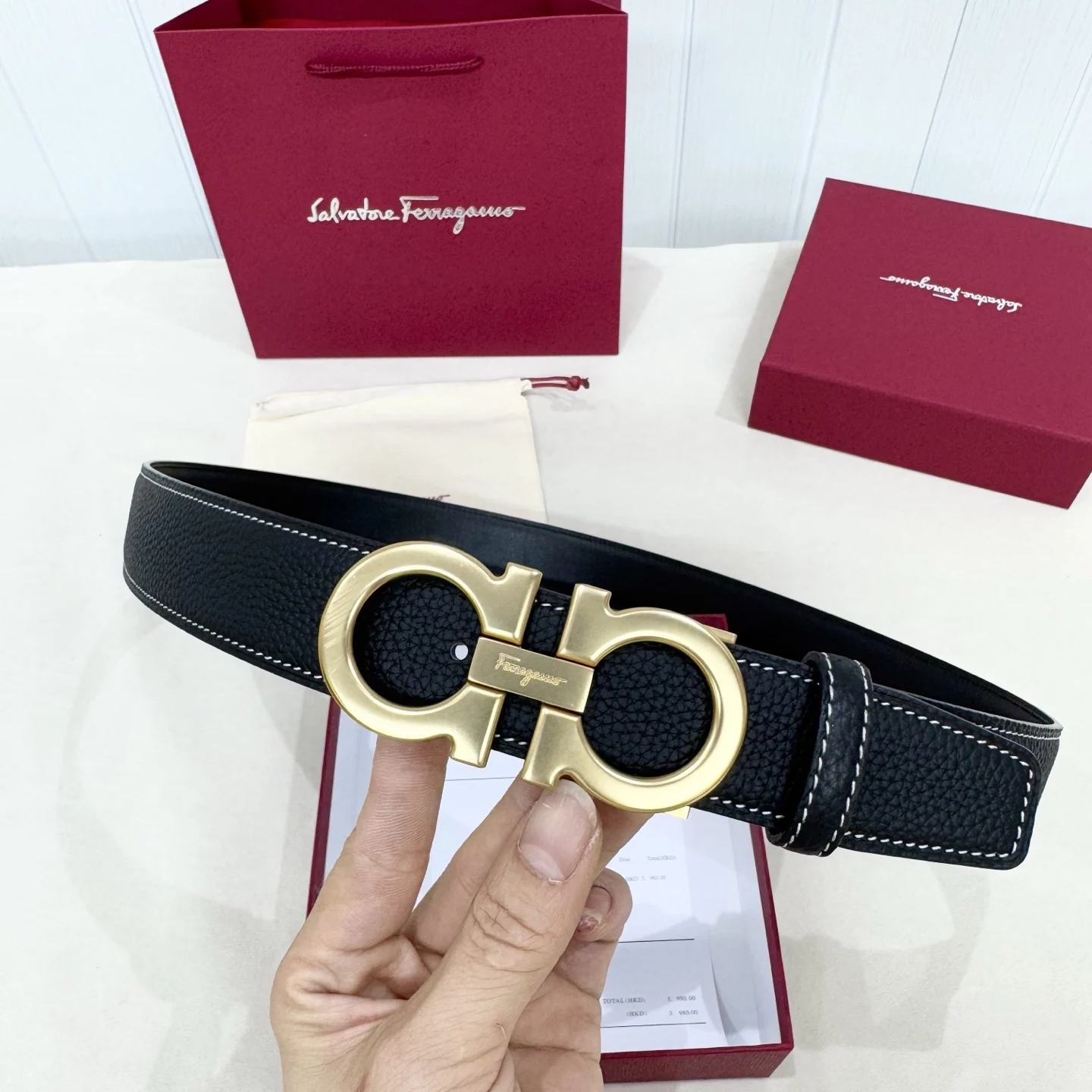 Ferragamo full set packaging, 3.5cm width, custom-made men s belt, double-sided imported cowhide, reversible, freely selectable pairing, genuine material, very textured, fashionabl..