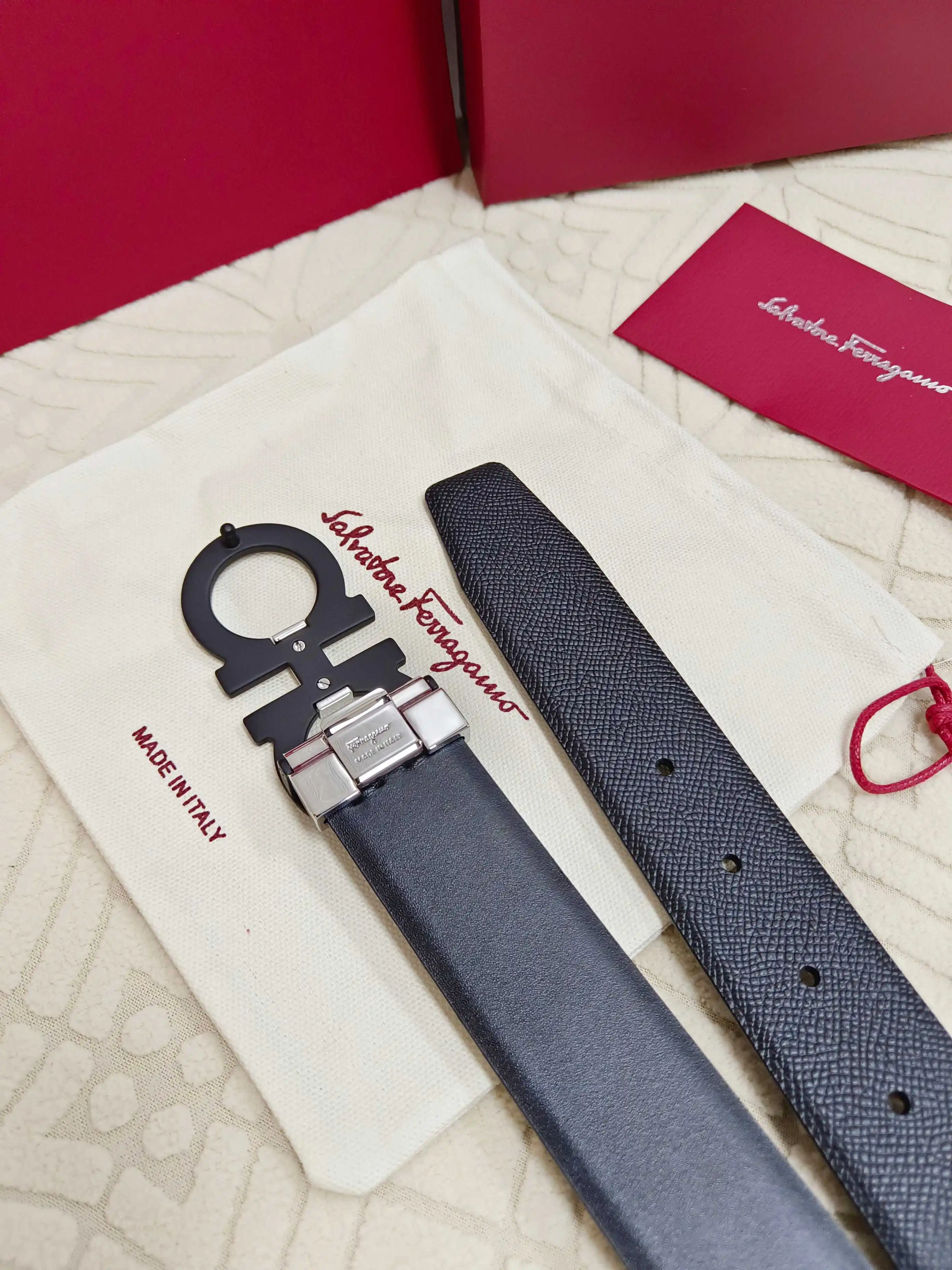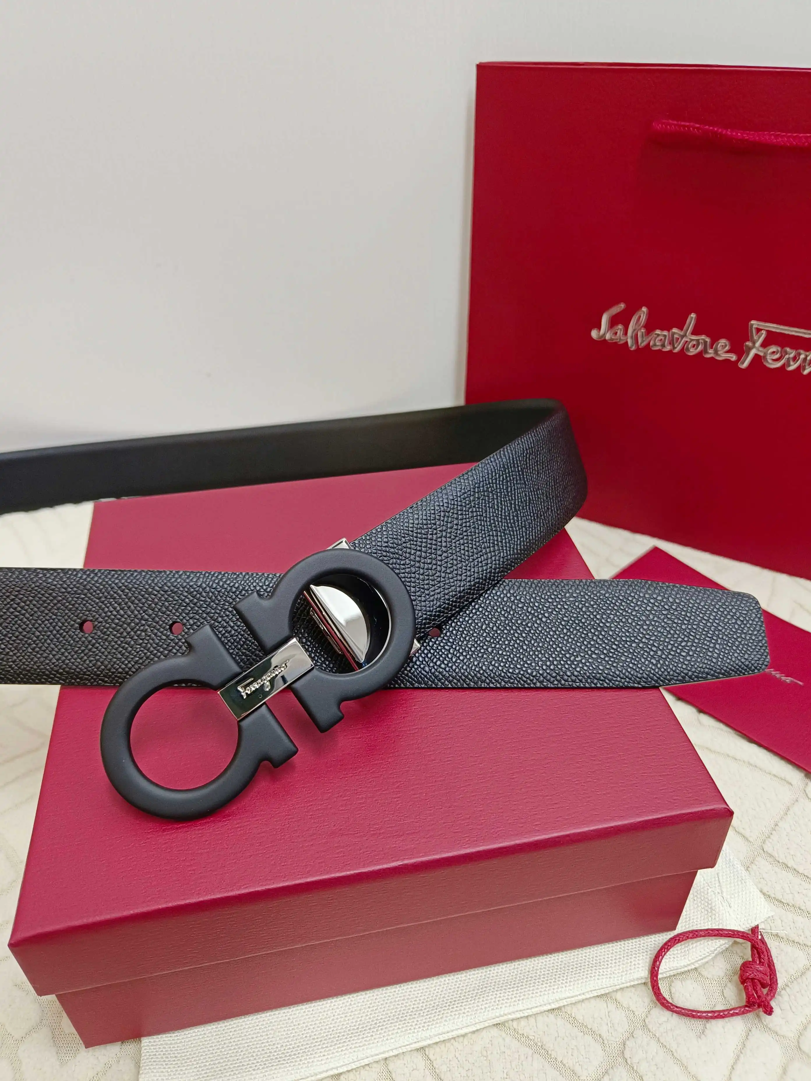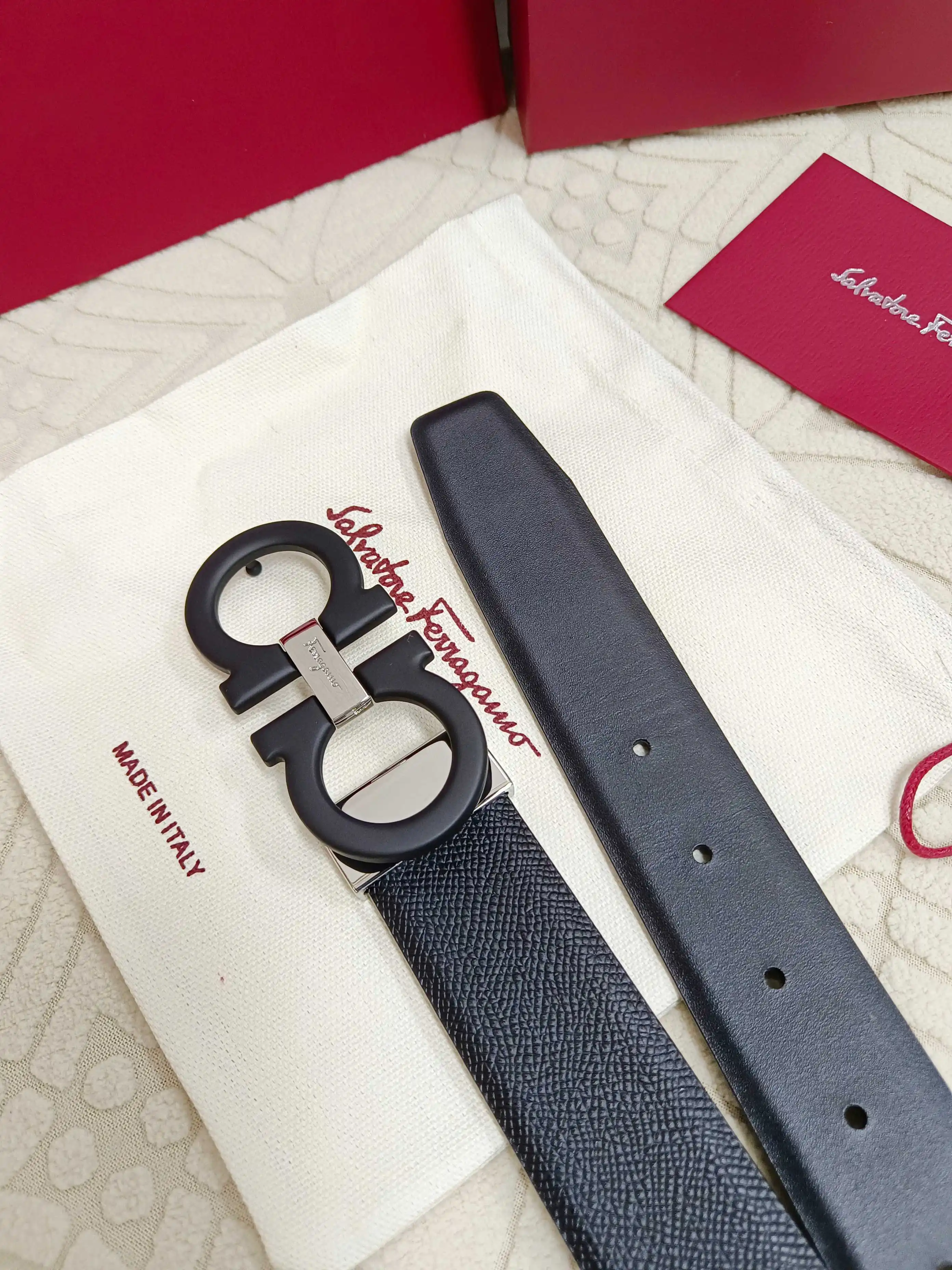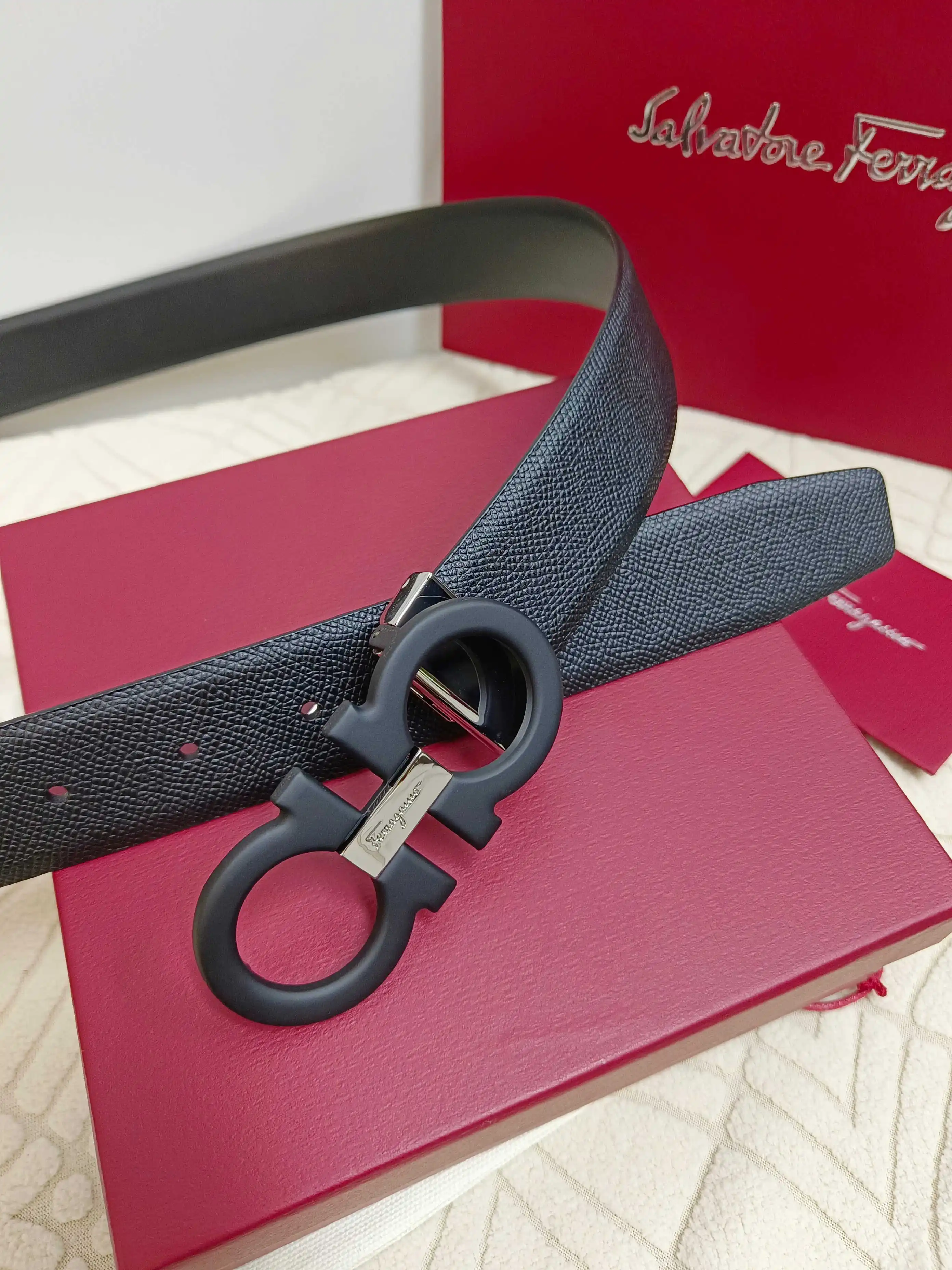 Ferragamo full set packaging, 3.5cm width, custom-made mens belt, double-sided imported cowhide, reversible, freely selectable pairing, genuine material, very textured, fashionable..