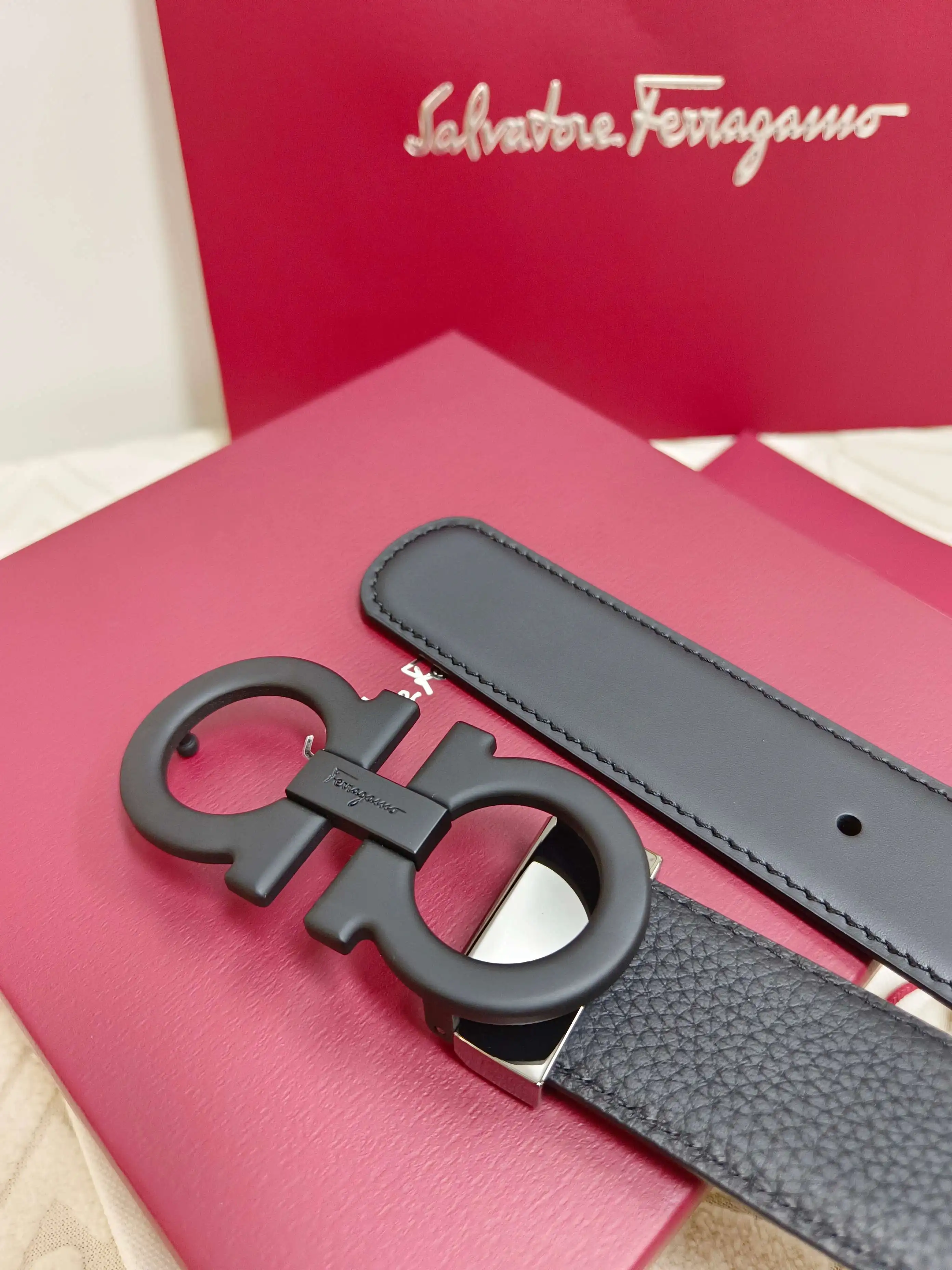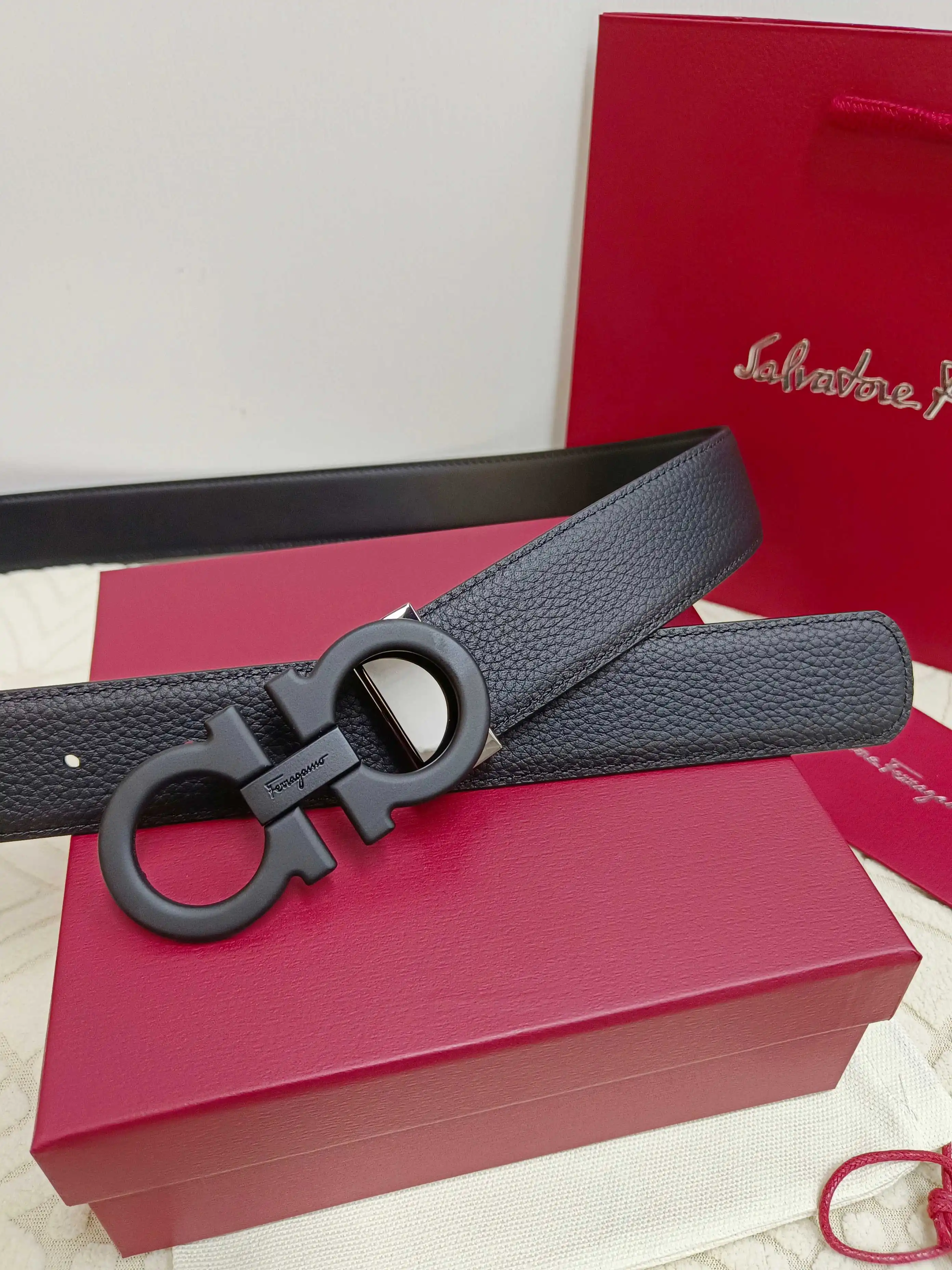 Ferragamo full set packaging, 3.5cm width, custom-made men s belt, double-sided imported cowhide, reversible, freely selectable pairing, genuine material, very textured, fashionabl..
