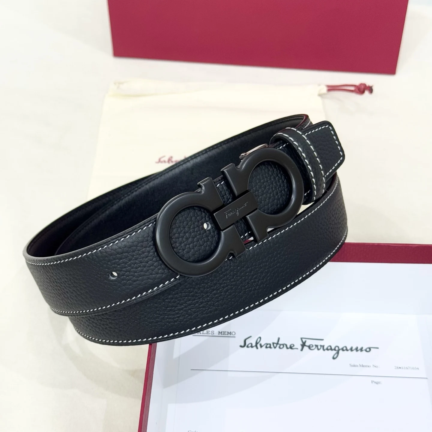 Ferragamo full set packaging, 3.5cm width, custom-made men s belt, double-sided imported cowhide, reversible, freely selectable match, genuine material, very textured, fashionable and classic, with exquisite tail clip buckle, length can be cut by yourself.