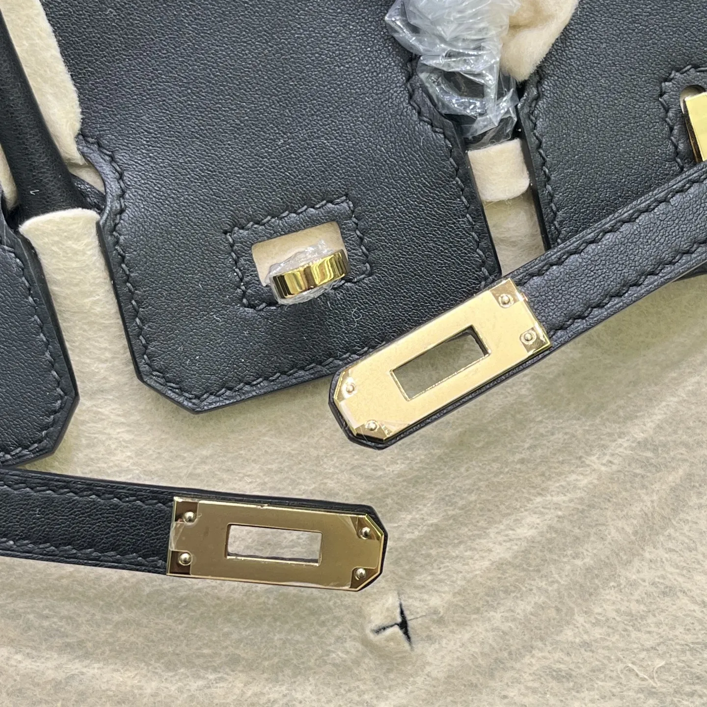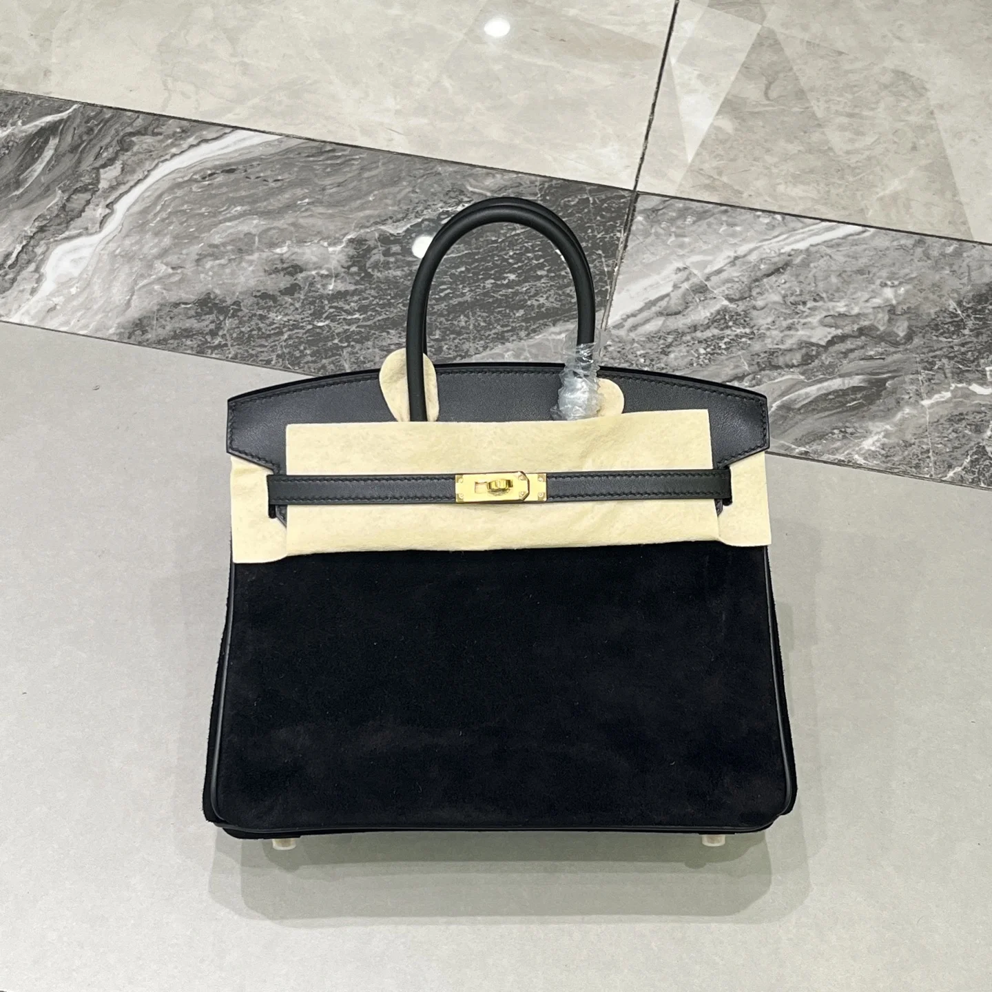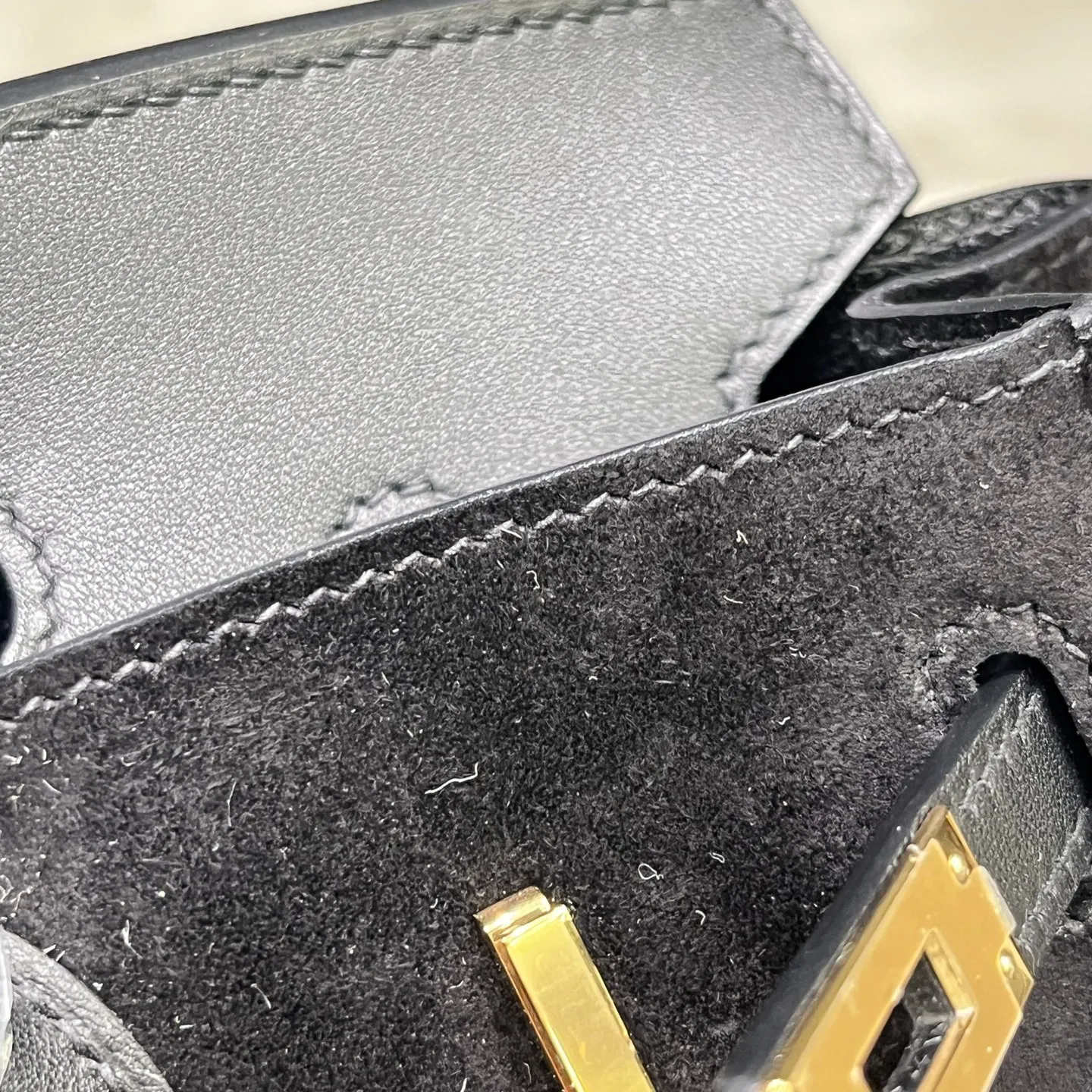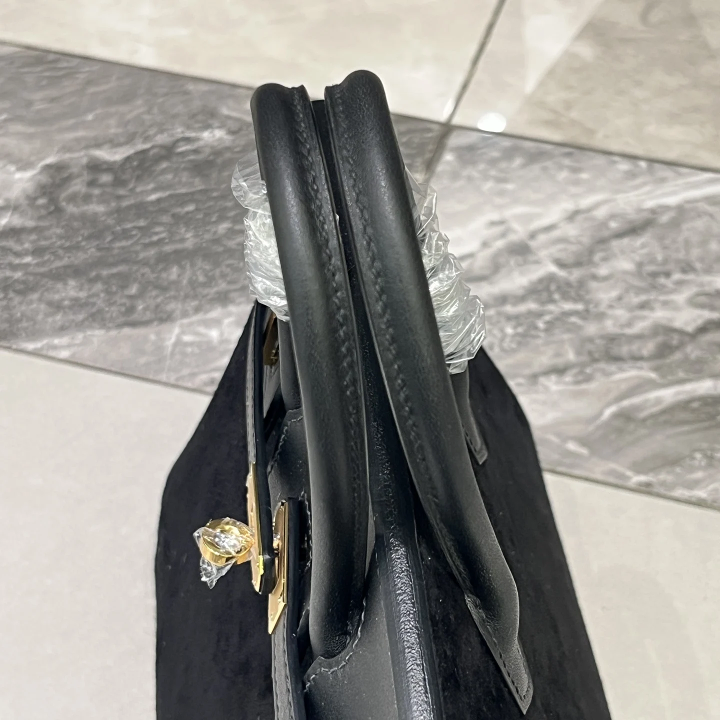 Birkin 25 Black Gold Hardware Swift Leather Suede Goat Leather Lining Goat Leather Wax Thread Half Hand-Stitched Hand-Hammered Copper Nails All Steel Hardware