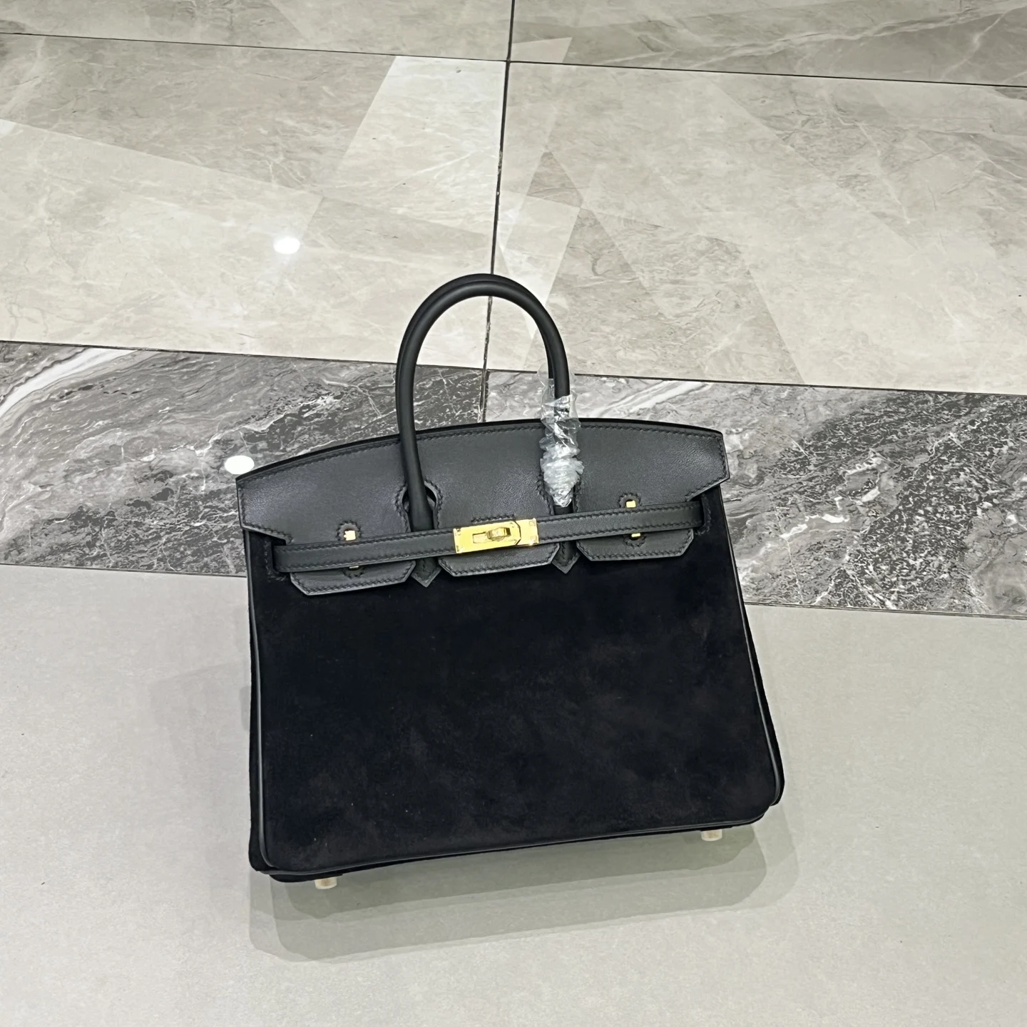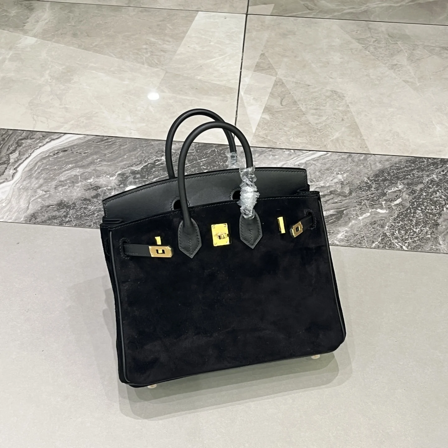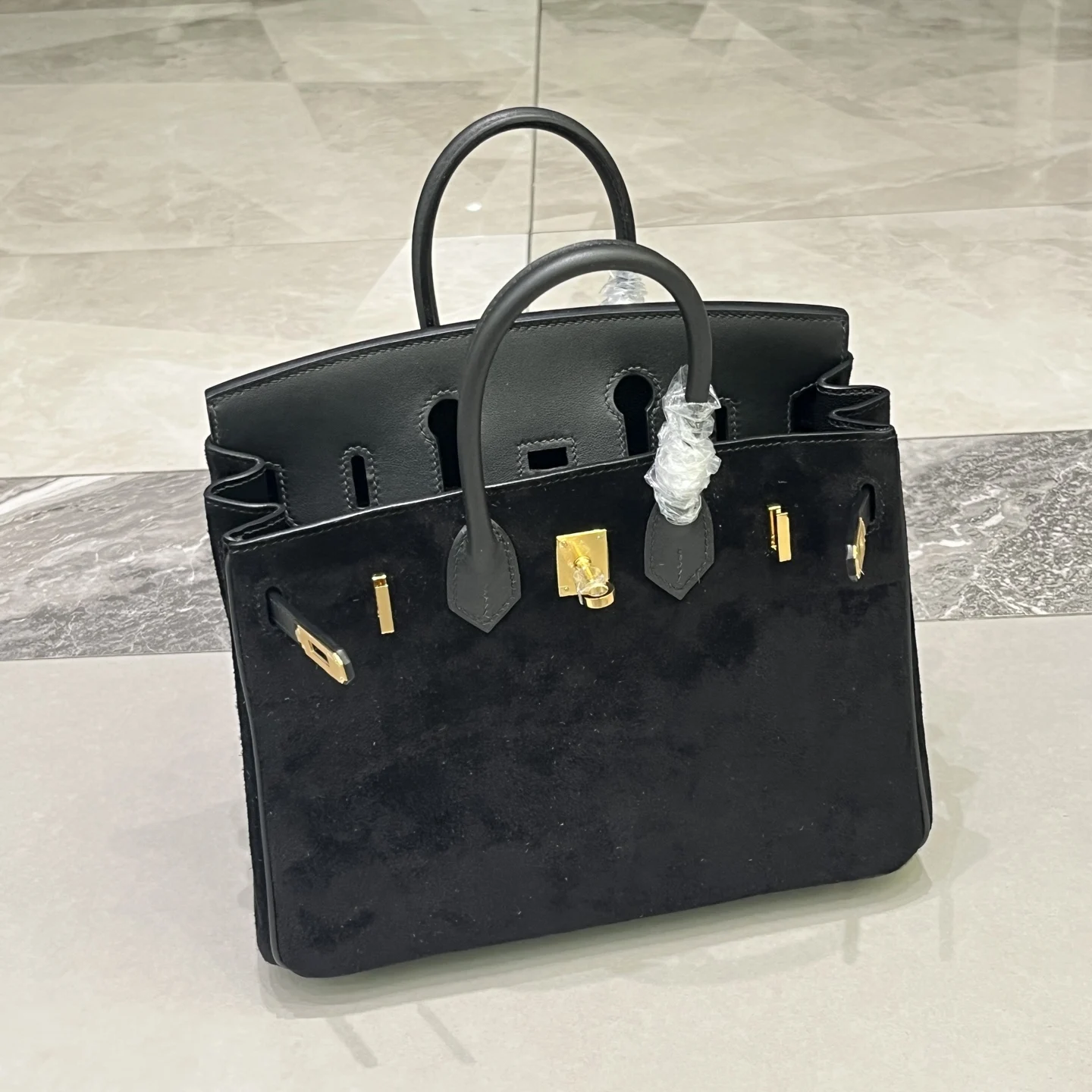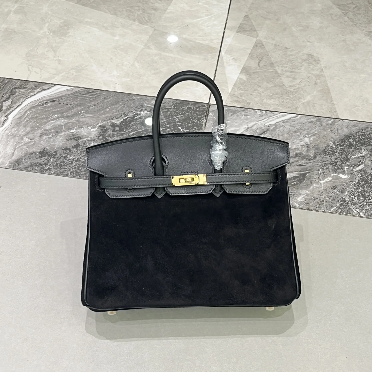 Birkin 25 Black Gold Hardware Swift Leather Suede Goat Leather Lining Goat Leather Wax Thread Half Hand-Stitched Hand-Hammered Copper Nails All Steel Hardware