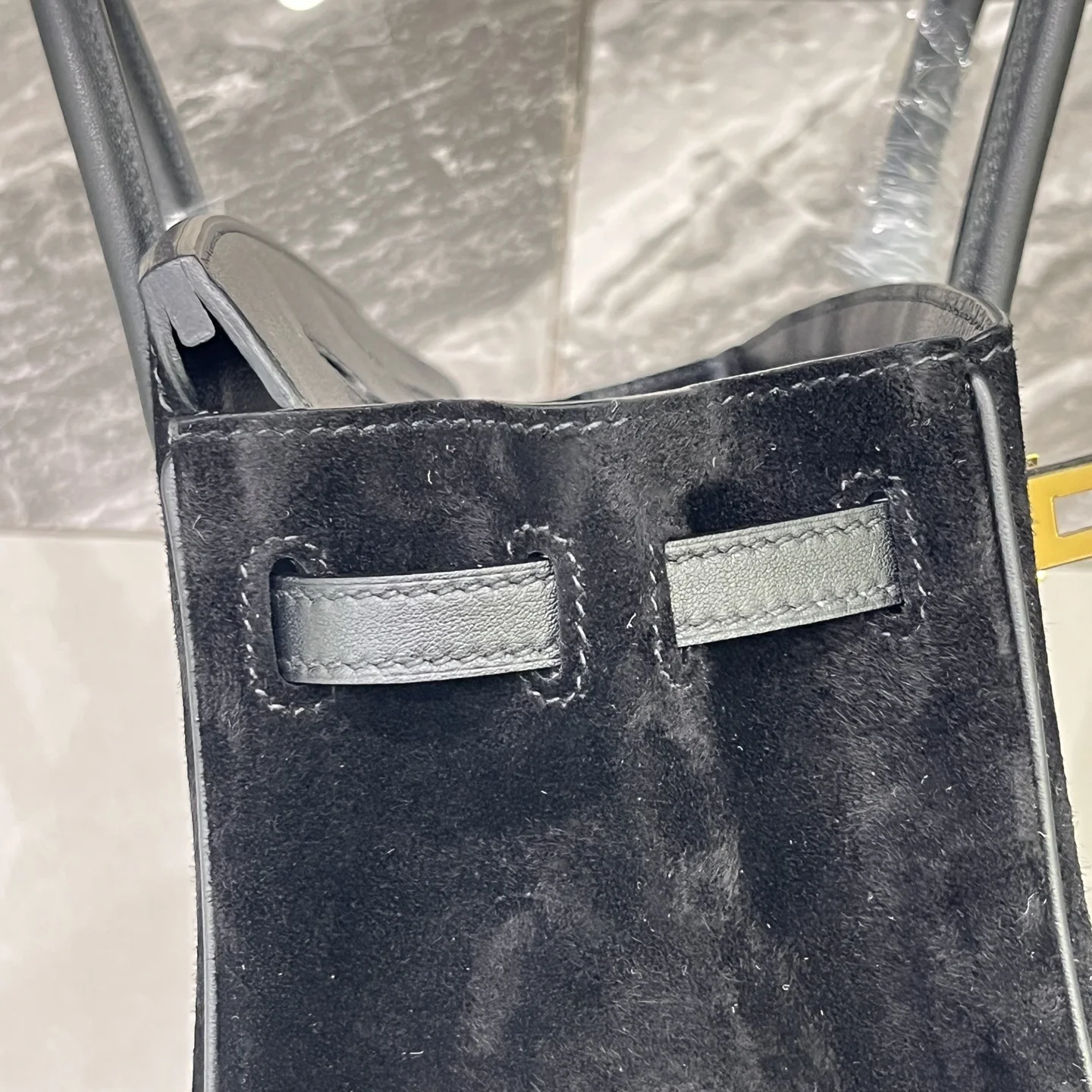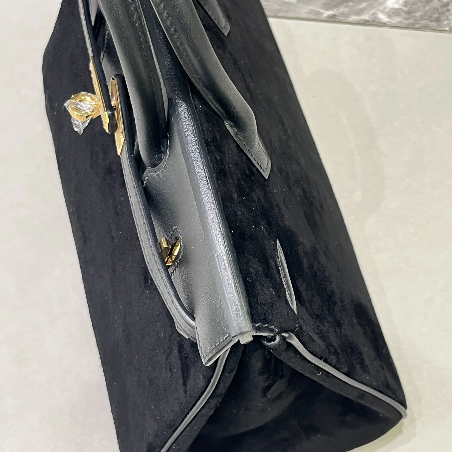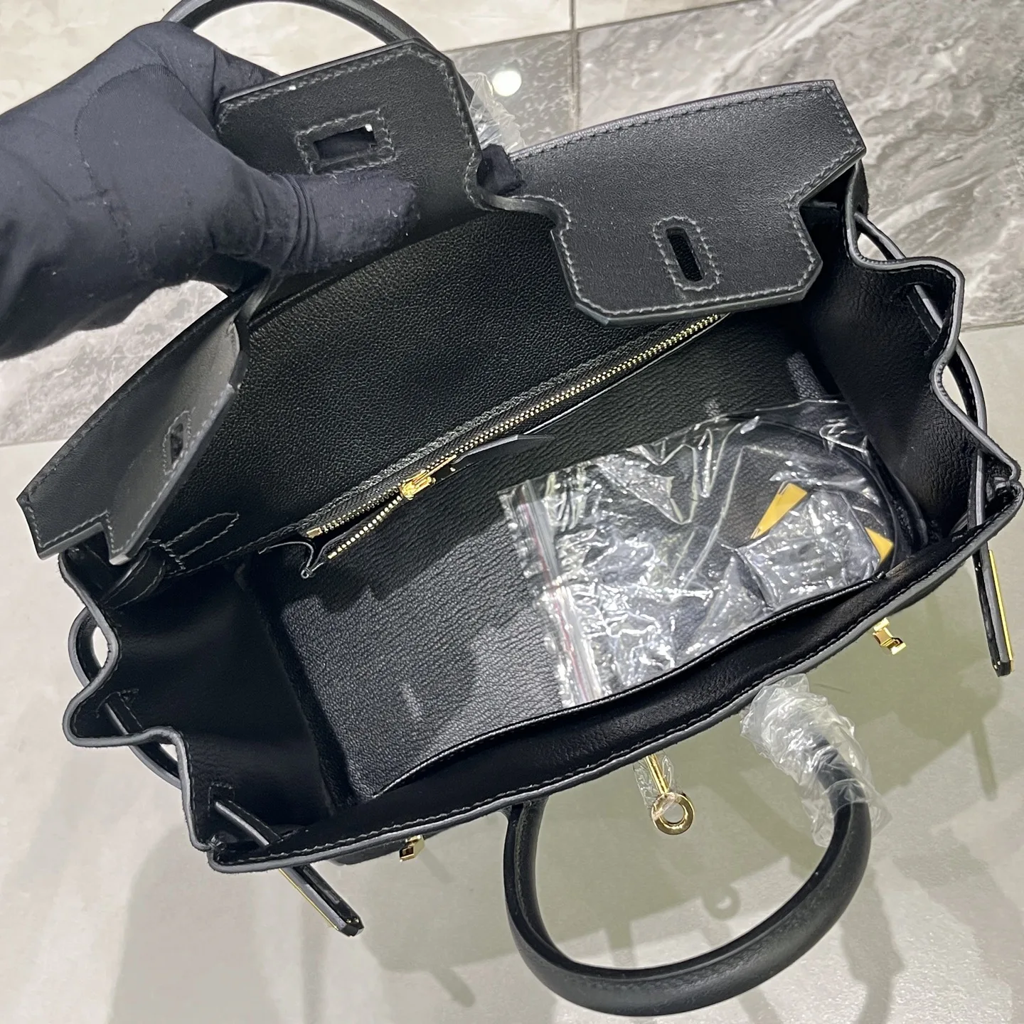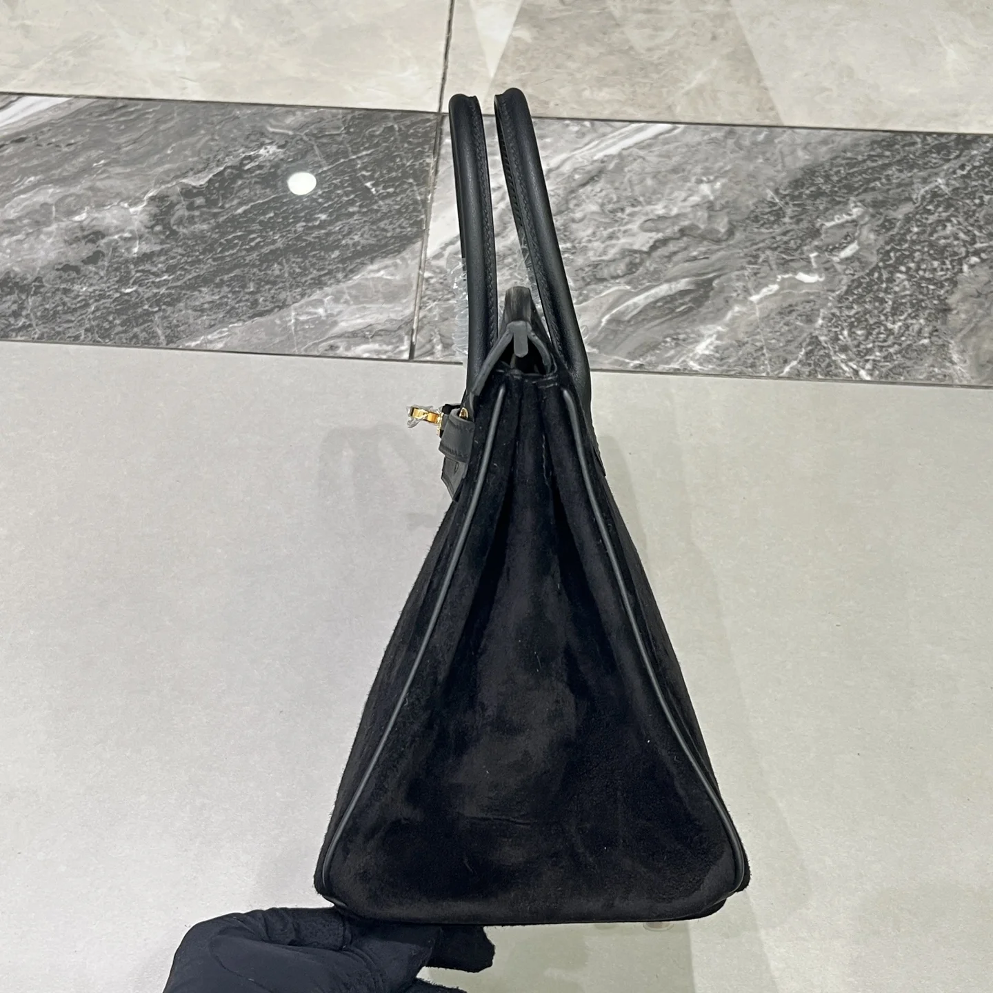 Birkin 25 Black Gold Hardware Swift Leather Suede Goat Leather Lining Goat Leather Wax Thread Half Hand-Stitched Hand-Hammered Copper Nails All Steel Hardware