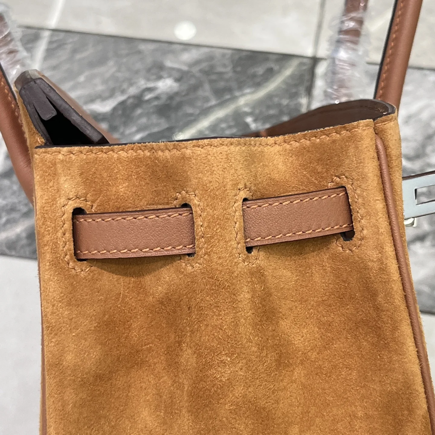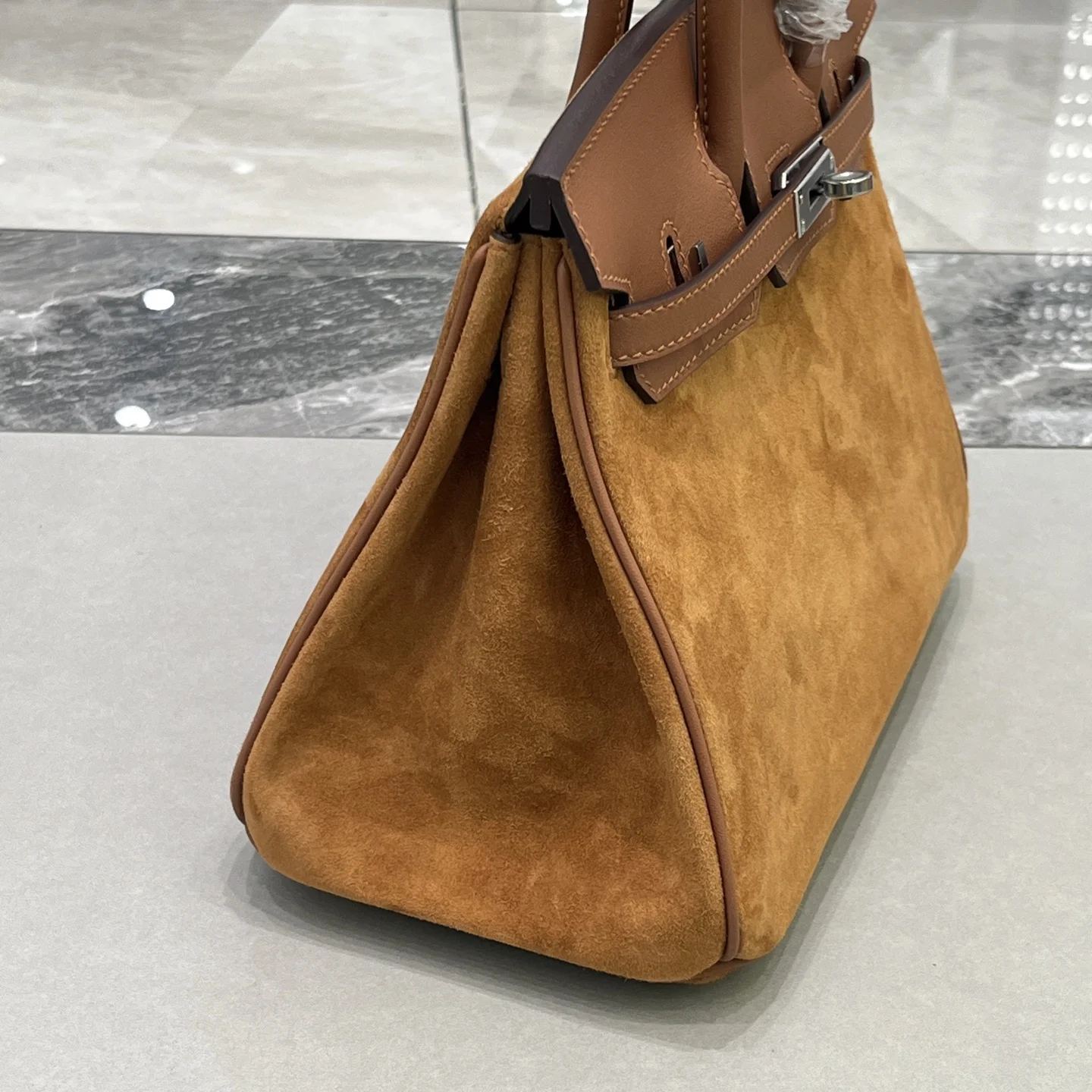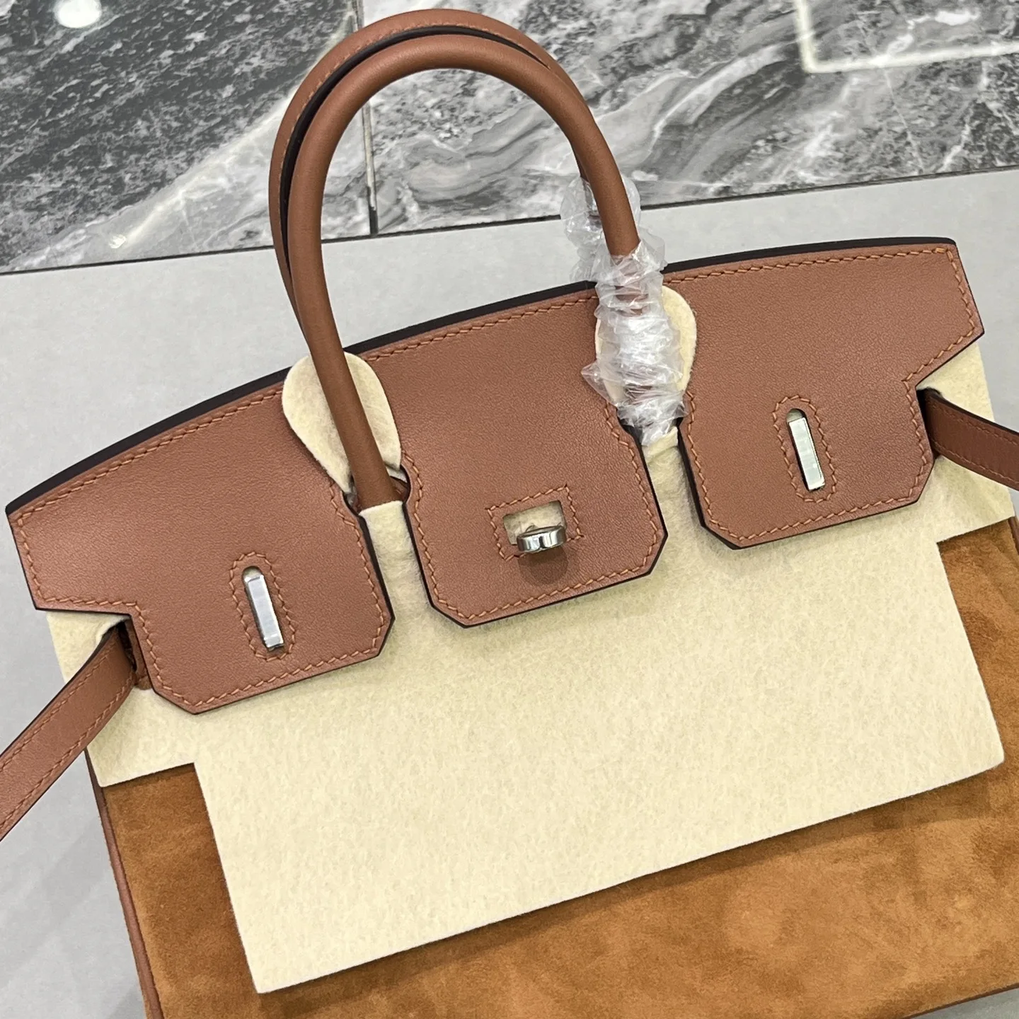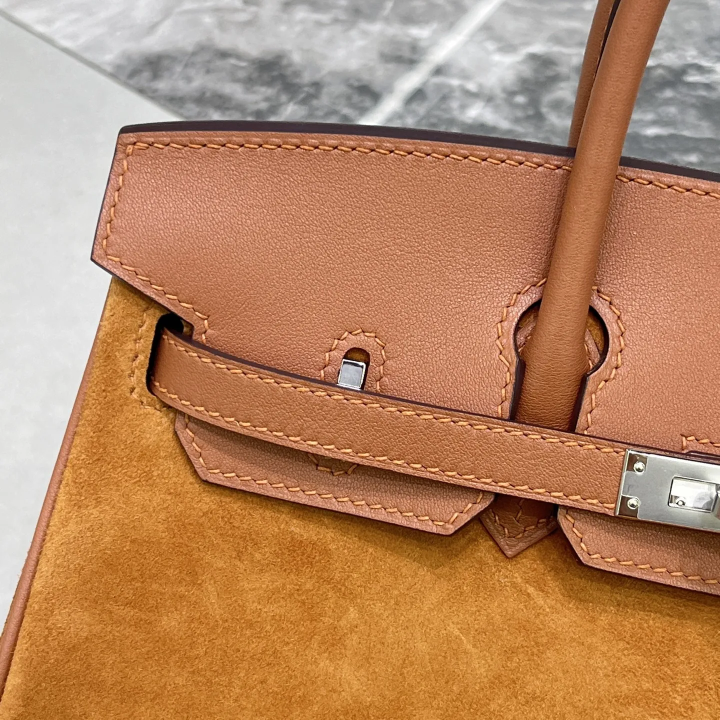 Birkin 25 Gold Brown with Silver Hardware Swift Leather Suede Lining in Goatskin Hand-stitched with Waxed Thread, Hand-hammered Copper Nails, All-Steel Hardware