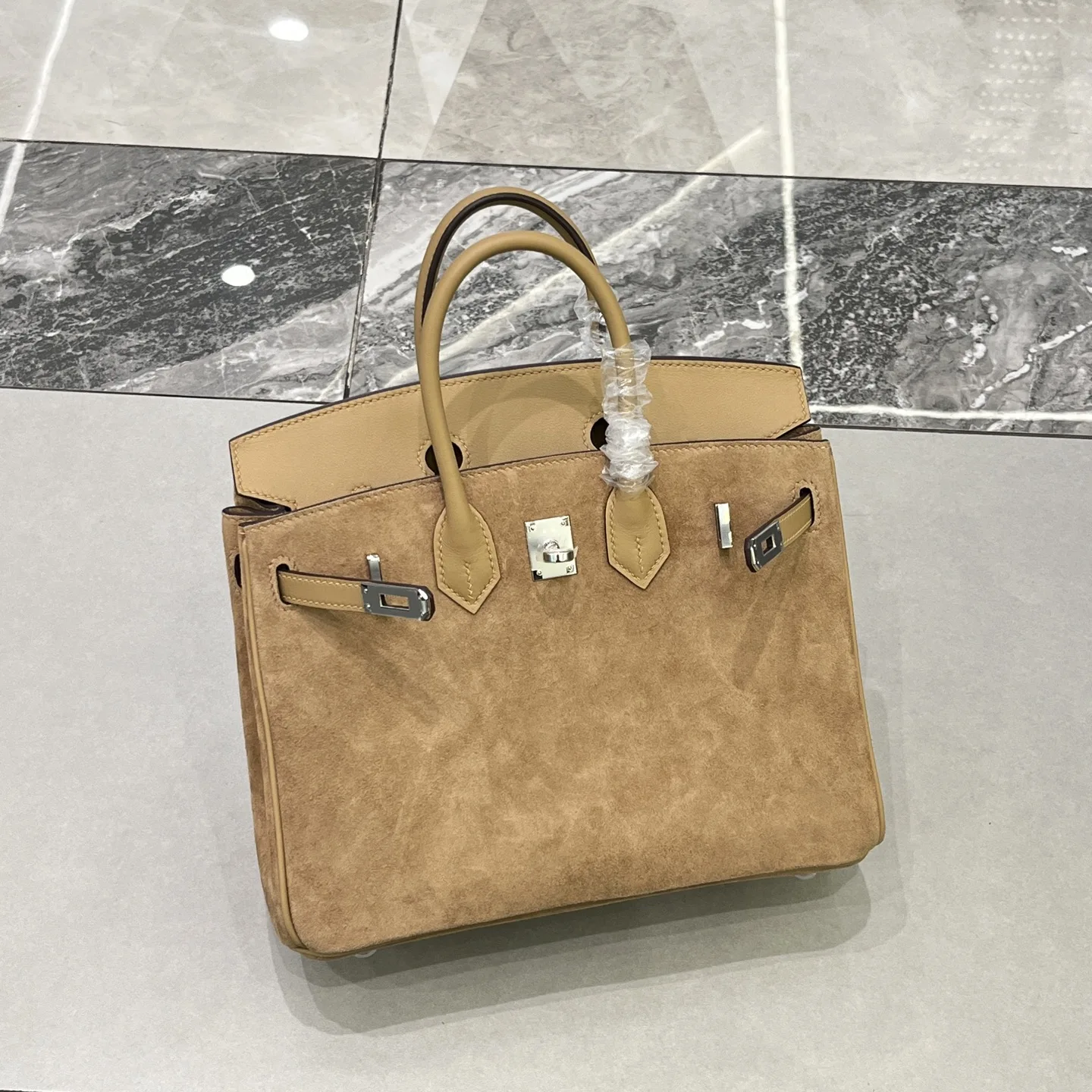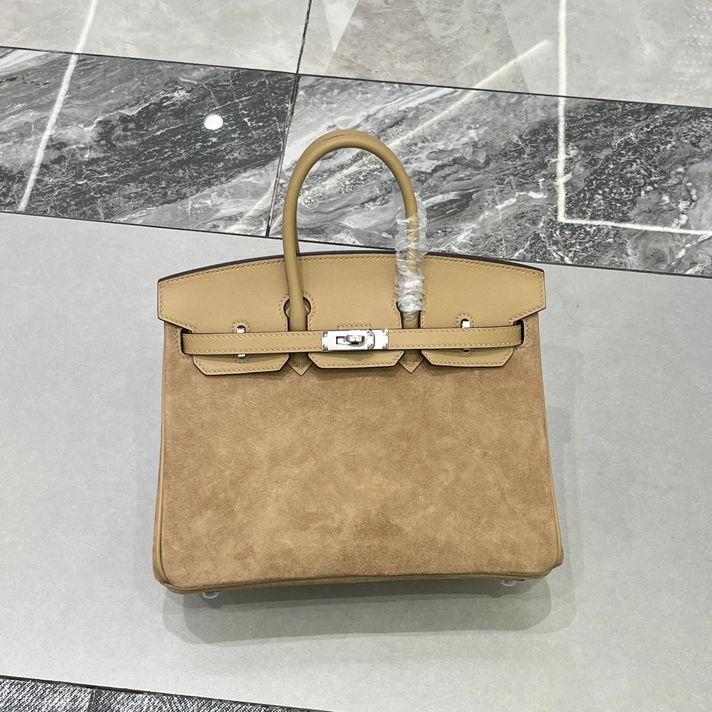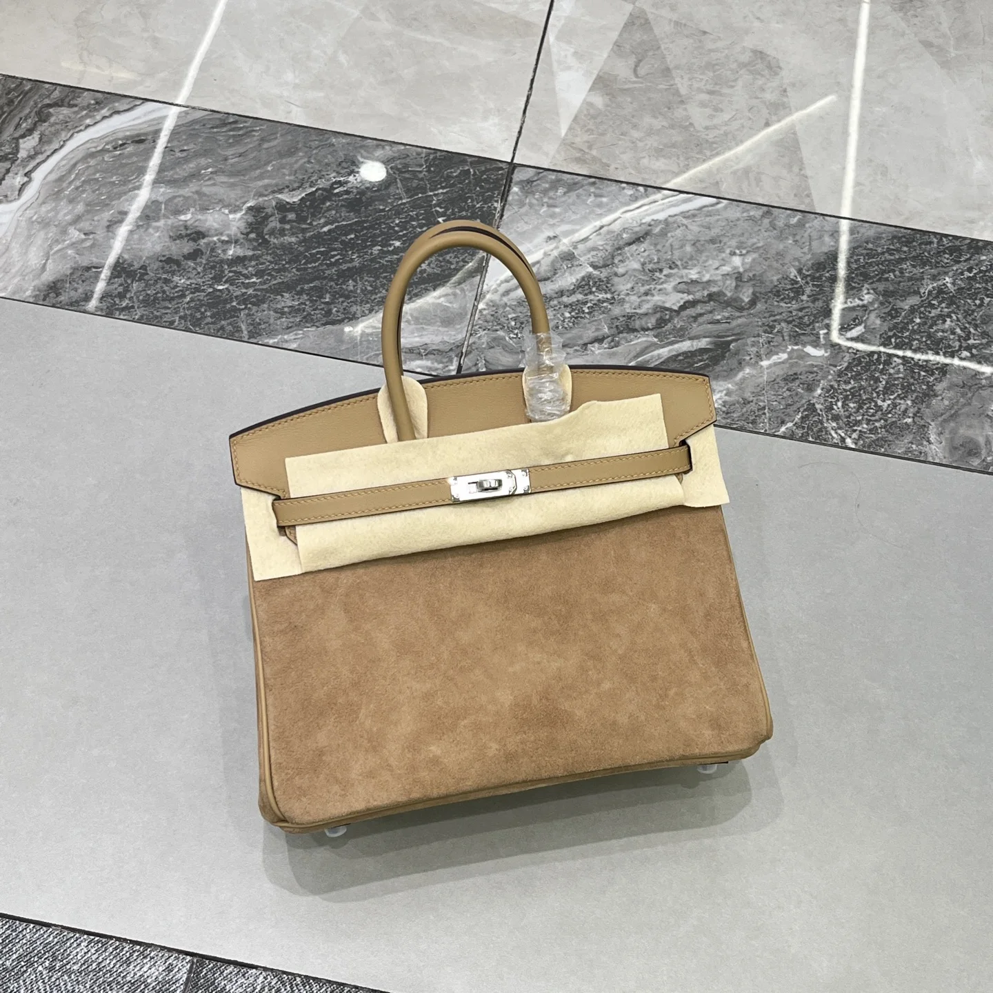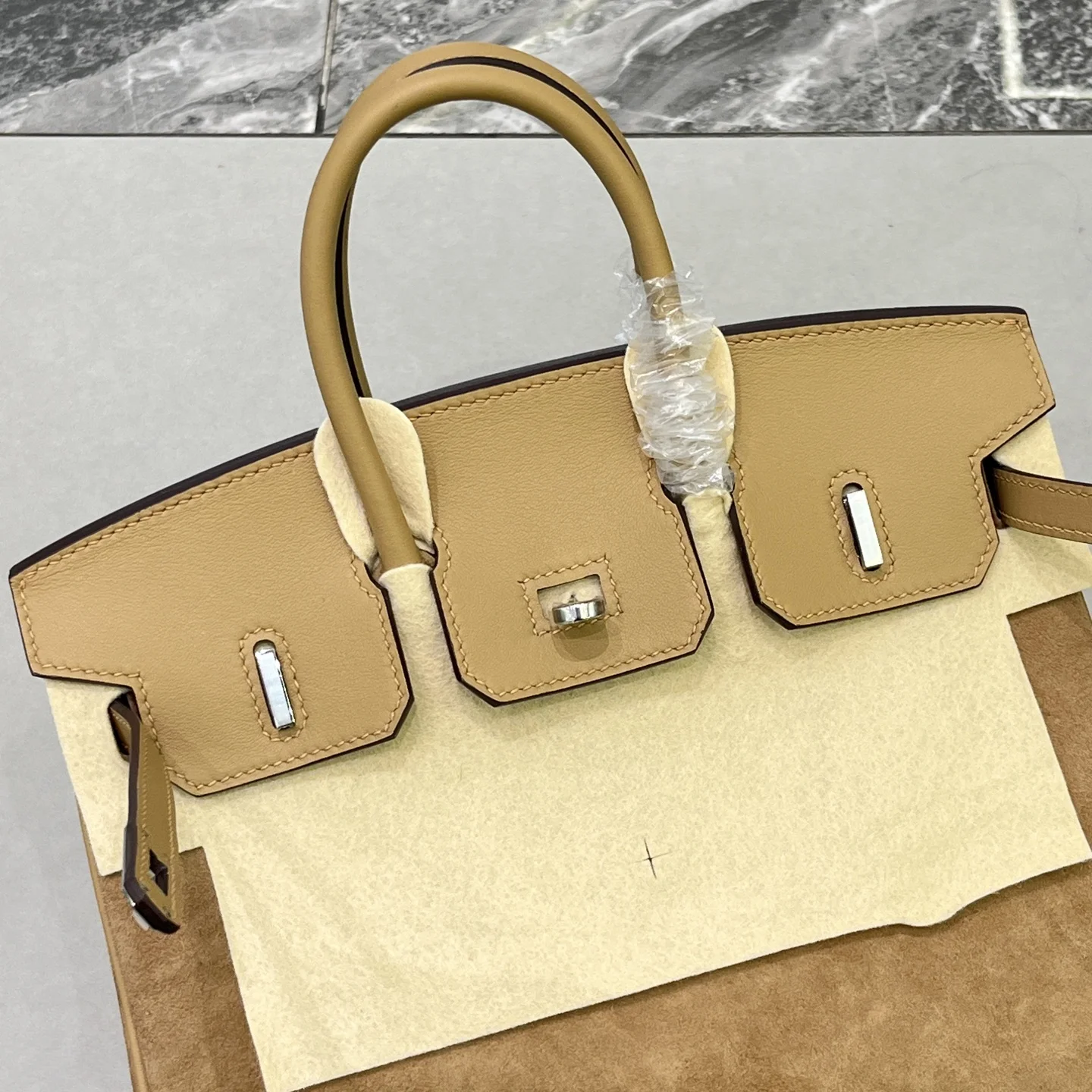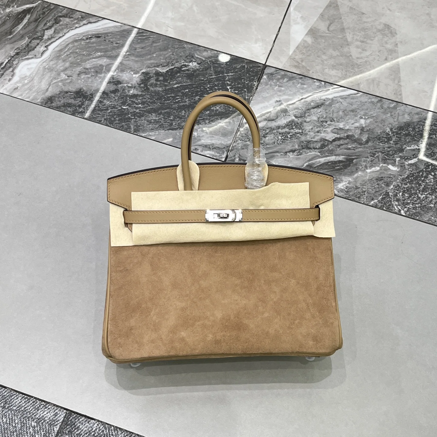 Birkin 25 Milk Tea Color Silver Hardware Swift Calfskin Suede Goatskin Lining Goat Leather Waxed Thread Half Hand-Sewn Hand-Hammered Copper Nails All Steel Hardware
