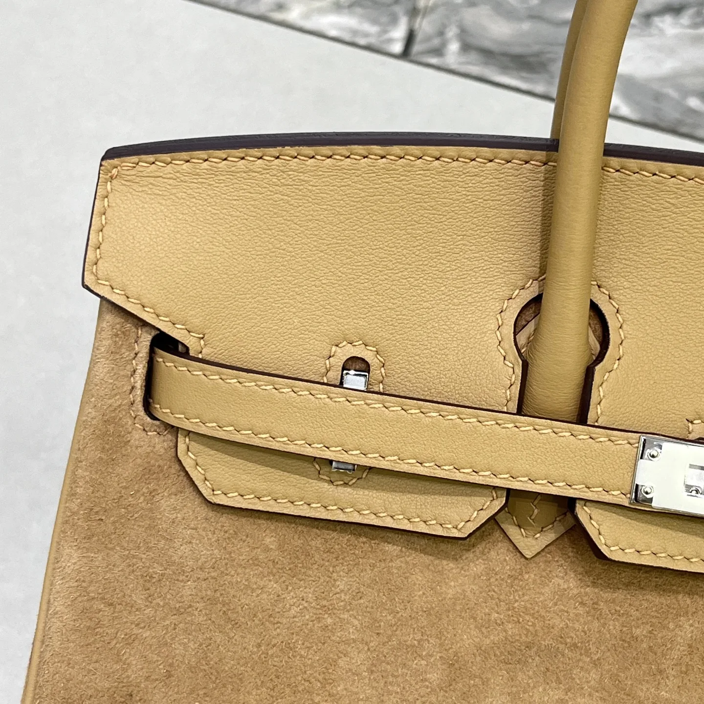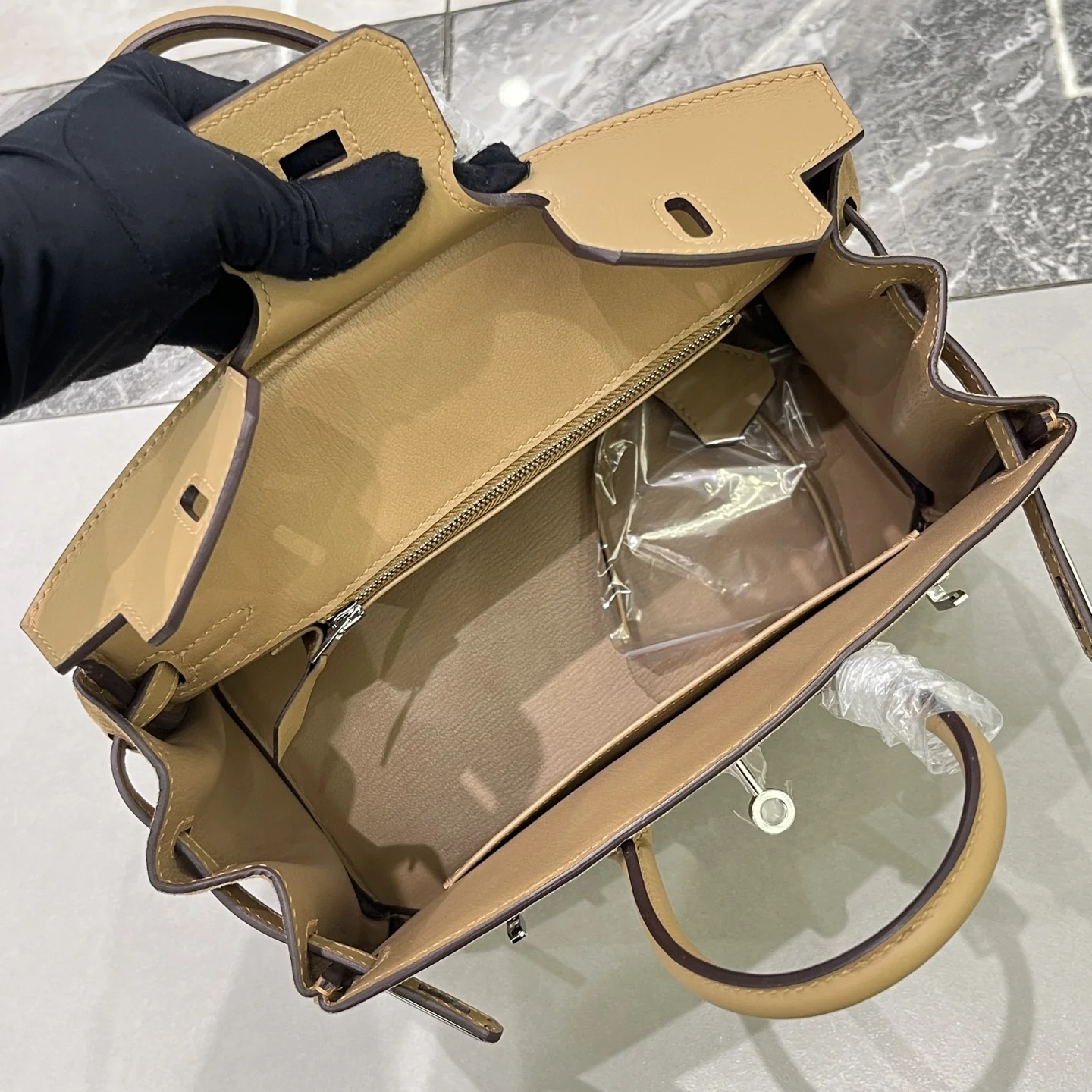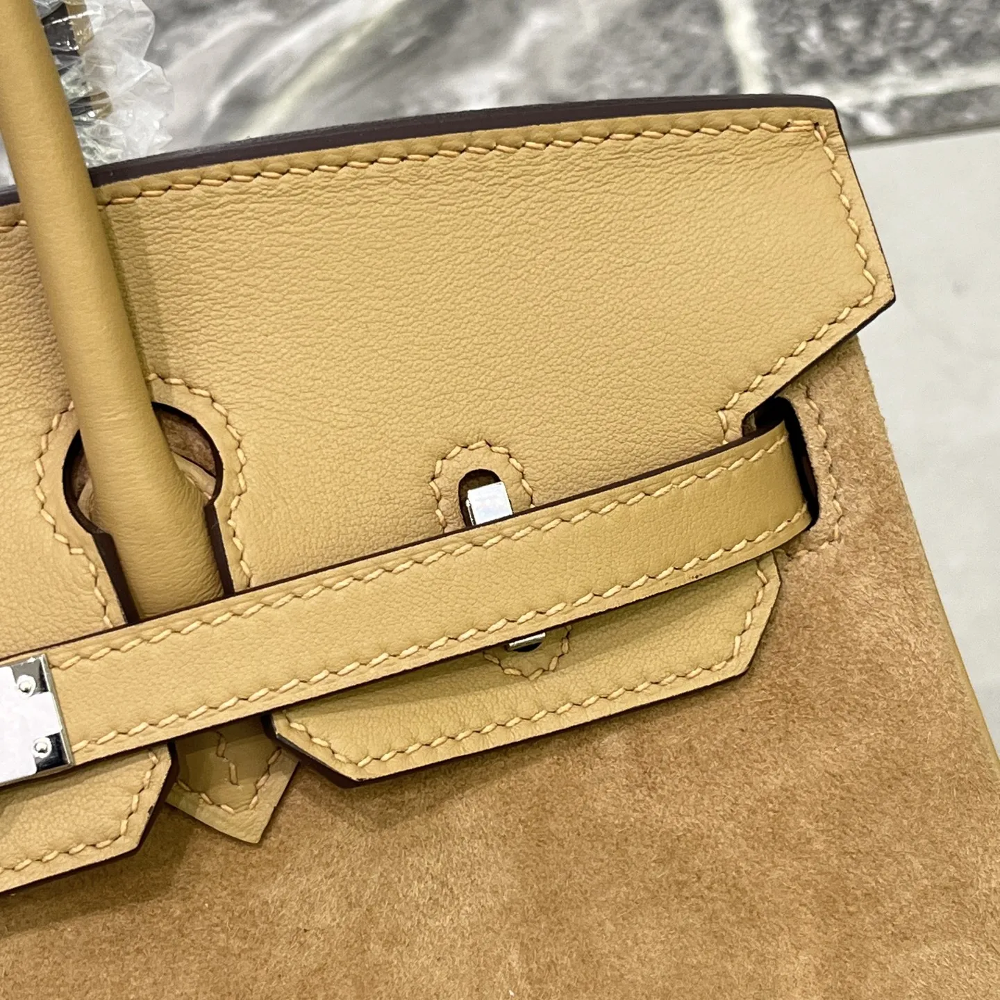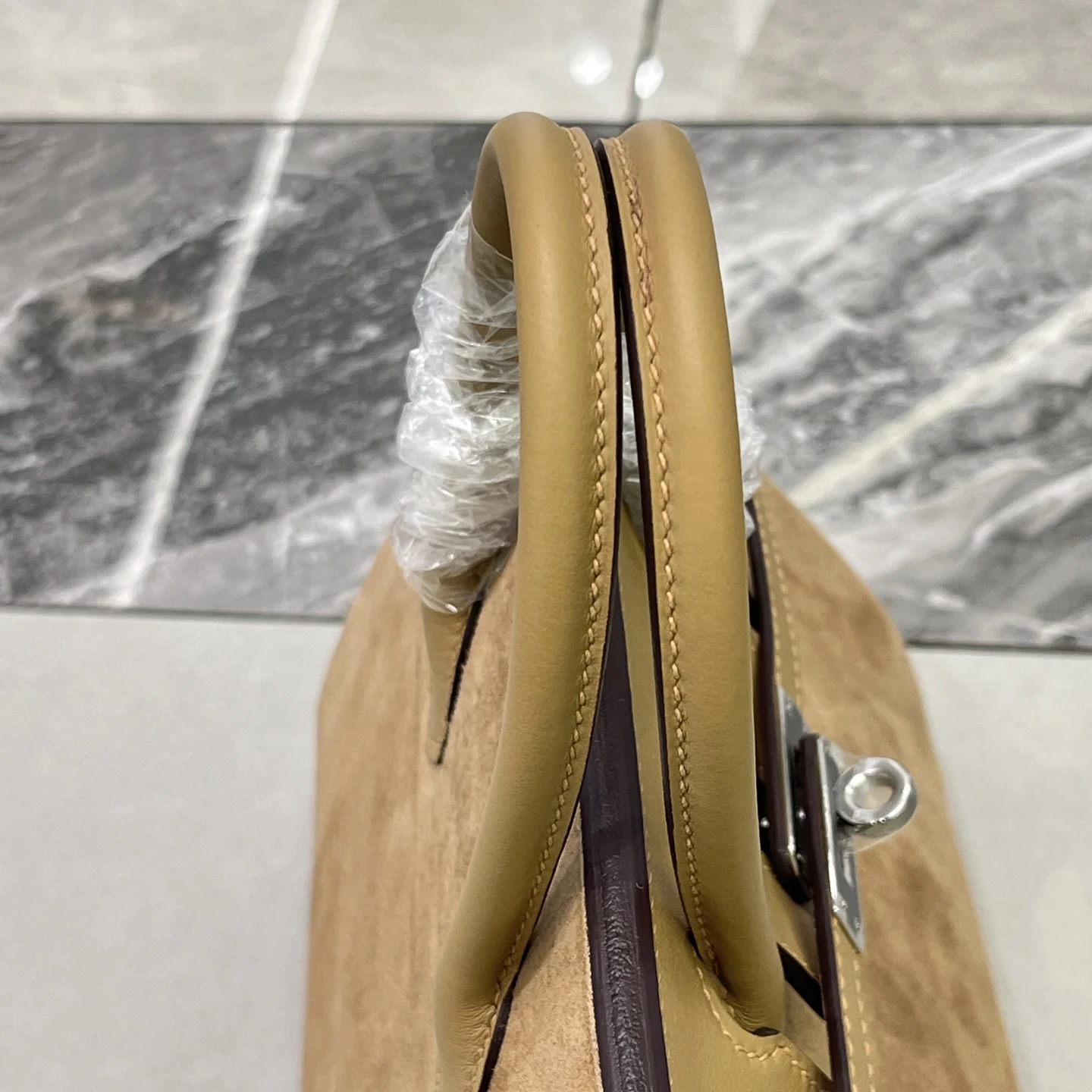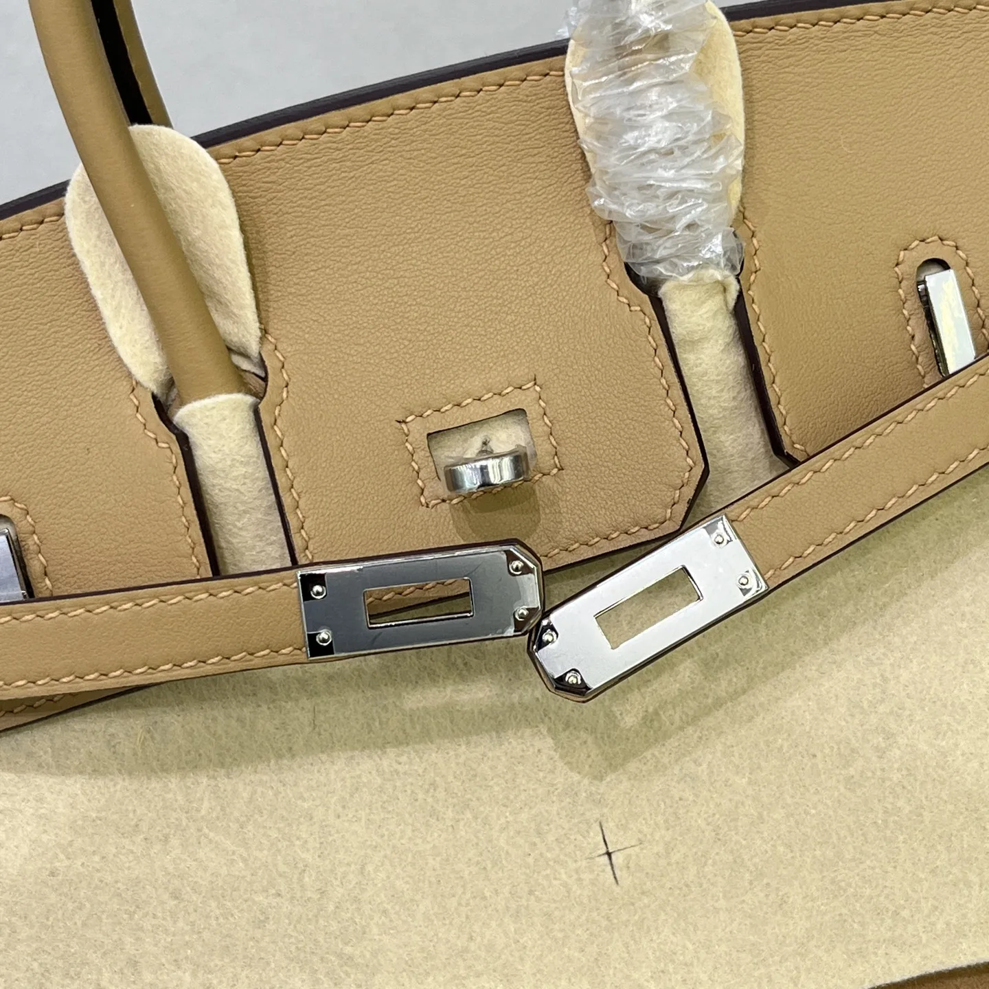 Birkin 25 Milk Tea Color Silver Hardware Swift Calfskin Suede Goatskin Lining Goat Leather Waxed Thread Half Hand-Sewn Hand-Hammered Copper Nails All Steel Hardware