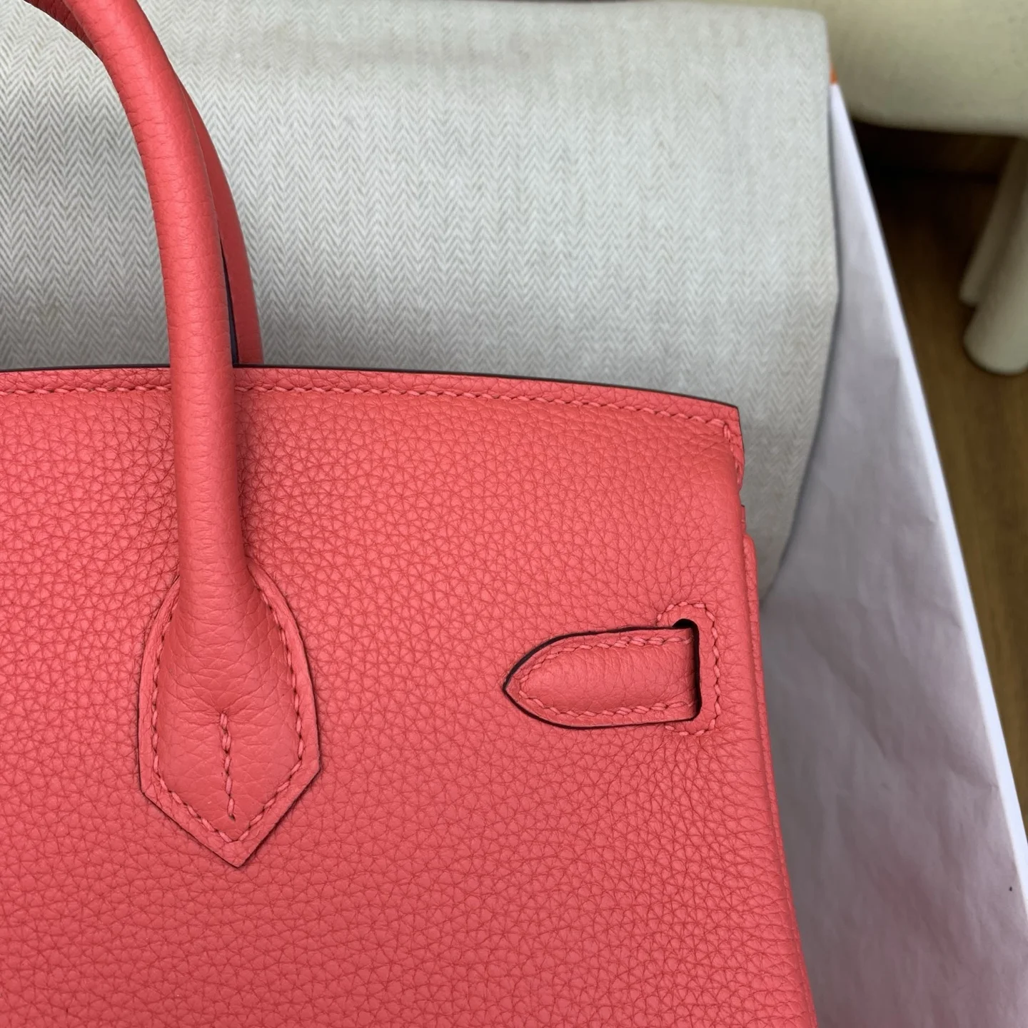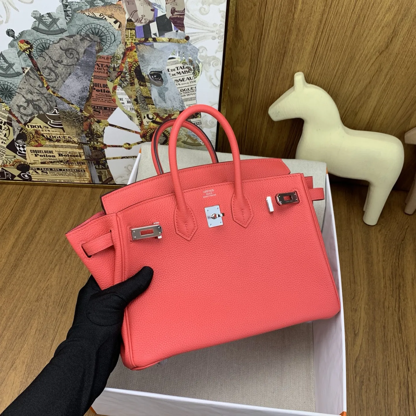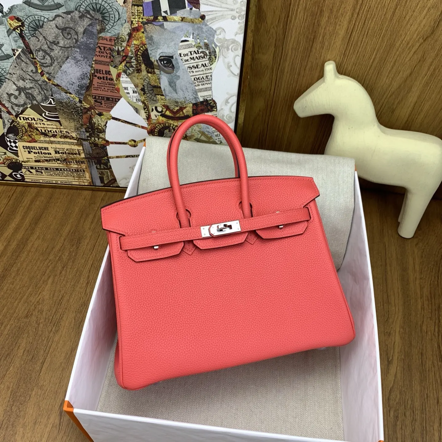 In stock: Birkin 25cm Togo Watermelon Red with Silver Hardware. The classic and timeless code of elegance. The Togo leather texture is exceptional, feeling like calfskin to the touch, and develops a beautiful sheen with use. It exudes inherent sophistication, elevating any outfit with a touch of luxury. Perfect for commuting with a sharp suit, adding relaxed style to a casual hoodie, or making a statement at evening events. The versatility is unmatched. The Birkin is truly captivating at first sight and a lifelong treasure to own. Anyone who carries it understands why its the ultimate "white moonlight" in the world of handbags. We highly recommend adding "Own a Birkin" to your lifes to-do list. Investing in this piece is definitely worth it.