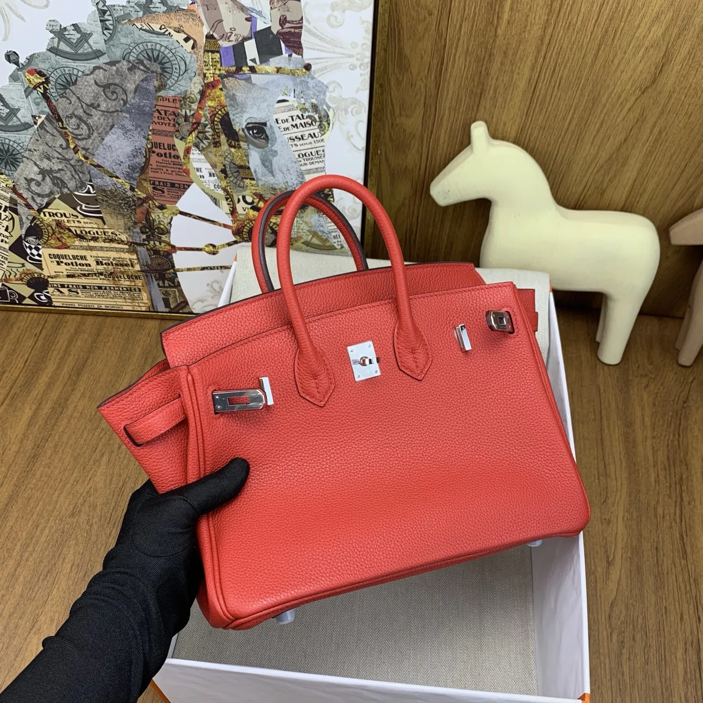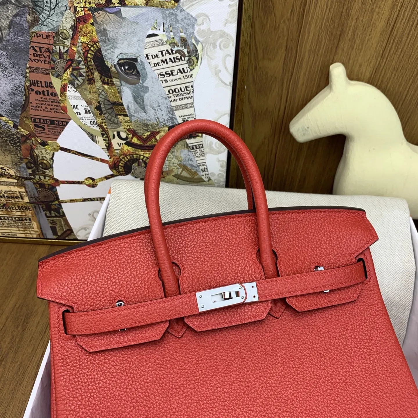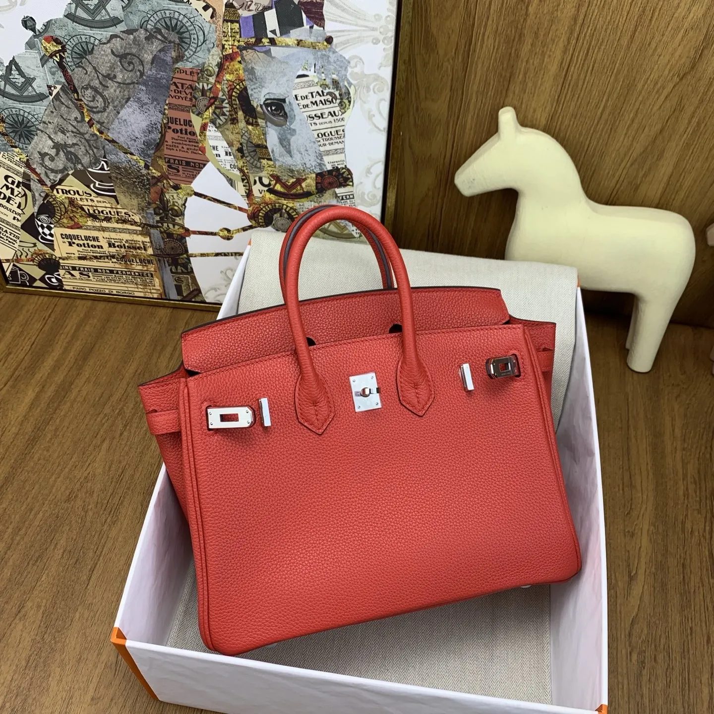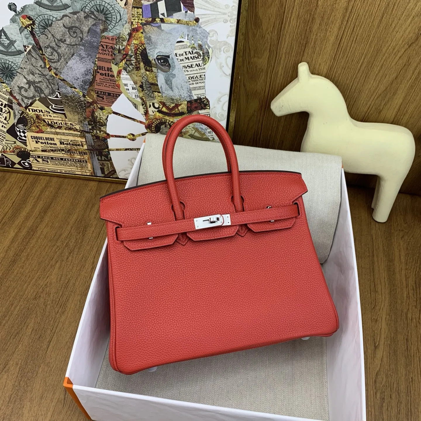 In stock Birkin 25cm togo Q5 Rouge Casaque Flag Red with Silver Hardware. The timeless elegance lies in the Togo leather, which feels luxurious and develops a beautiful sheen over time, like petting calfskin. It exudes sophistication and elevates any outfit, whether it s a sharp suit for work, a casual hoodie for shopping, or a stunning evening gown. The Birkin is truly captivating and a cherished possession. Owning a Birkin should be on everyone s to-do list it s a worthwhile investment!