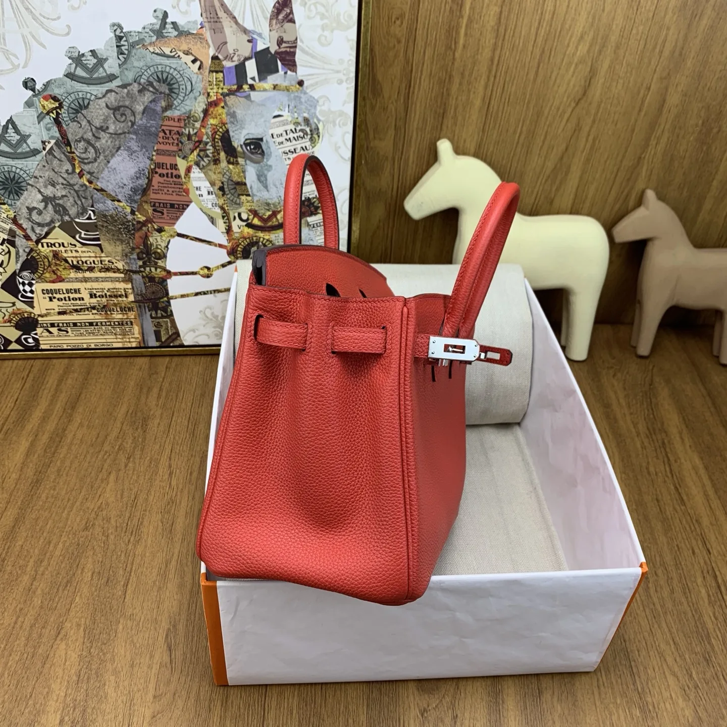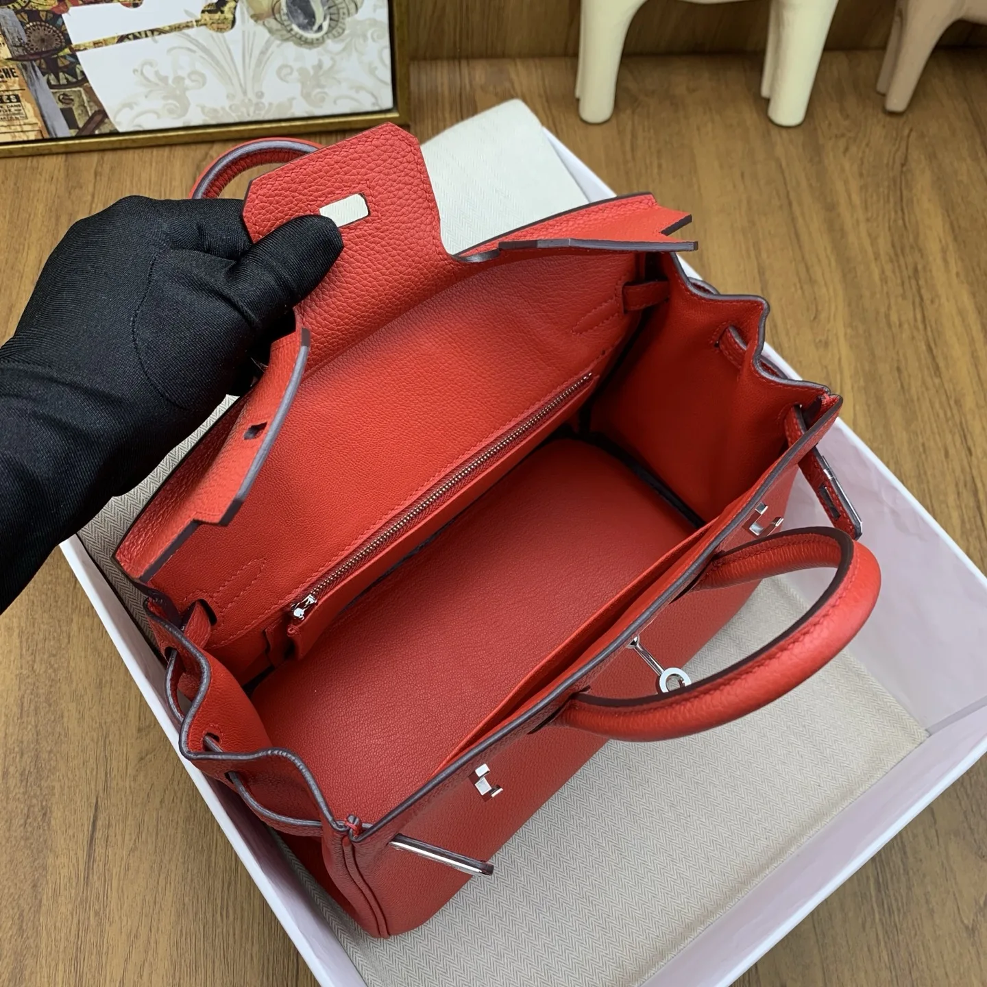 In stock Birkin 25cm togo Q5 Rouge Casaque Flag Red with Silver Hardware. The timeless elegance lies in the Togo leather, which feels luxurious and develops a beautiful sheen ove..