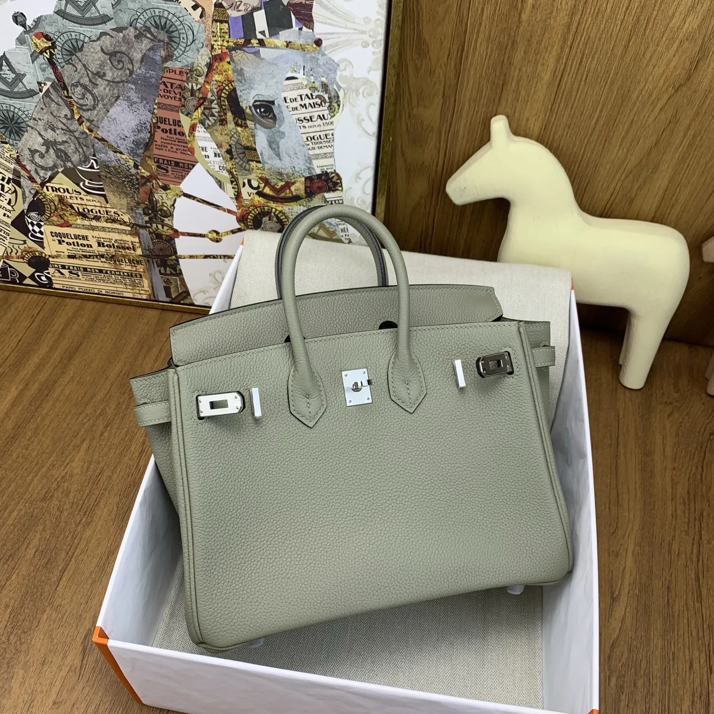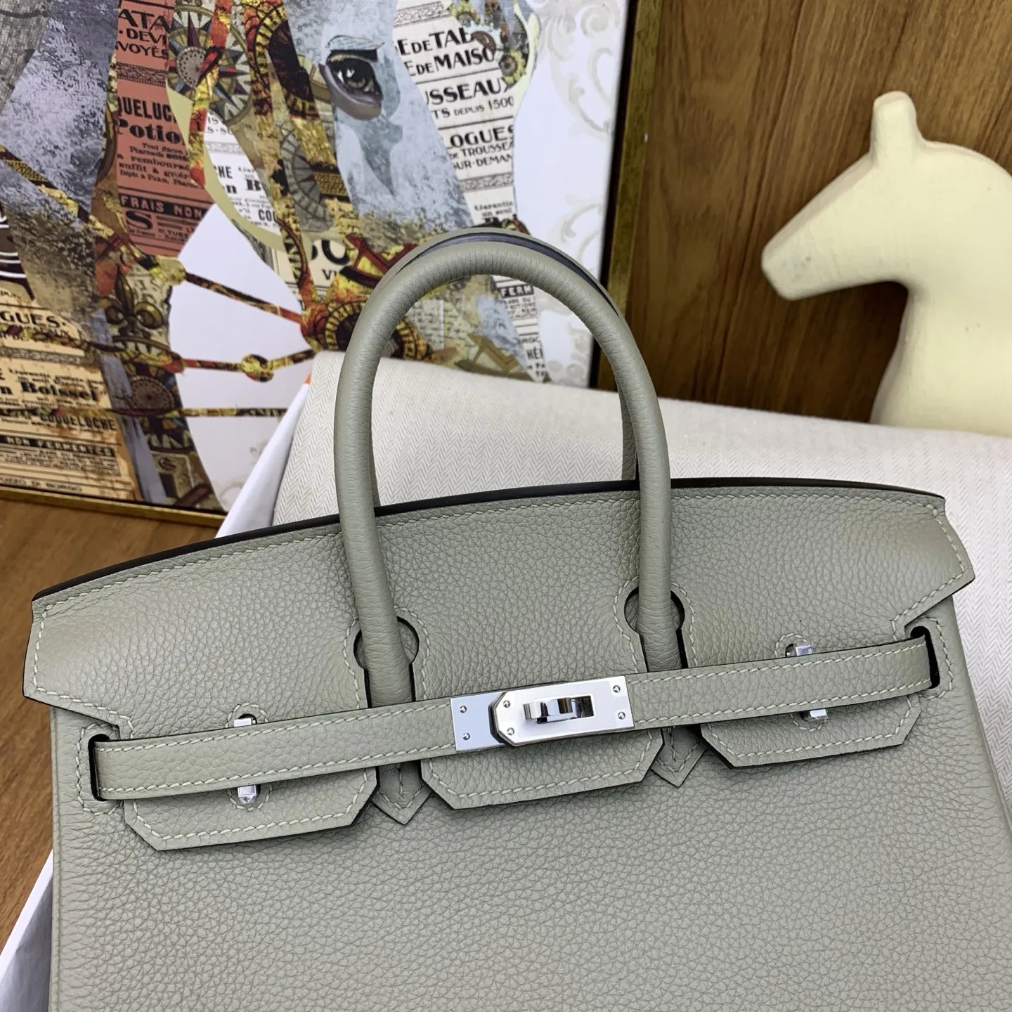 In stock Birkin 25cm togo Q1 Sauge with silver hardware, a timeless and elegant classic. The Togo leather is exquisite, with a texture that feels like petting calfskin, becoming more lustrous with use. It exudes a natural air of sophistication, adding an air of luxury to any outfit. It s perfect for the office with a suit, effortlessly chic for shopping with a hoodie, and absolutely stunning for evening events. The Birkin is truly captivating at first sight and a lifelong treasure. Owning one is understanding what it means to have the holy grail of handbags. I highly recommend adding owning a Birkin to your life s to-do list; this is definitely a worthwhile investment!