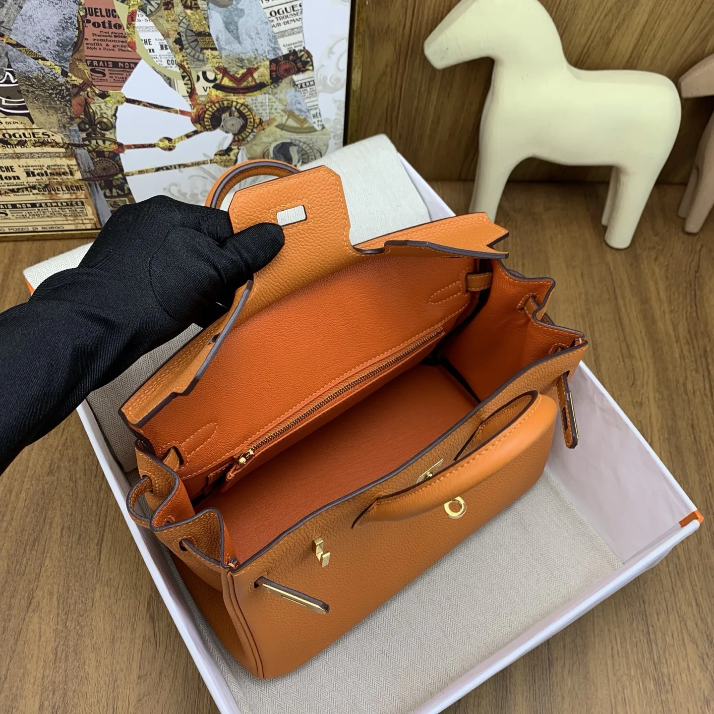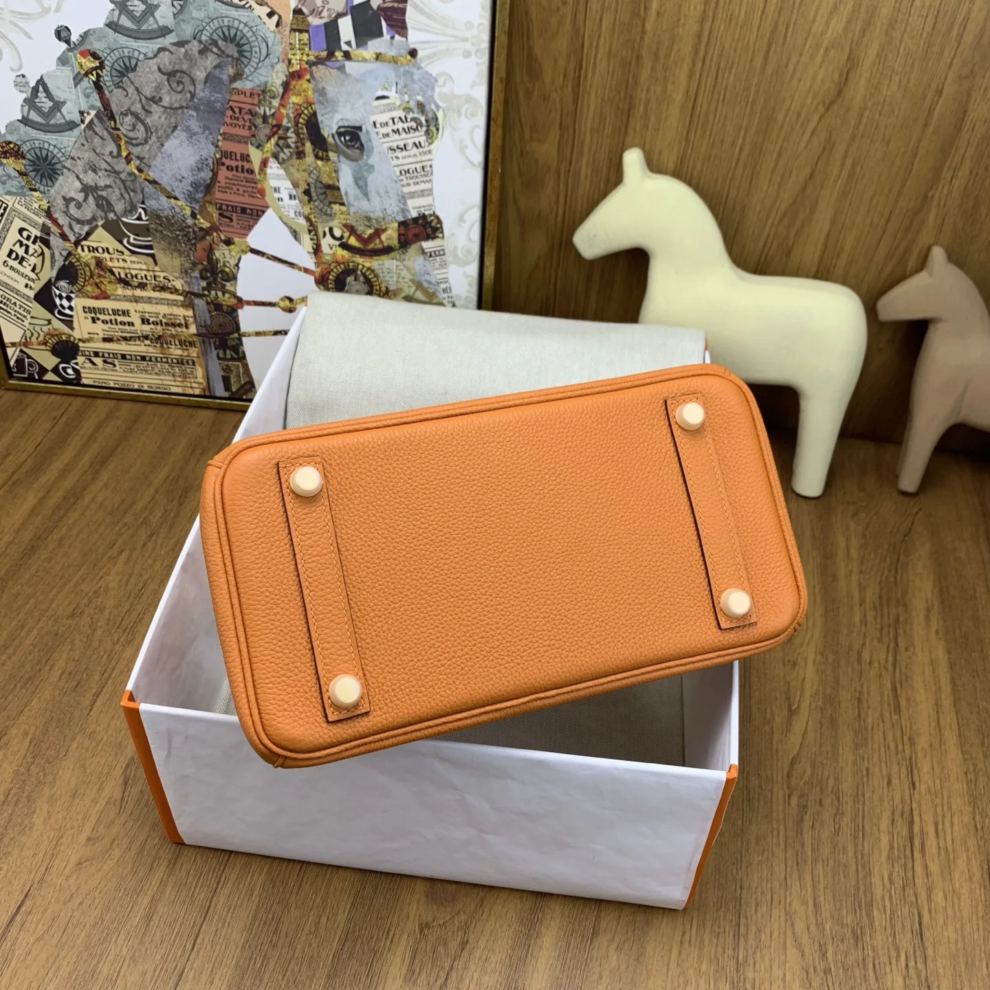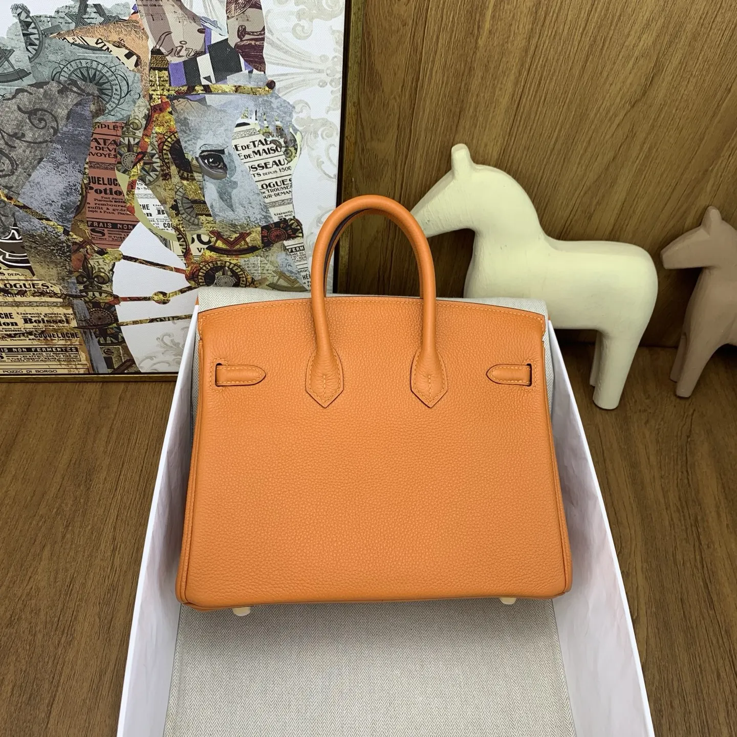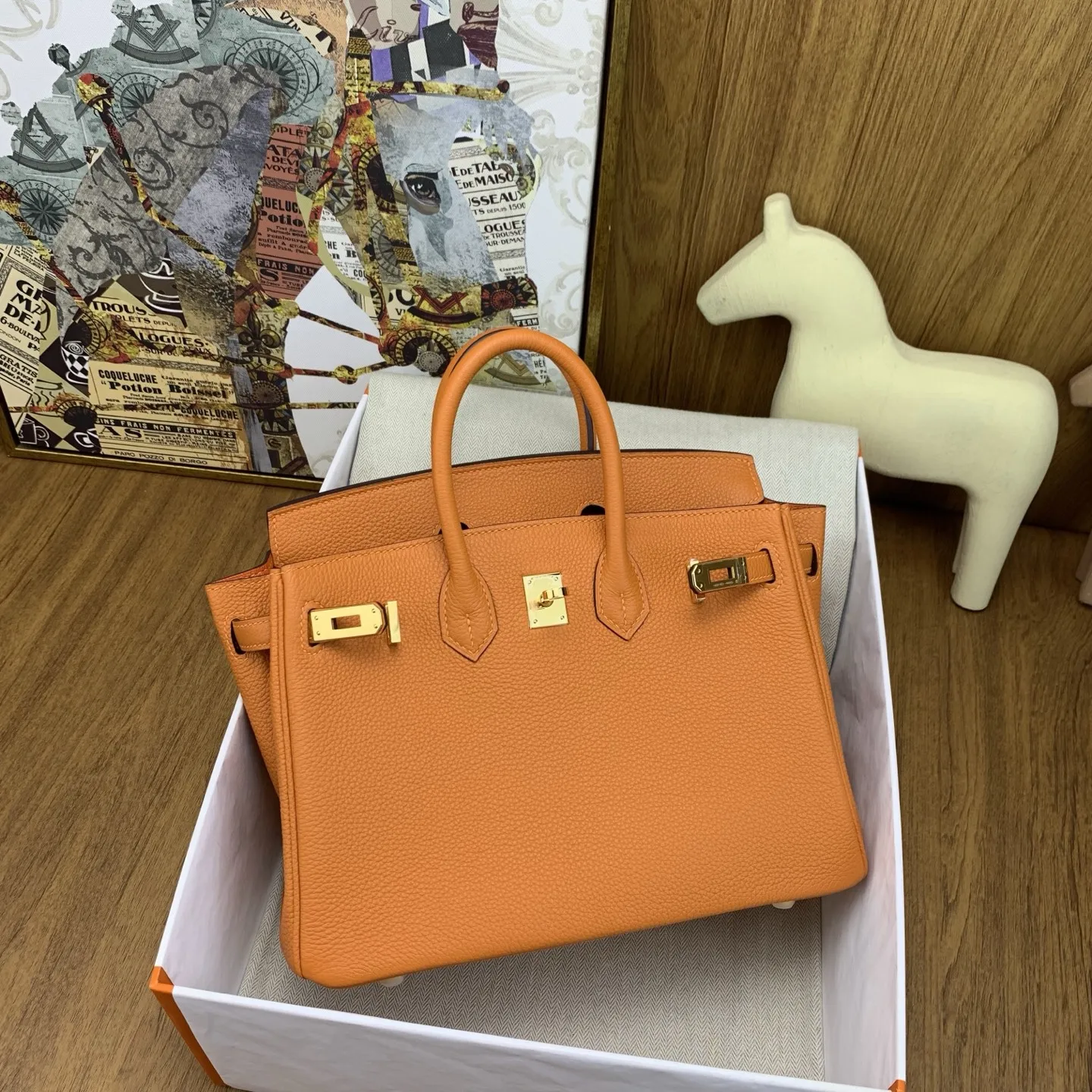 In stock Birkin 25cm Togo 93 Orange with gold hardware a timeless and elegant classic. The Togo leather is exquisite, with a texture reminiscent of calfskin that only becomes more lustrous with age. It exudes an air of sophistication, effortlessly elevating any outfit. Whether paired with a suit for a sharp, professional look, a hoodie for relaxed chic, or carried to an evening event, it s guaranteed to make a statement. The Birkin is truly captivating and a coveted possession. Owning one is an experience in itself, a holy grail among handbags. Adding Acquire a Birkin to your life s to-do list is a worthwhile investment!