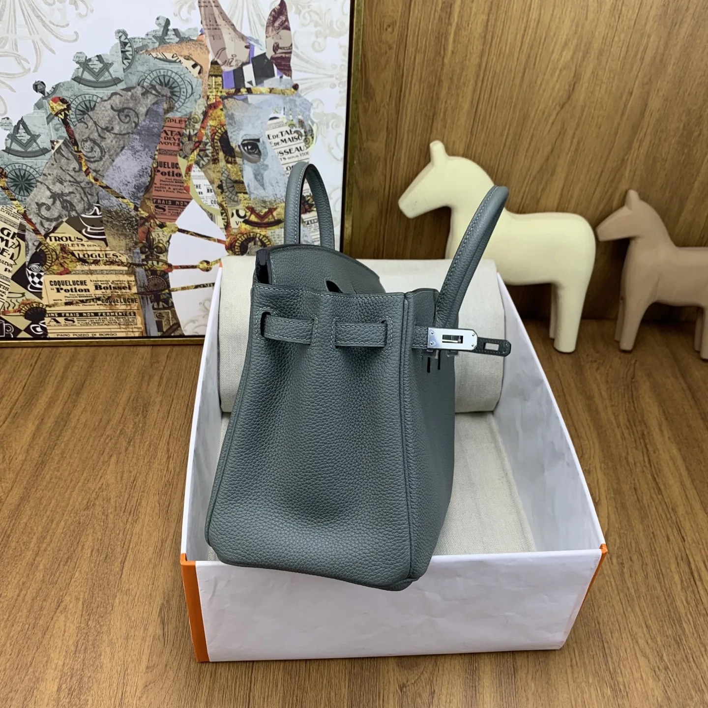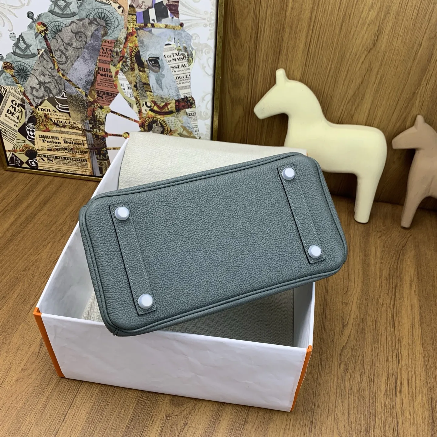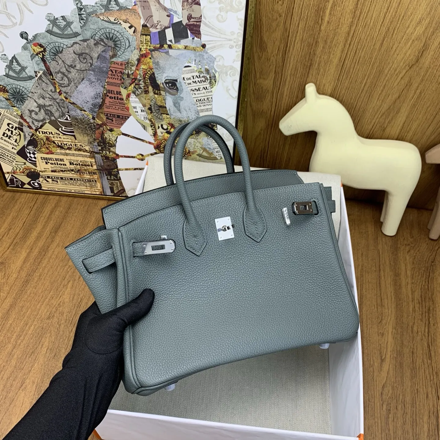 In stock Birkin 25cm Togo 61 Almond Green Vert Amande with silver hardware, a classic symbol of timeless elegance. The Togo leather feels luxurious and becomes more lustrous with use, only growing more charming over time. It inherently exudes an air of sophistication, making any outfit look elevated, whether paired with a sharp suit for a professional setting or a casual hoodie for a stylish day out. Carrying it to an evening event will undoubtedly make you the center of attention, with its versatility at an all-time high. The Birkin truly embodies the essence of falling in love at first sight and wanting to keep it forever, a true soulmate in the world of handbags. I recommend adding owning a Birkin soon to your life to-do list; this investment is definitely worth it!