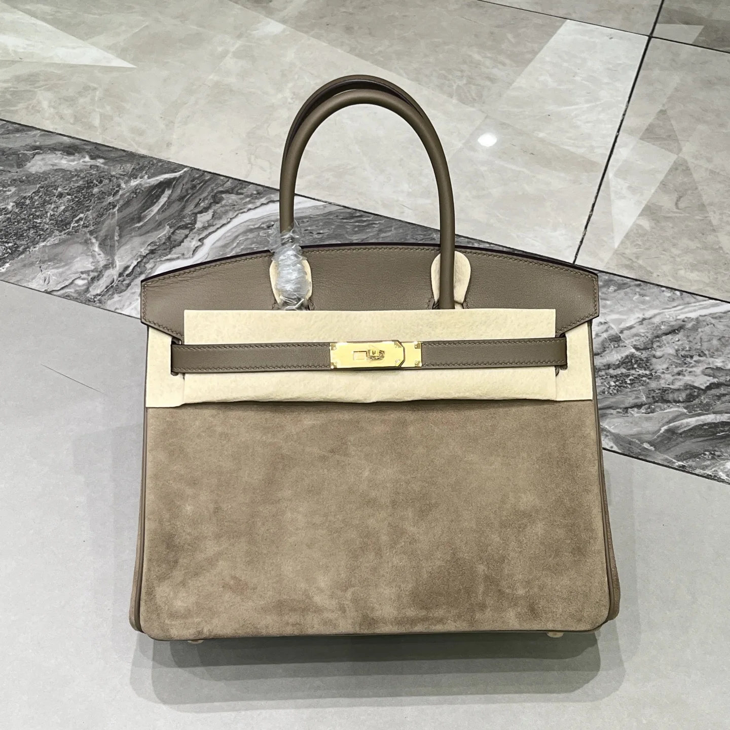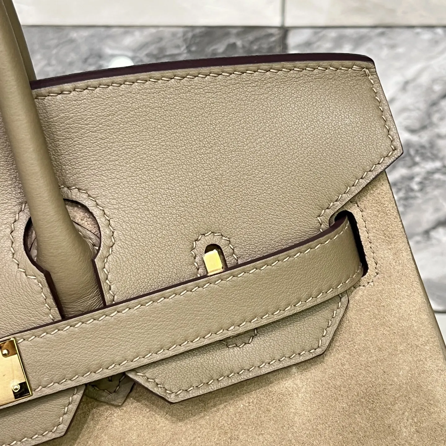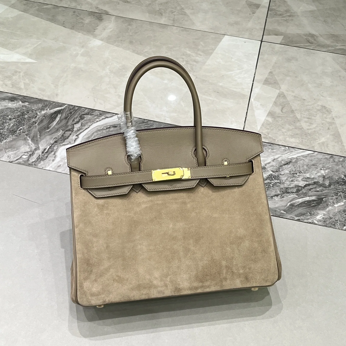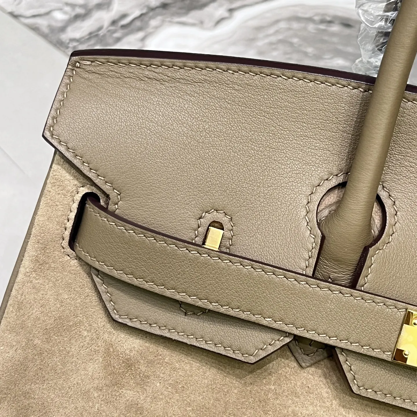 Birkin 30 Elephant Gray Gold Hardware Swift Leather Suede Goat Leather Lining Goat Leather Wax Thread Half Hand-Stitched Hand-Hammered Copper Nails All Steel Hardware