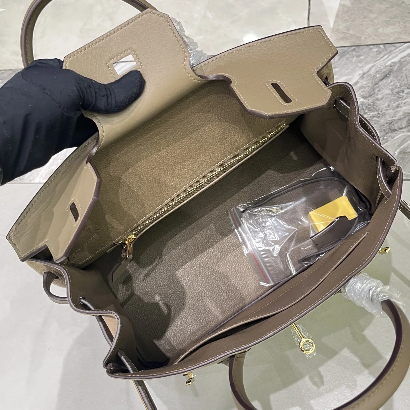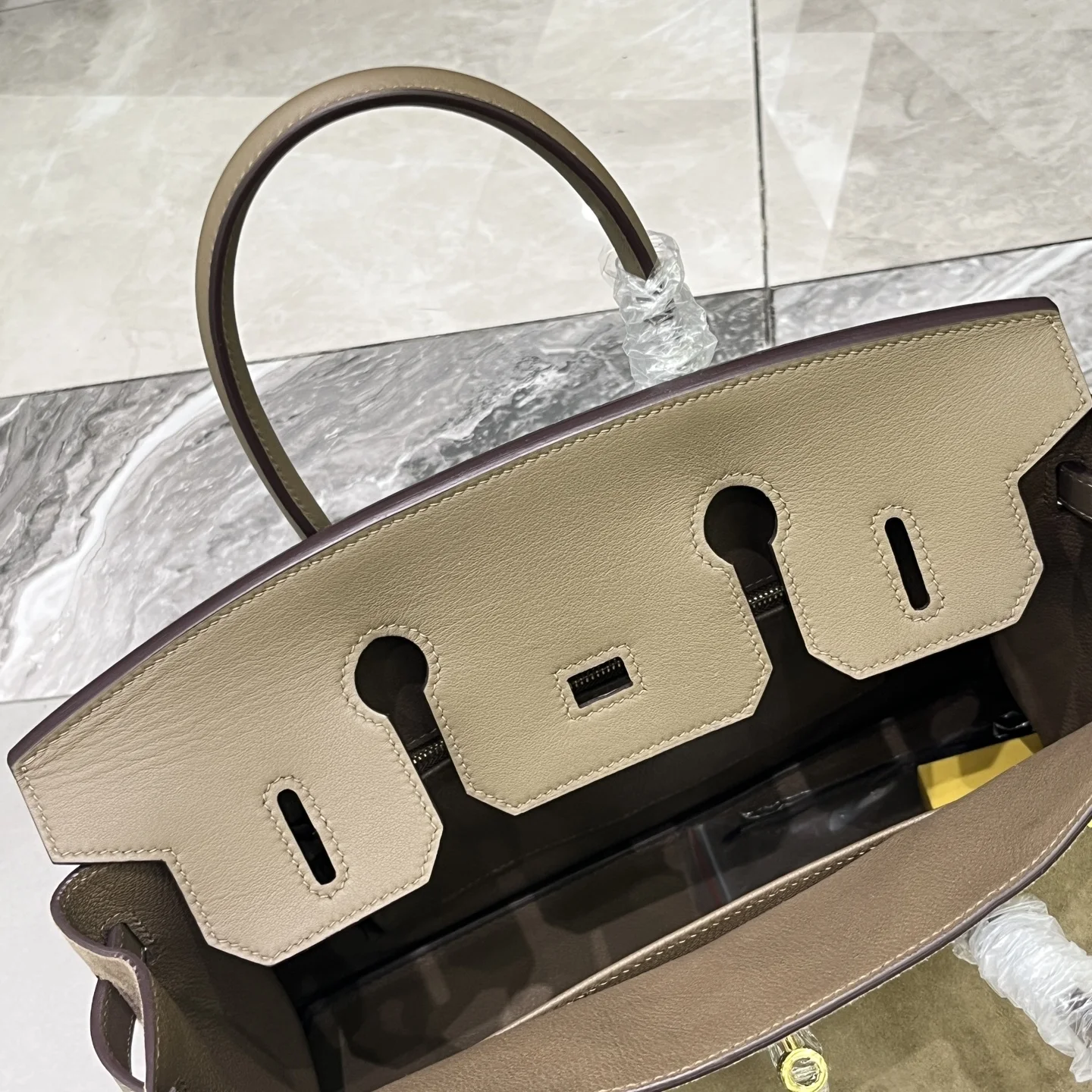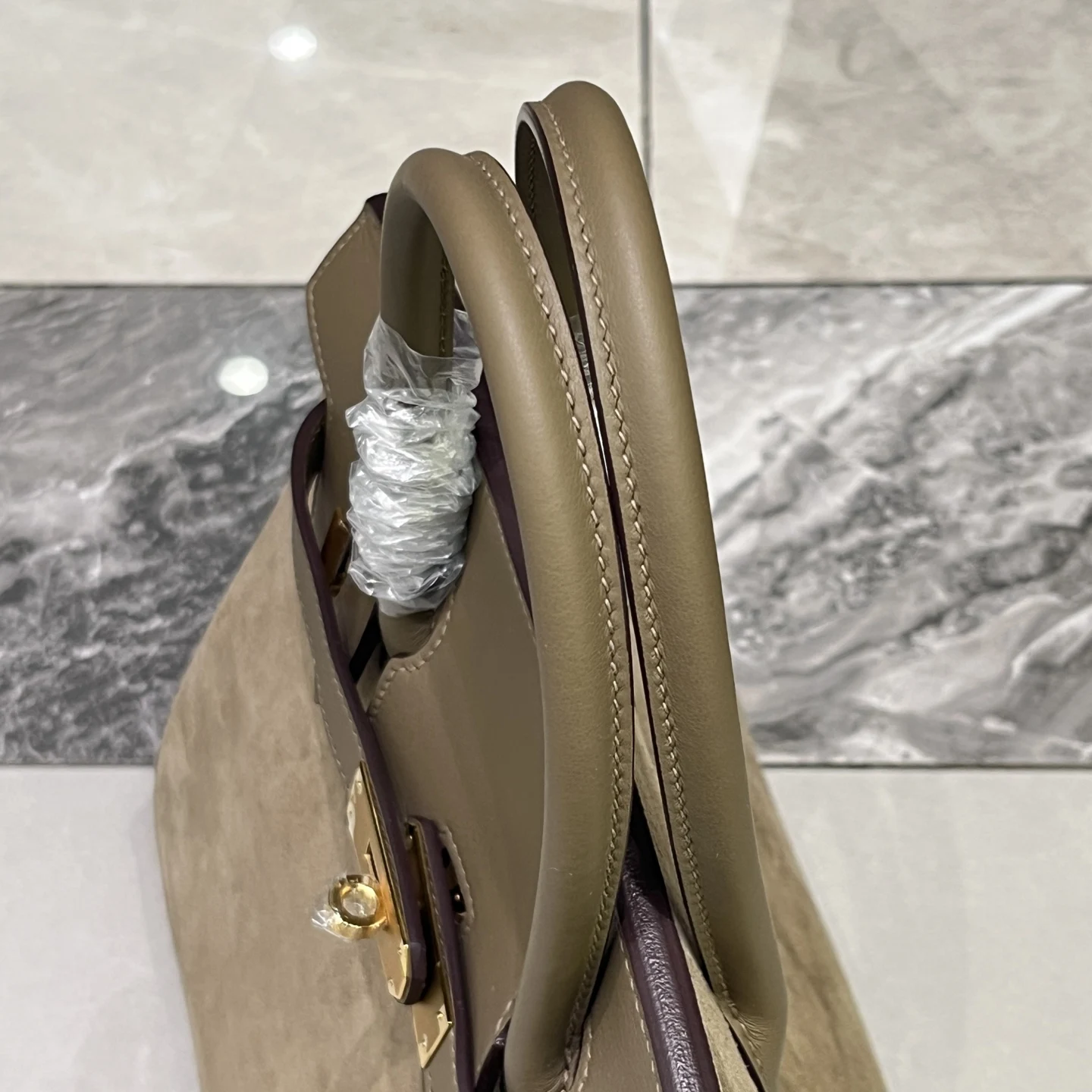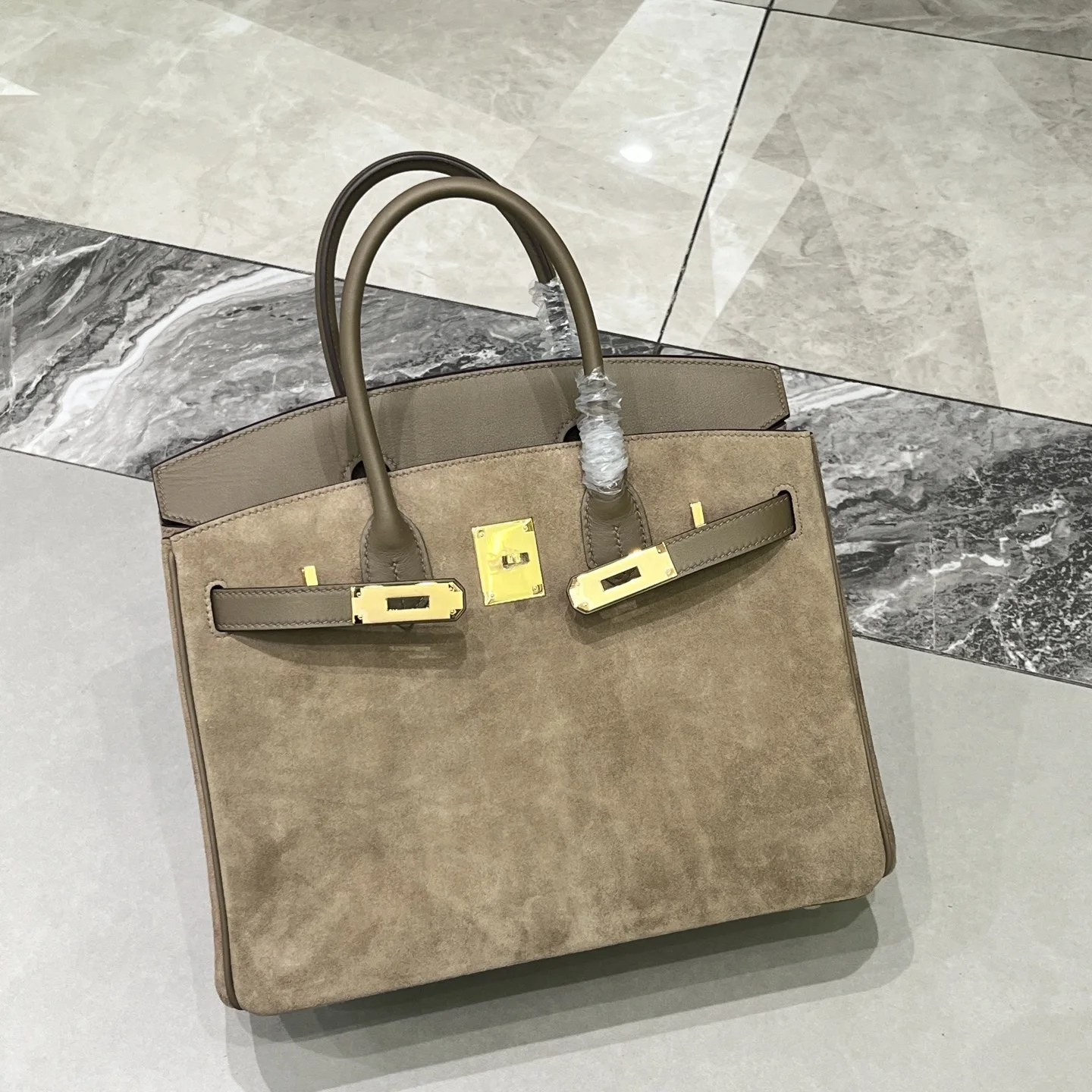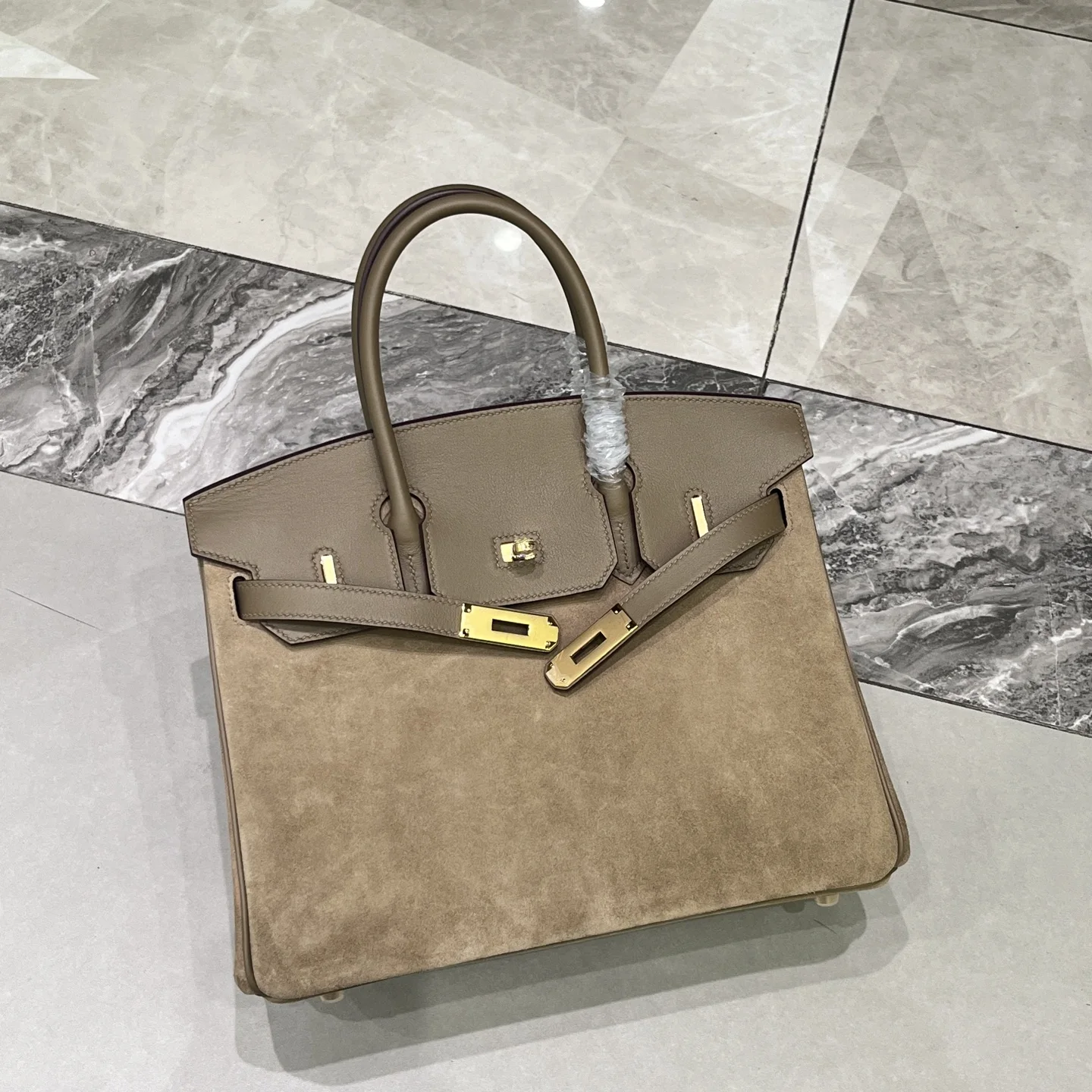 Birkin 30 Elephant Gray Gold Hardware Swift Leather Suede Goat Leather Lining Goat Leather Wax Thread Half Hand-Stitched Hand-Hammered Copper Nails All Steel Hardware