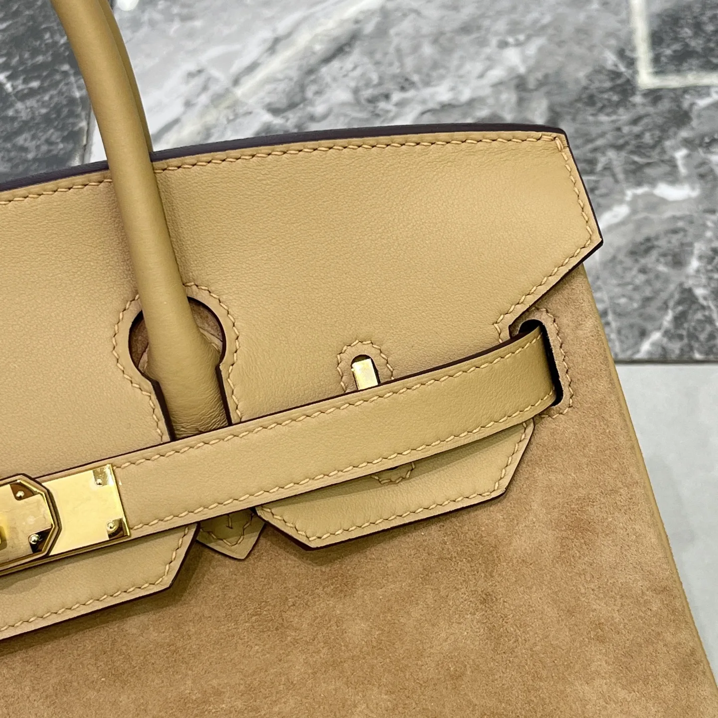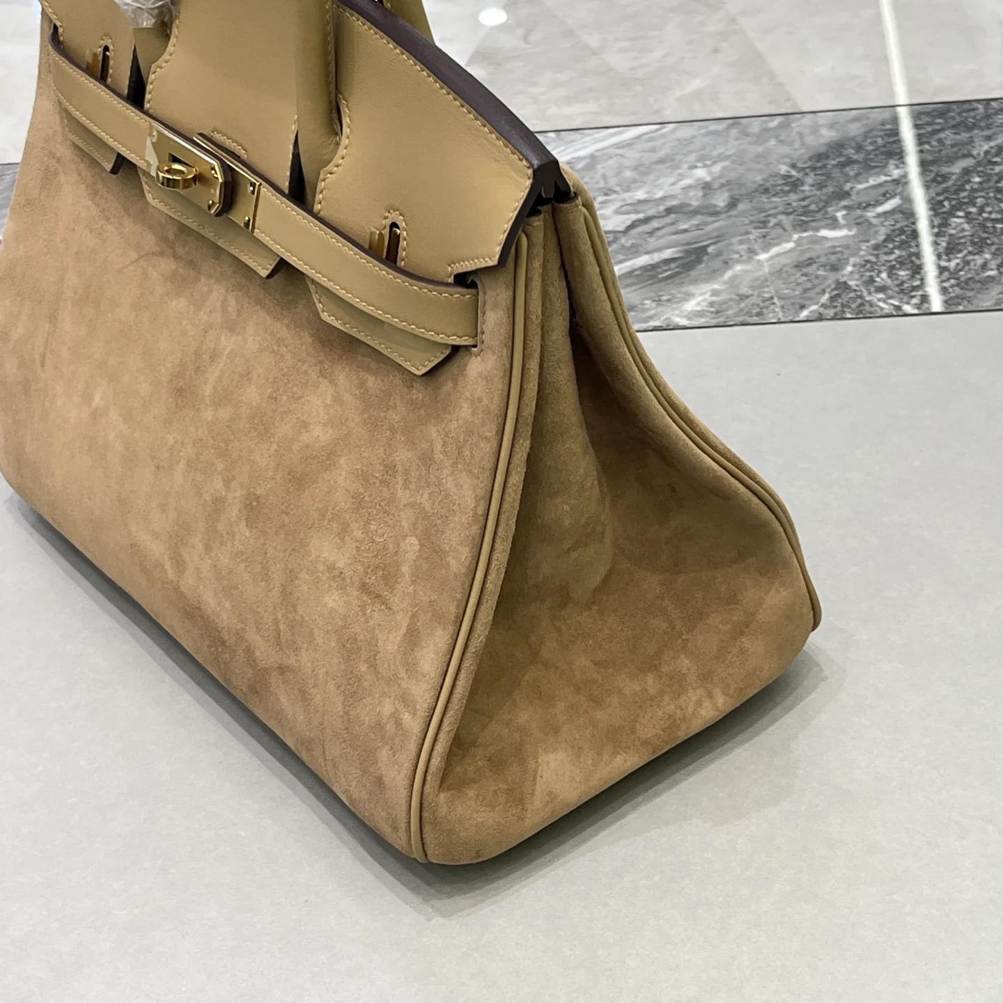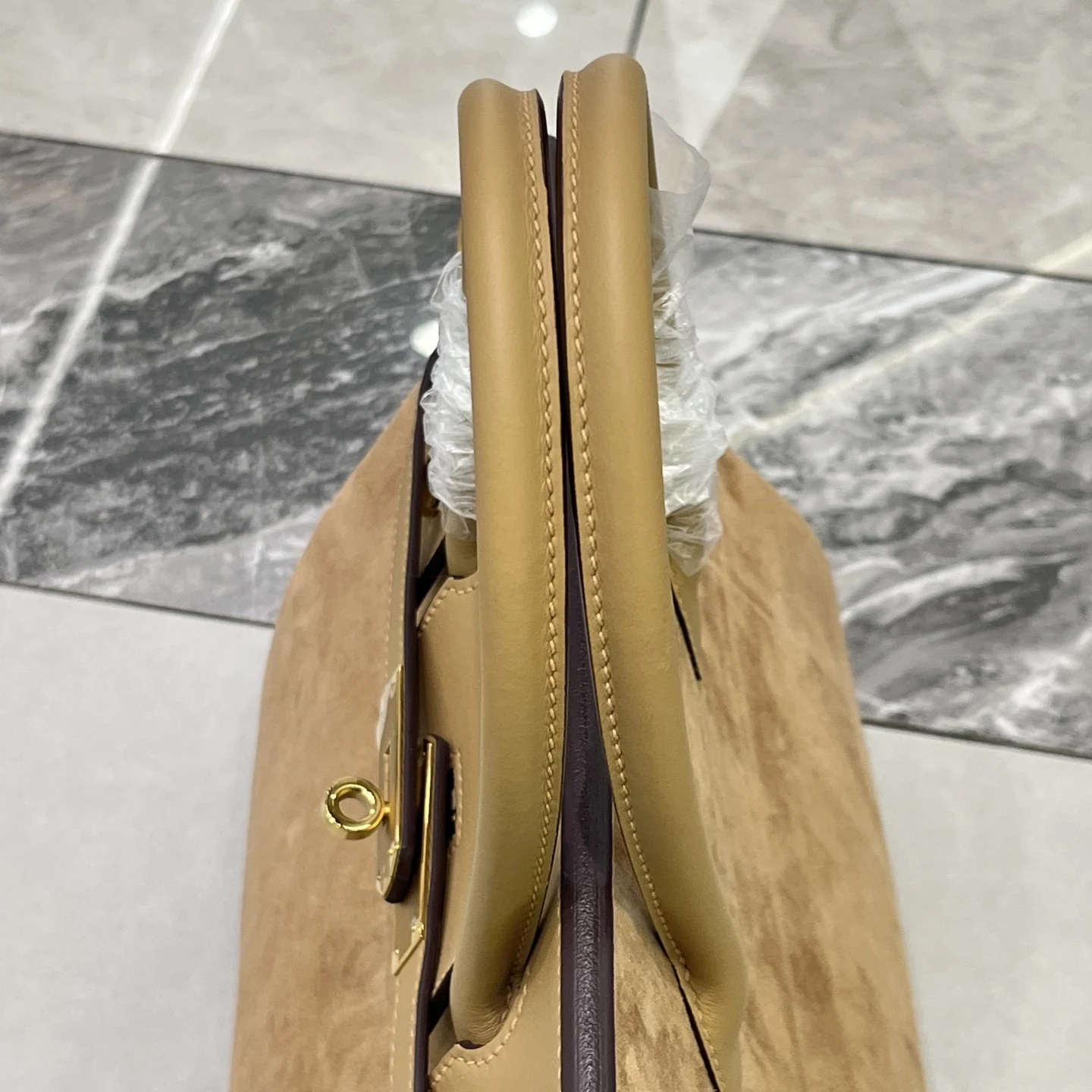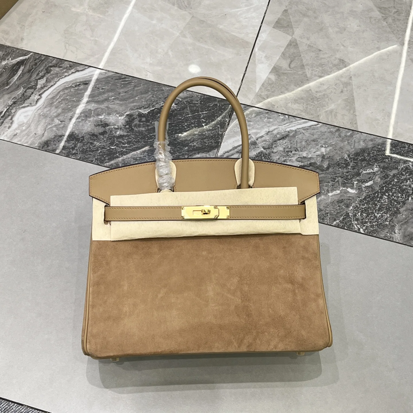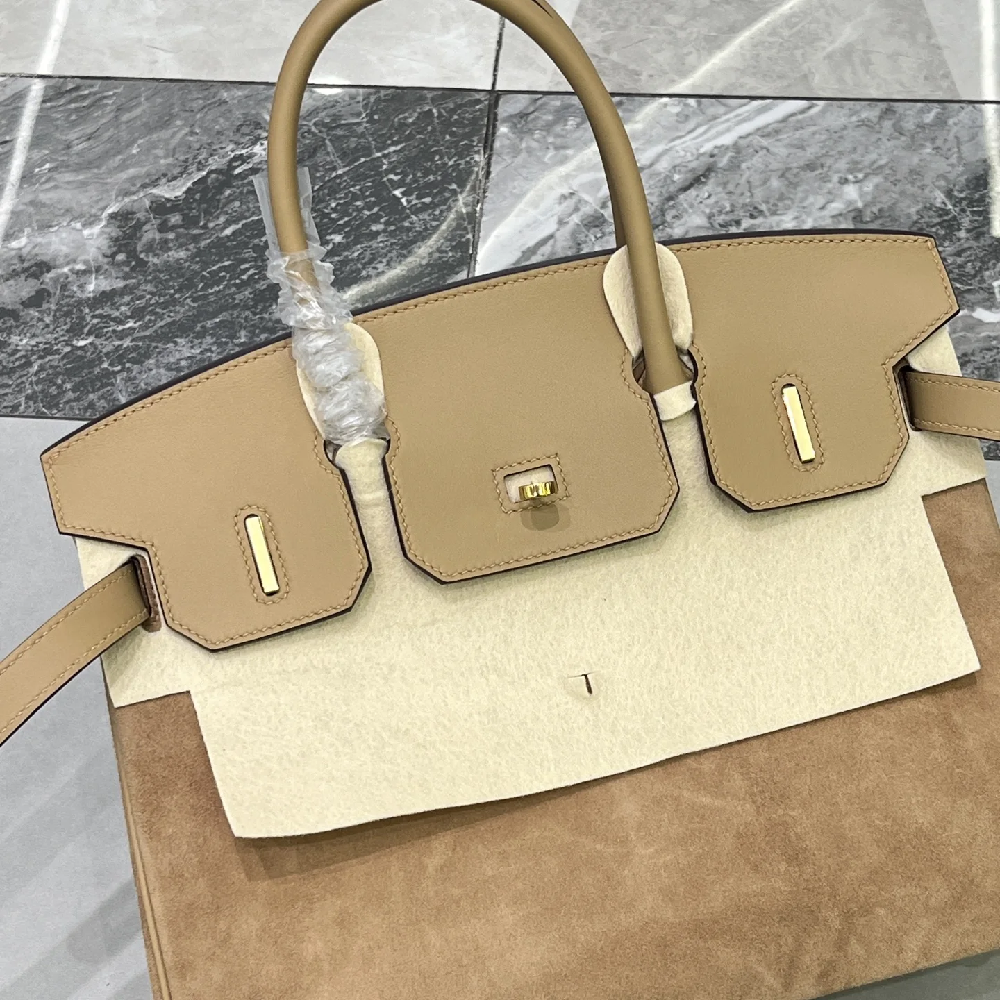 Birkin 30 Tea color Gold hardware Swift calfskin Suede goatskin lining Goatskin Wax thread half hand-sewn Hand hammered copper nails All steel hardware