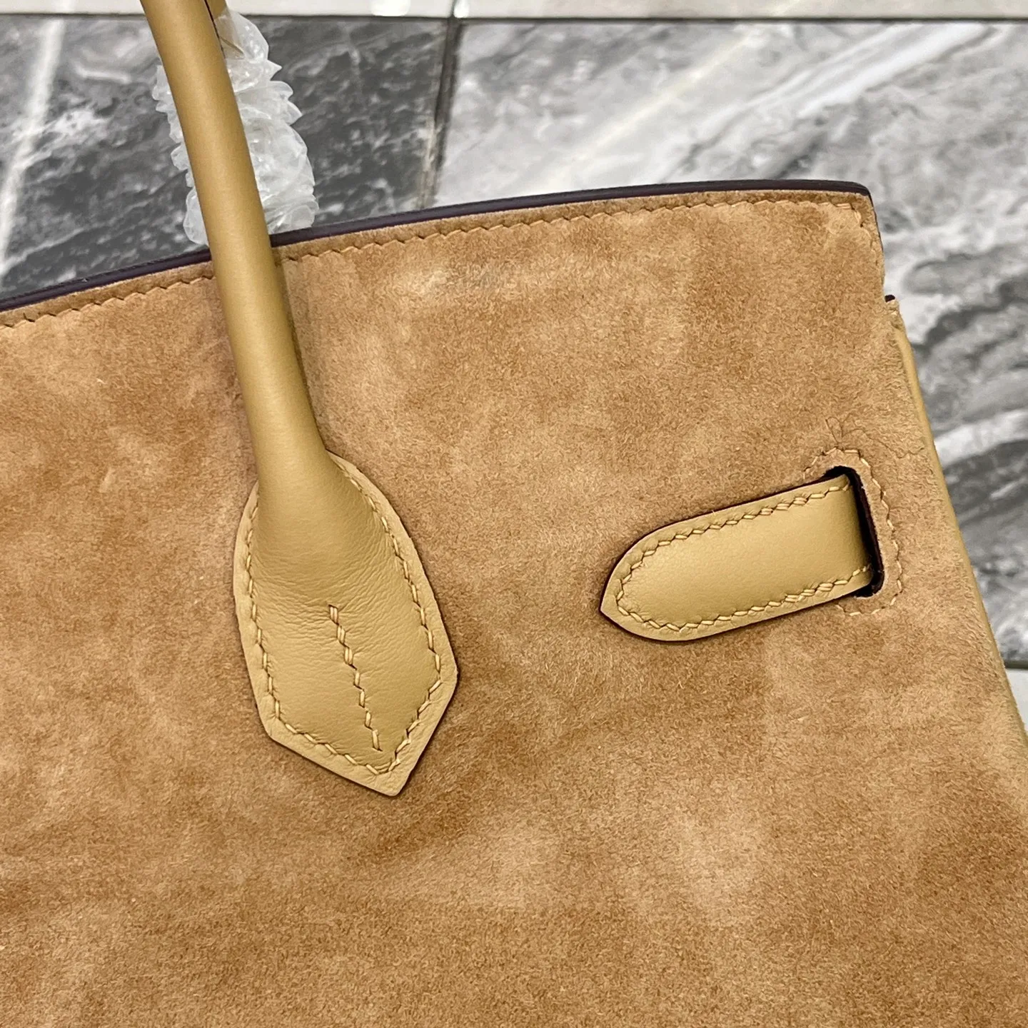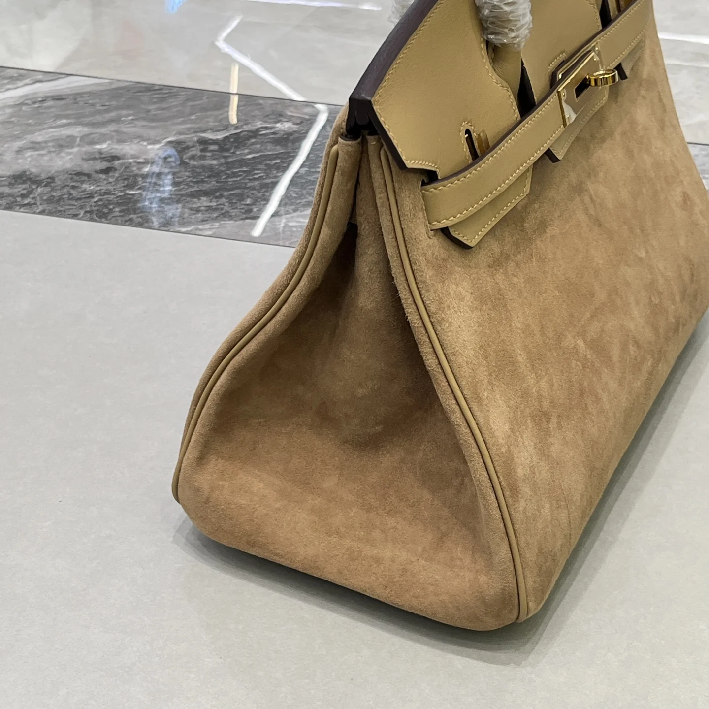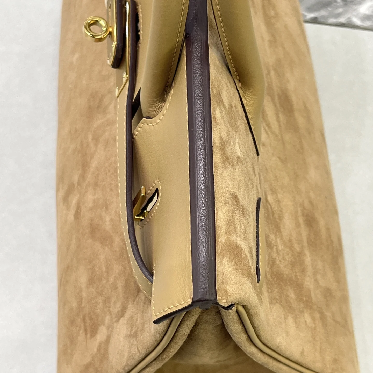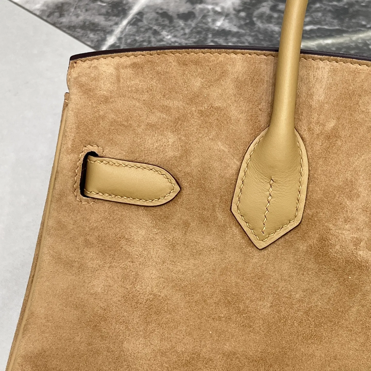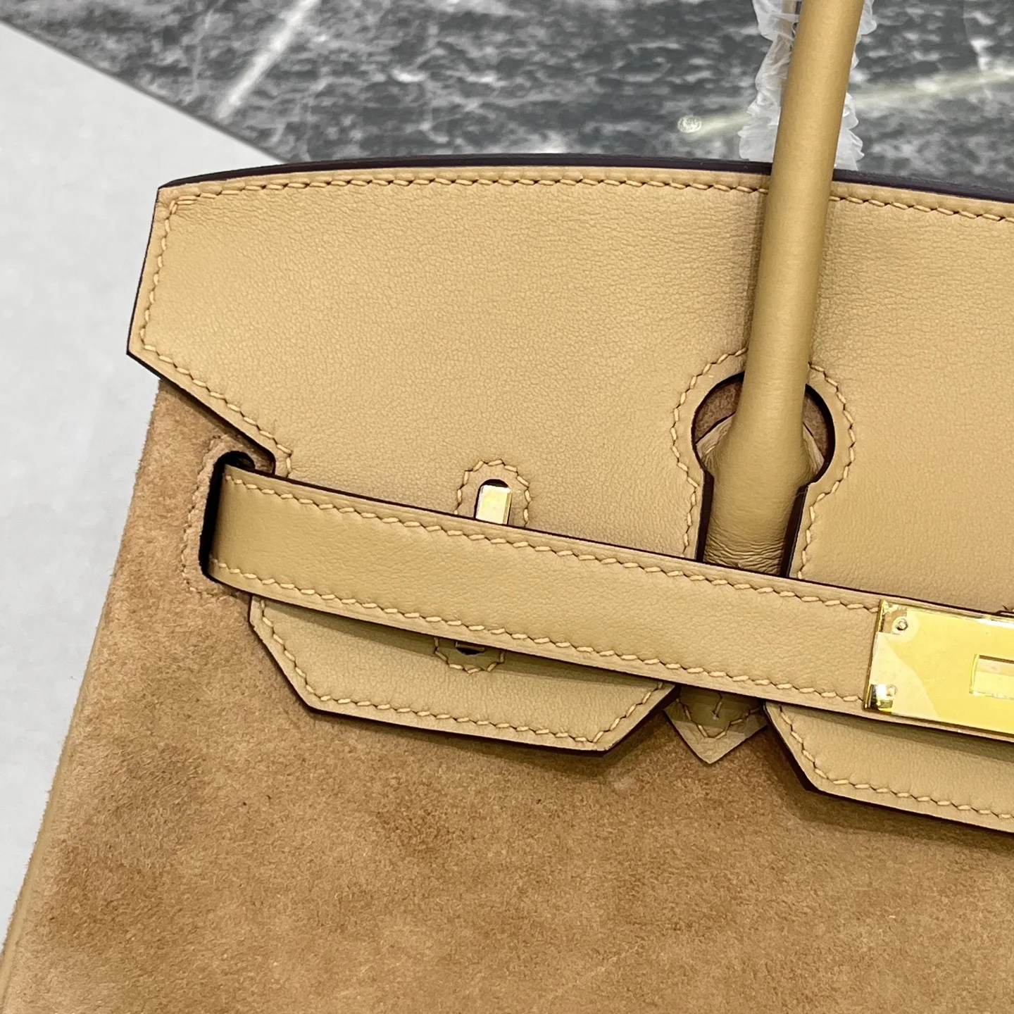 Birkin 30 Tea color Gold hardware Swift calfskin Suede goatskin lining Goatskin Wax thread half hand-sewn Hand hammered copper nails All steel hardware