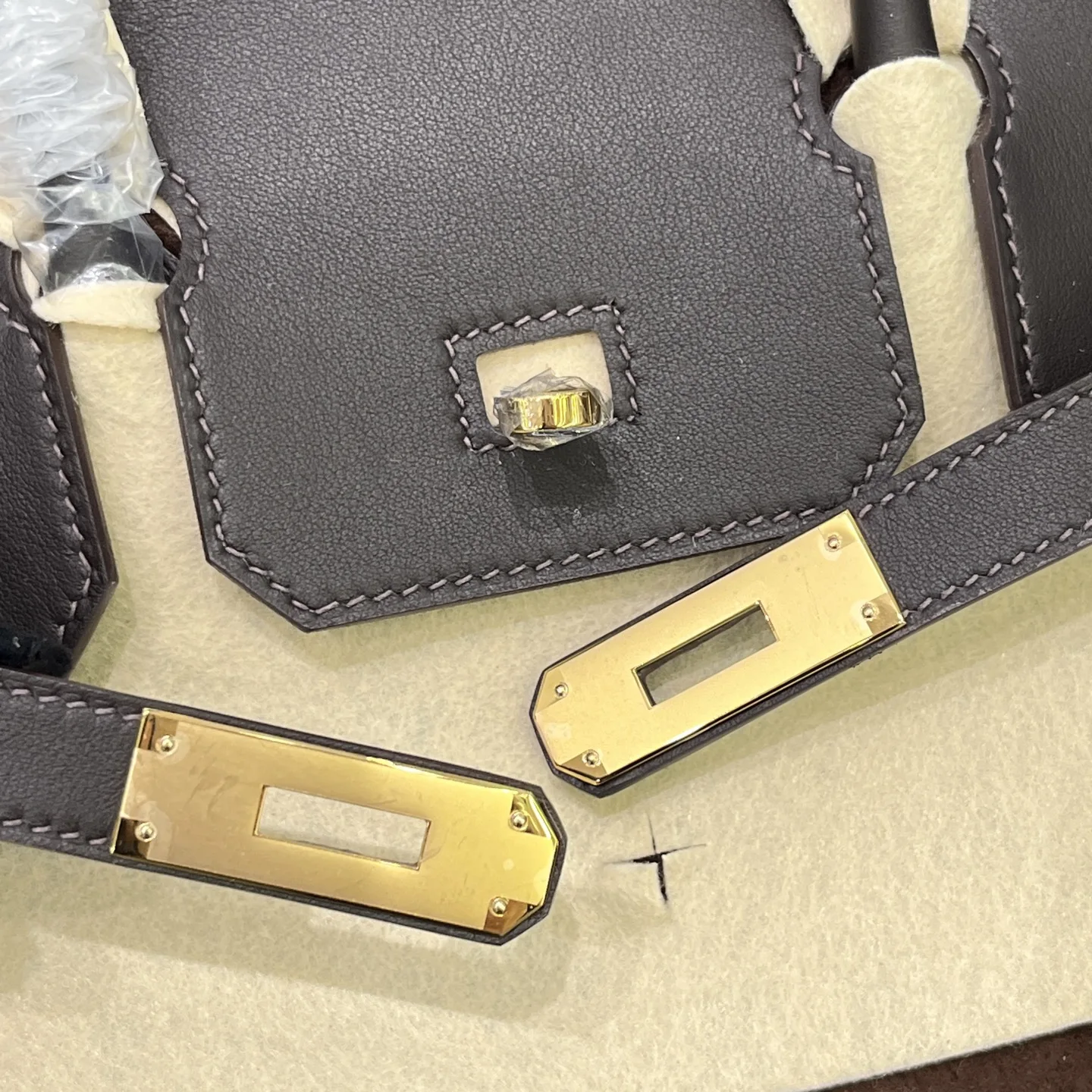 Birkin 30 Coffee Brown Gold Hardware Swift Leather Suede Goat Leather Lining Goat Leather Waxed Thread Half Hand-Stitched Hand-Hammered Copper Nails All Steel Hardware Gold Hardware Silver Hardware