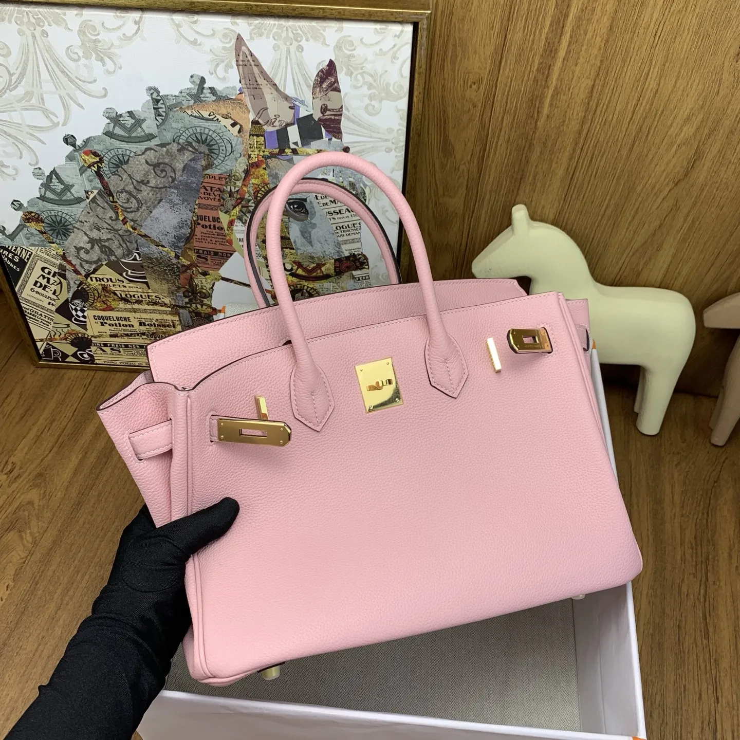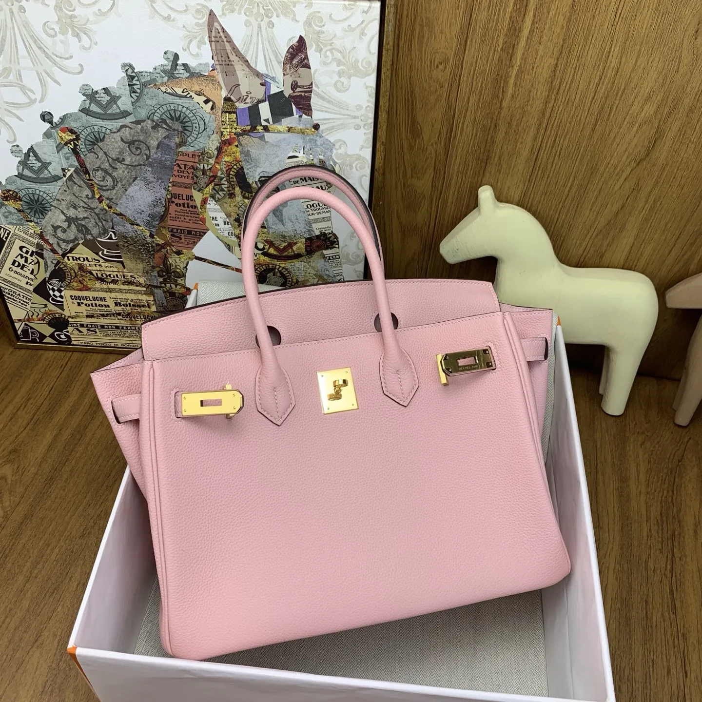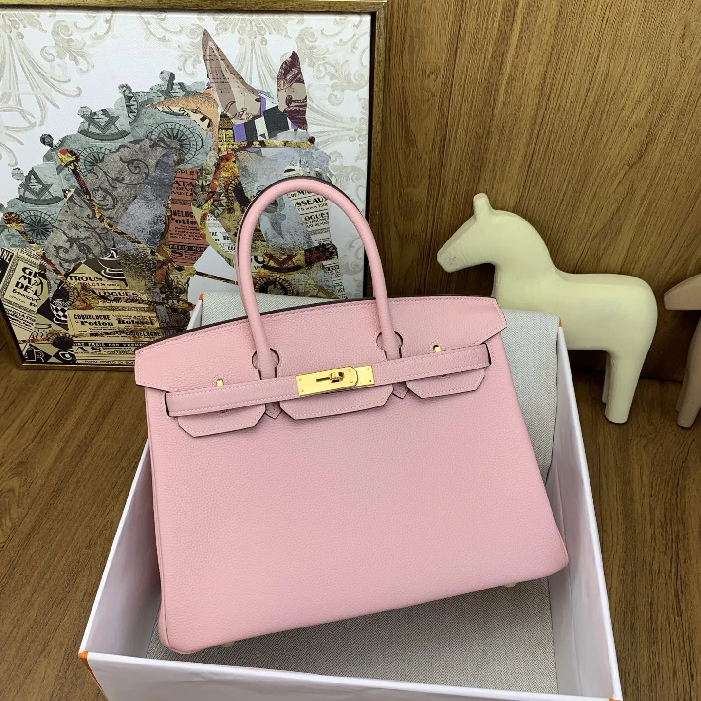 In stock Birkin 30cm togo 3Q Rose Sakura with gold hardware. The timeless code of elegance. The Togo leather texture is superb, feeling like petting calfskin, and it becomes more lustrous with use. Time only makes it more charming. It comes with an inherent air of sophistication, adding a high-end filter to any outfit. It s sharp and capable when paired with a suit for commuting, relaxed and stylish with a hoodie for shopping. It completely slays the entire venue when carried to an evening banquet. The adaptability is absolutely perfect. Birkin is truly something you fall for at first sight and want to keep forever. Anyone who carries it understands what the soulful white moonlight of the bag world means. I suggest adding owning a Birkin as soon as possible to your life s to-do list. Investing in this is definitely worth it!