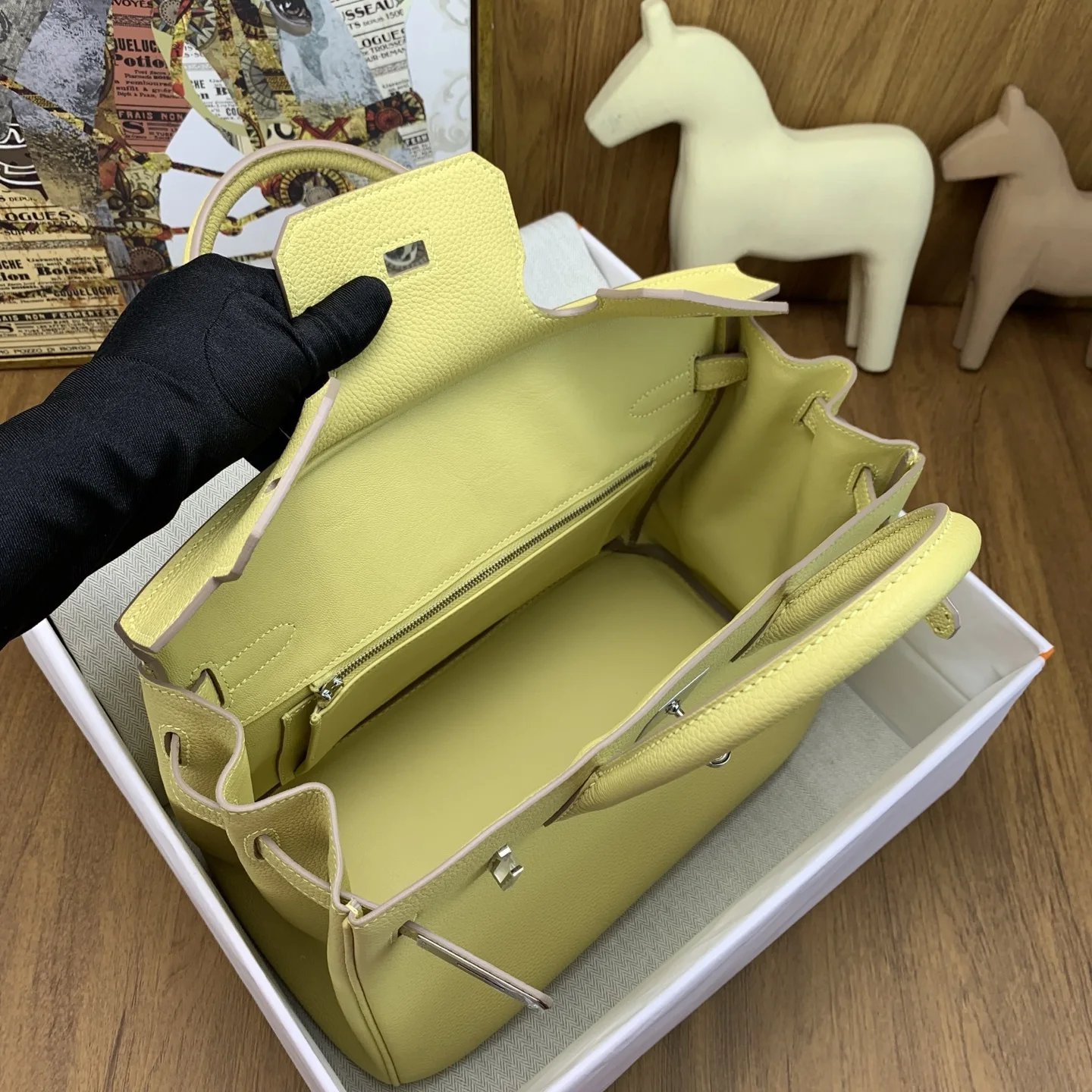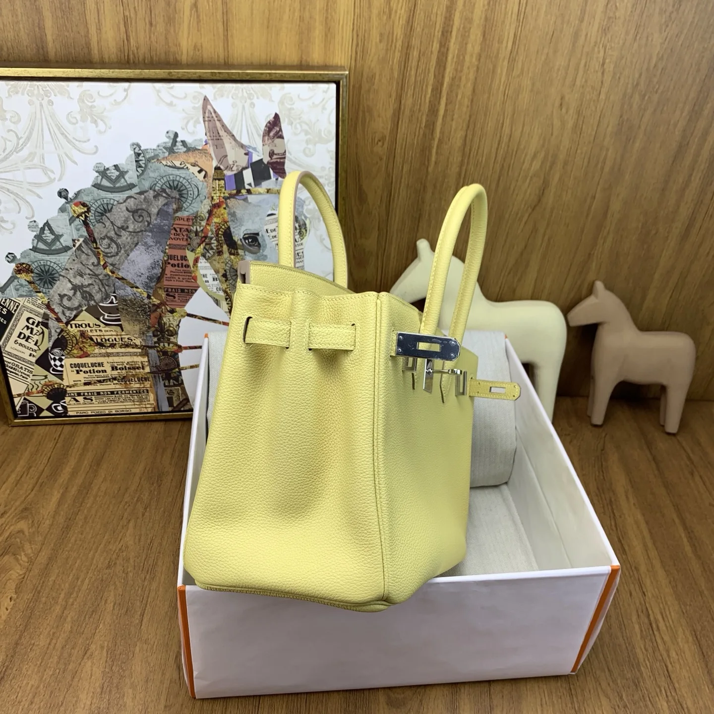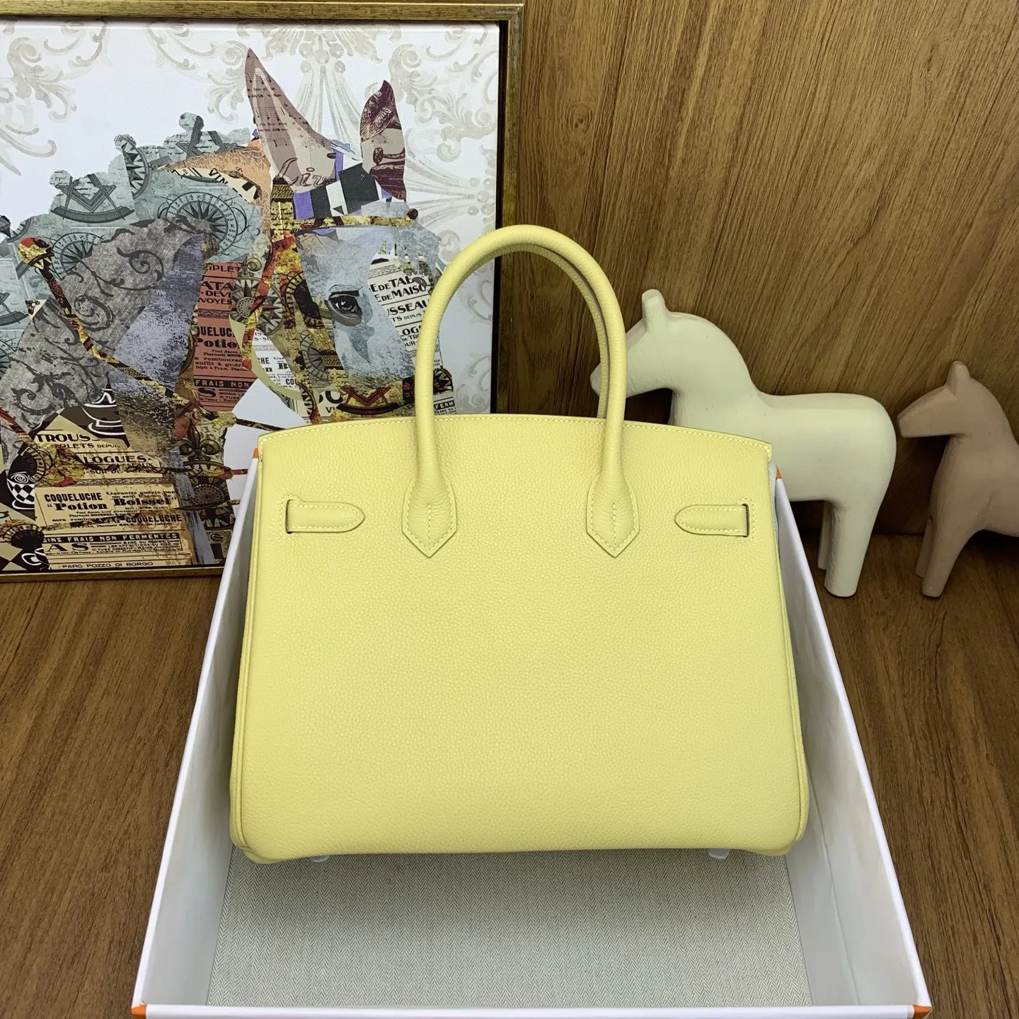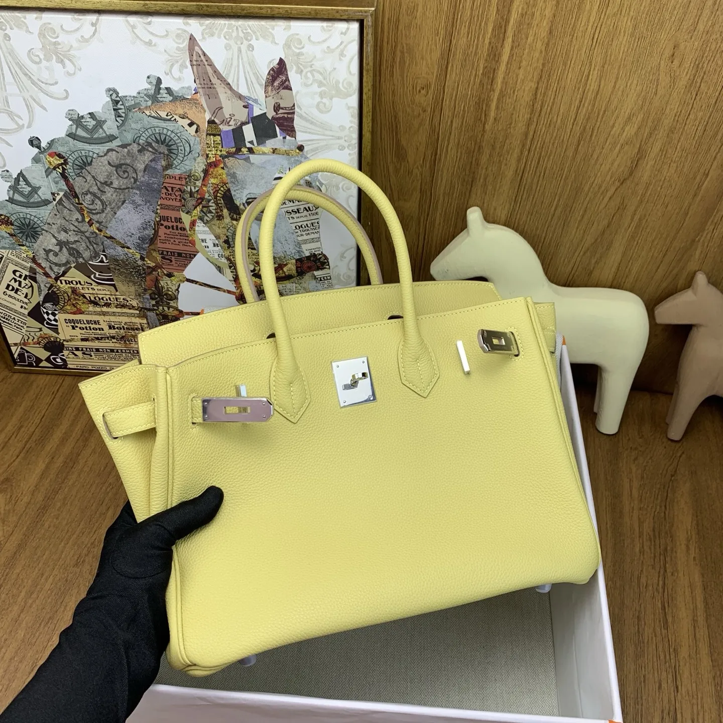 In stock Birkin 30cm togo lZ Jaune Poussin with silver hardware. The timeless elegance of Togo leather is unmatched, with a texture that feels like petting calfskin and develops ..