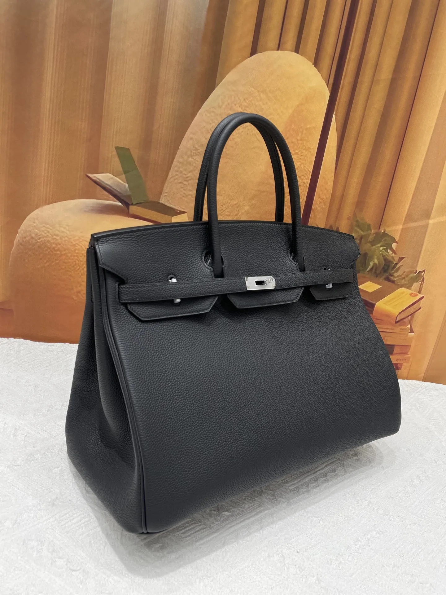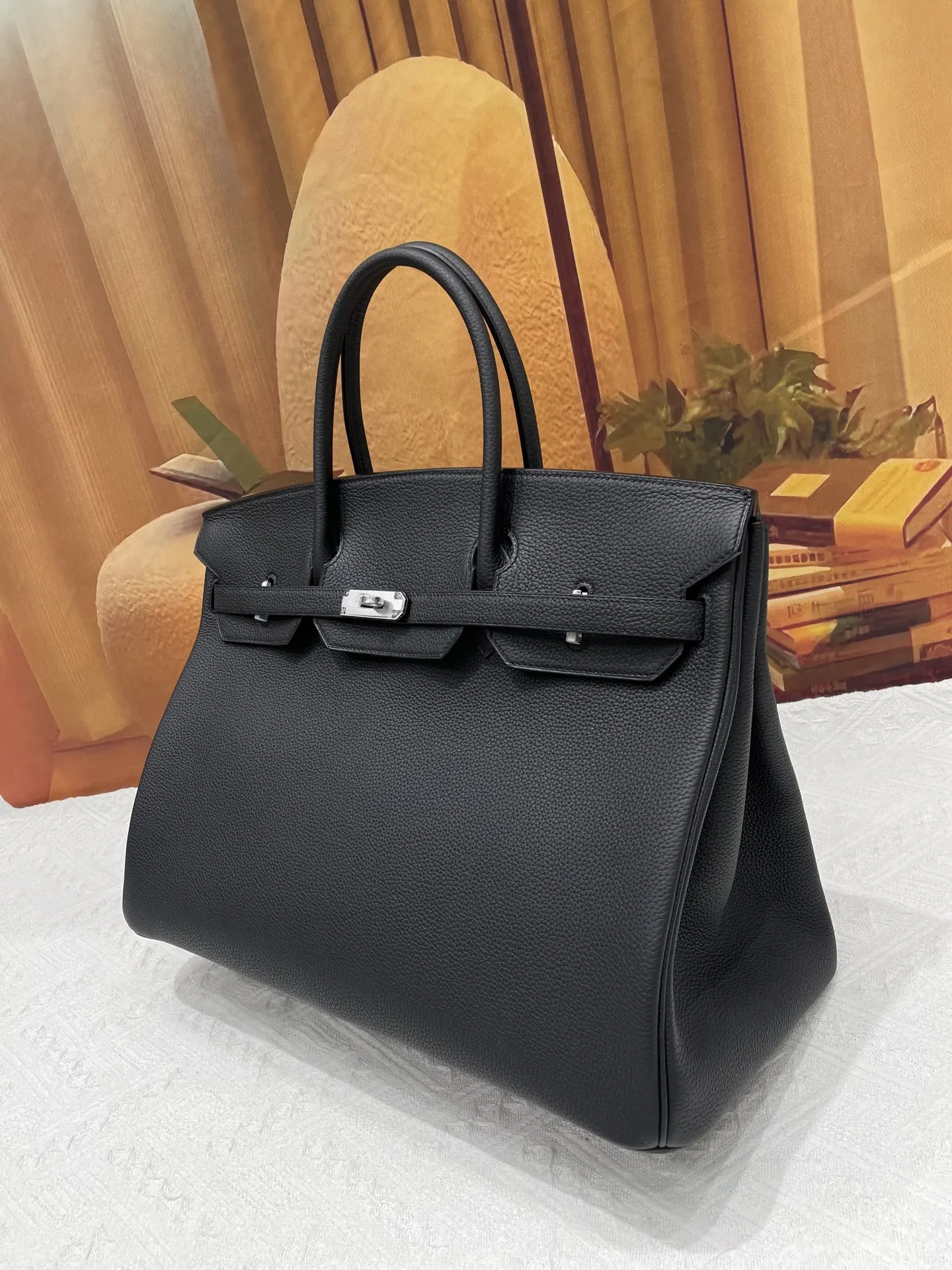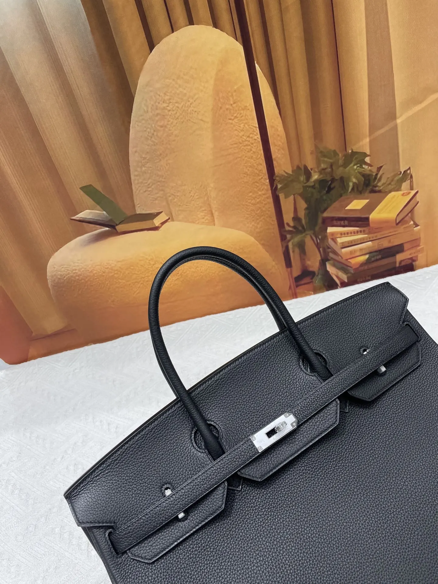 Semi-handmade Birkin 40cm Grade A Togo Leather Black with Gold Silver Hardware In Stock. Platinum Series, Counterfeit-Synchronized Wax Thread Stitching.