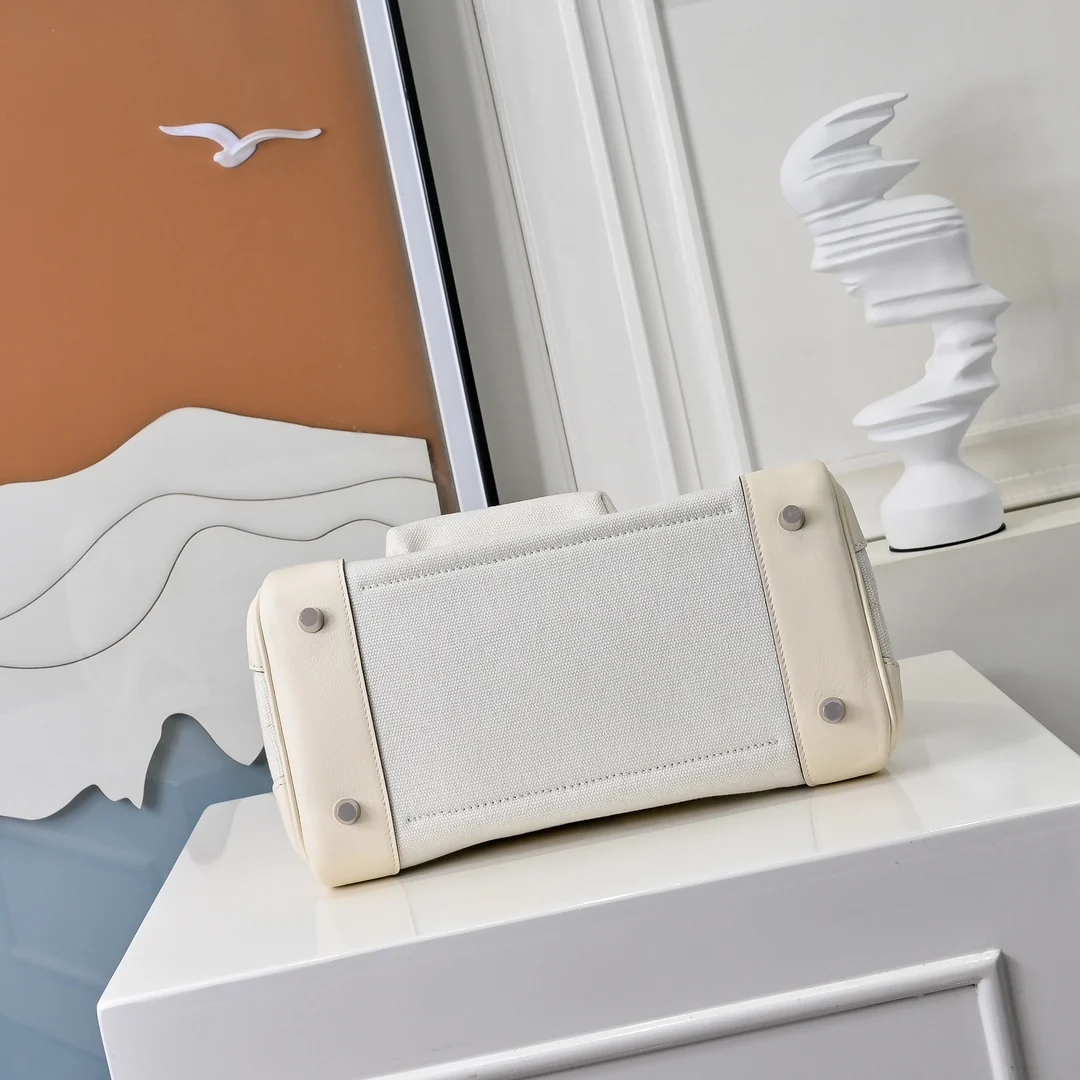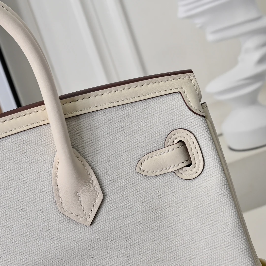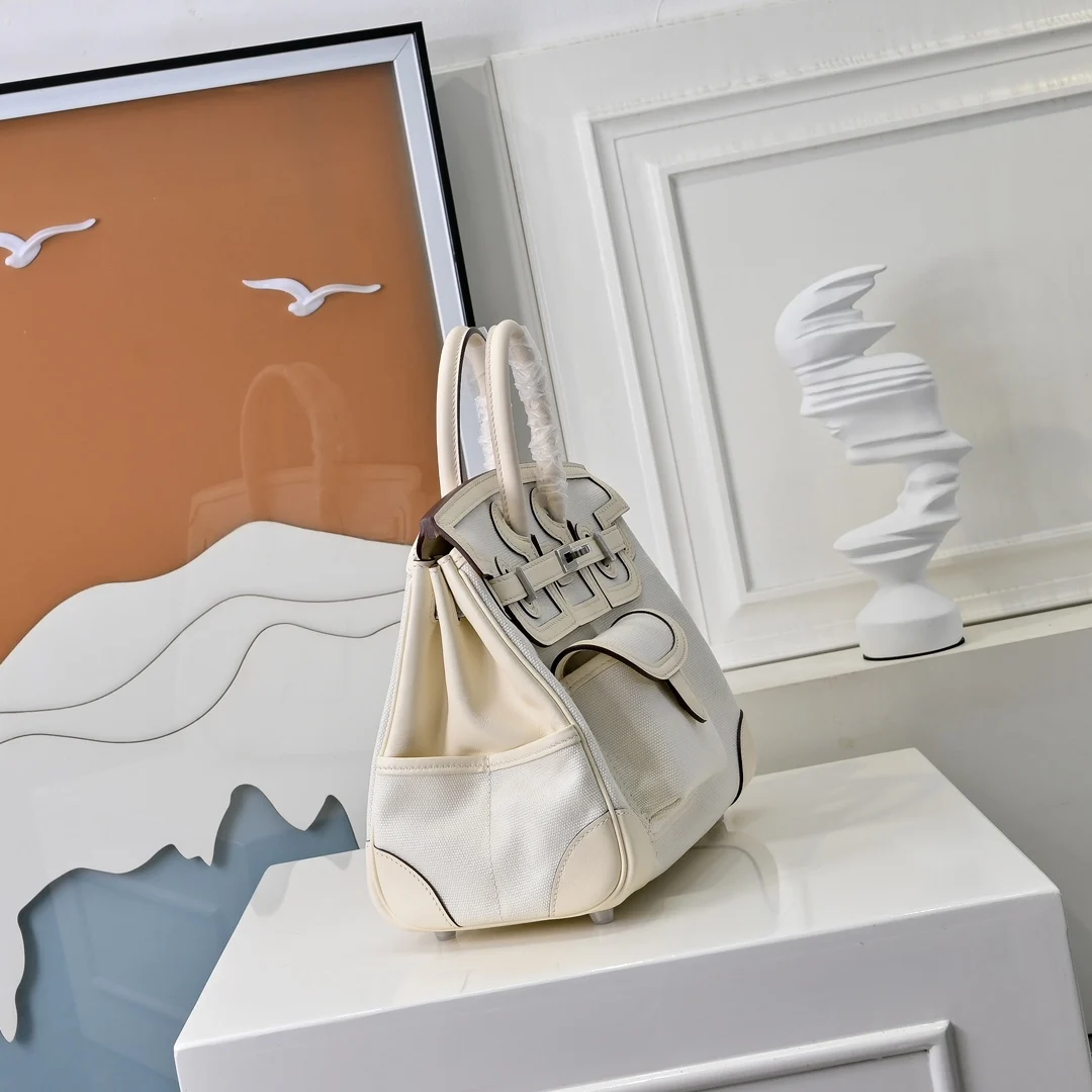New platinum Cargo series, size 25, Swift leather combined with canvas, silver hardware, European and American fashion, synchronized with the boutique, beeswax thread stitching, al..