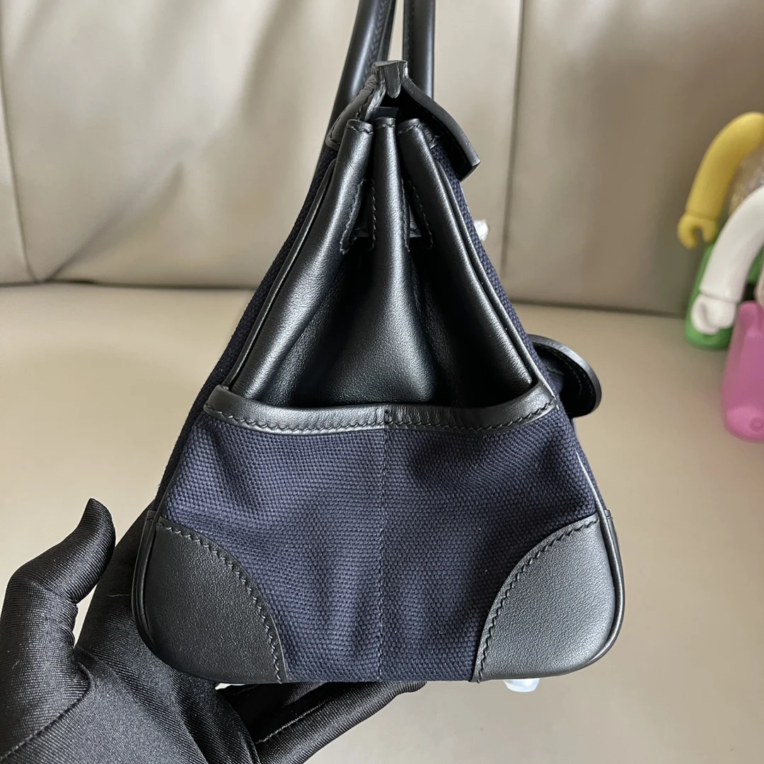 New Platinum Cargo Series, Size 25, Swift Leather combined with Canvas, Deep Blue, Silver Hardware, European and American Fashion, Synchronized with Boutique Wax Thread Sewing, All..
