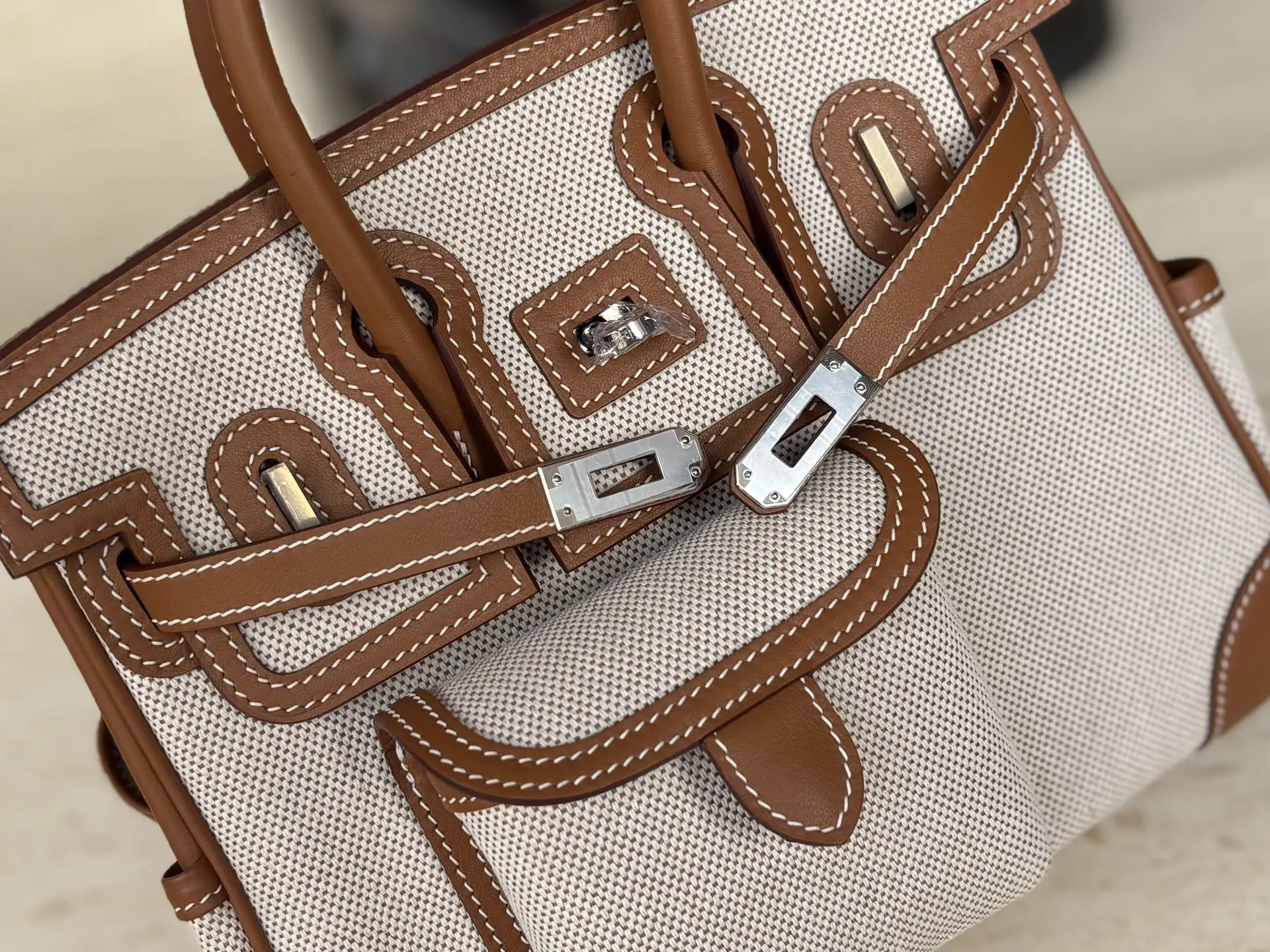 New Platinum Cargo Series, Size 25, Swift Leather combined with Canvas, Gold Brown, Silver Hardware, European and American Fashion, Synchronized with Boutique Wax Thread Sewing, All-Steel Hardware, Private Customization
