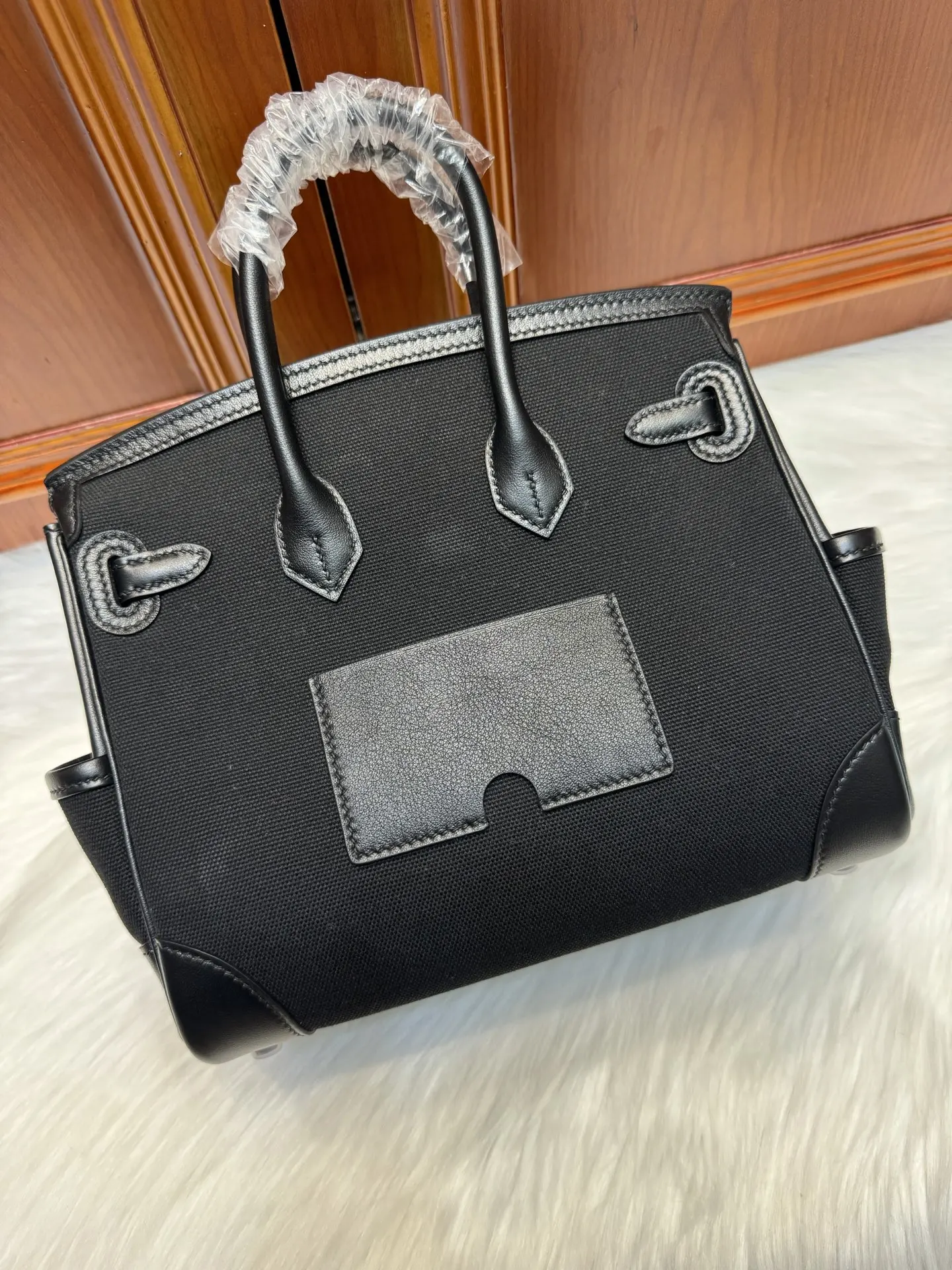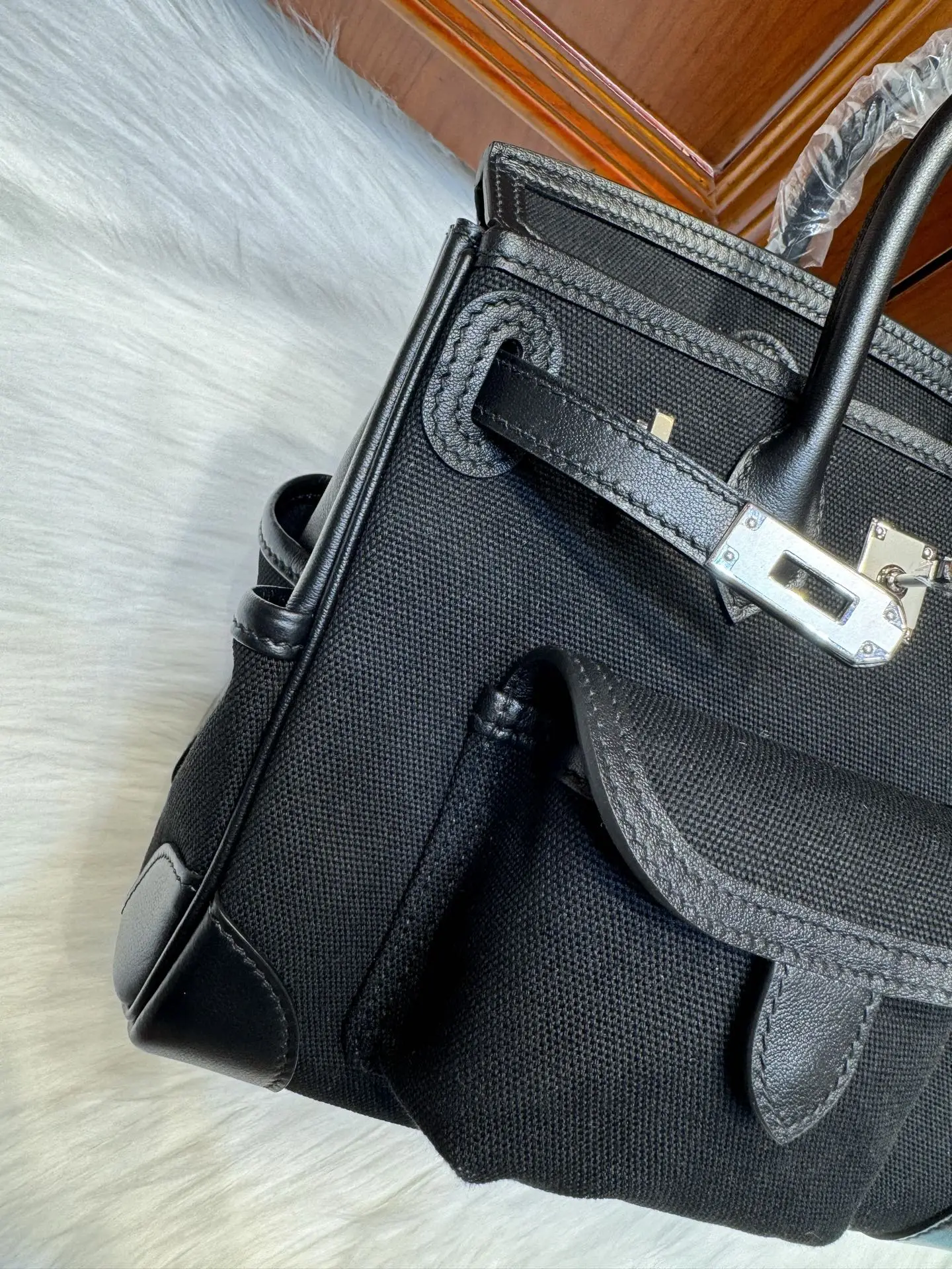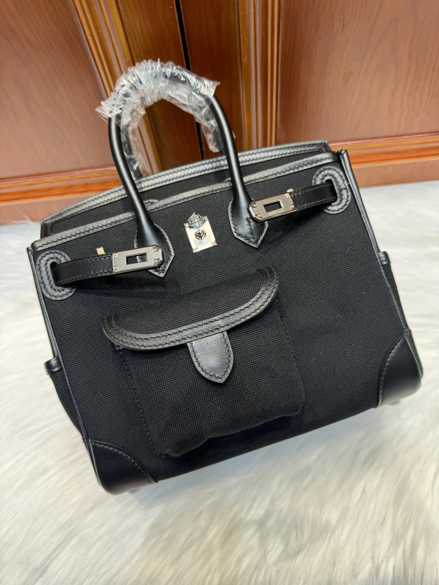 Birkin 25cm Cargo Black Swift with Black Canvas and Silver Hardware