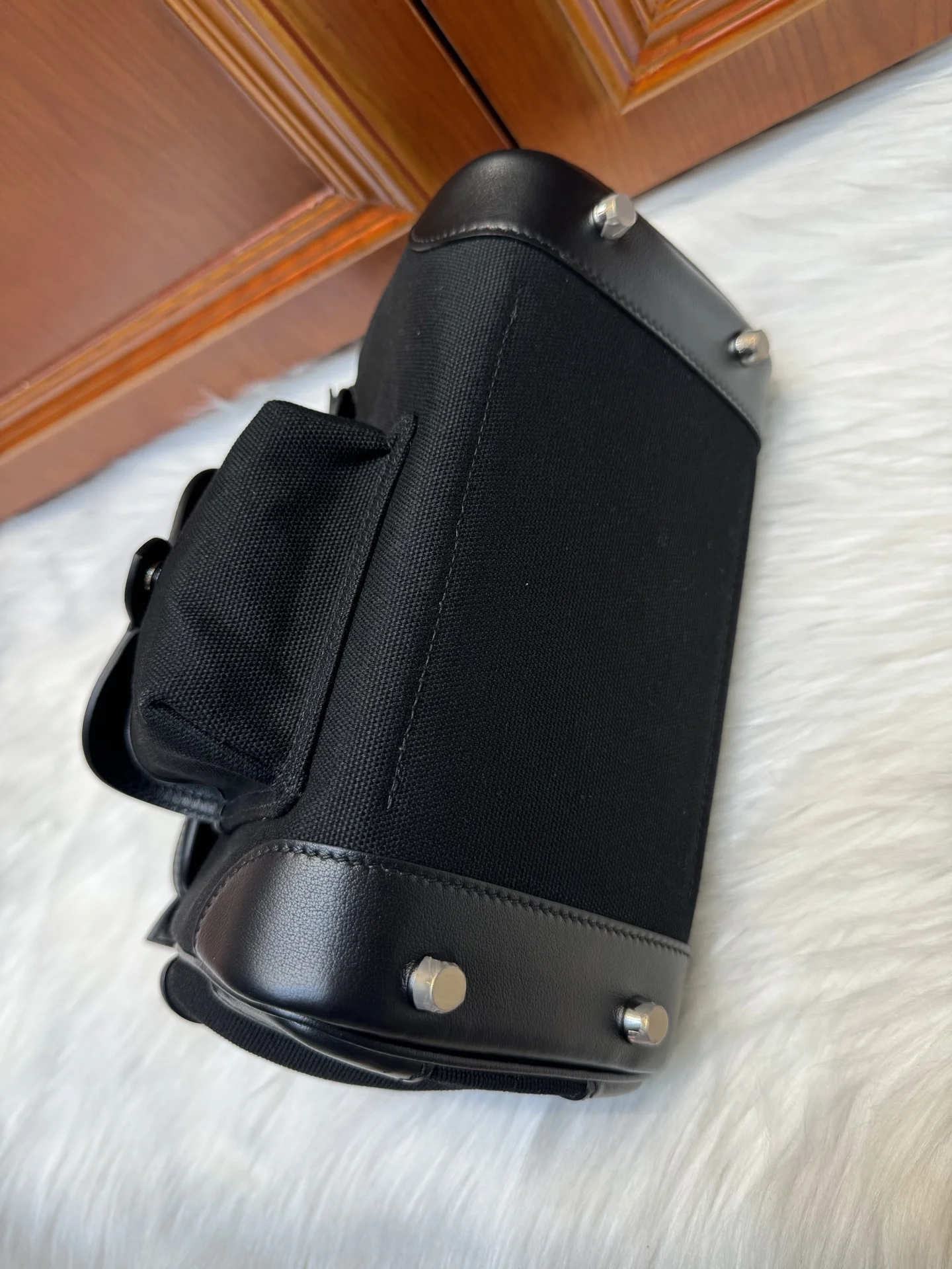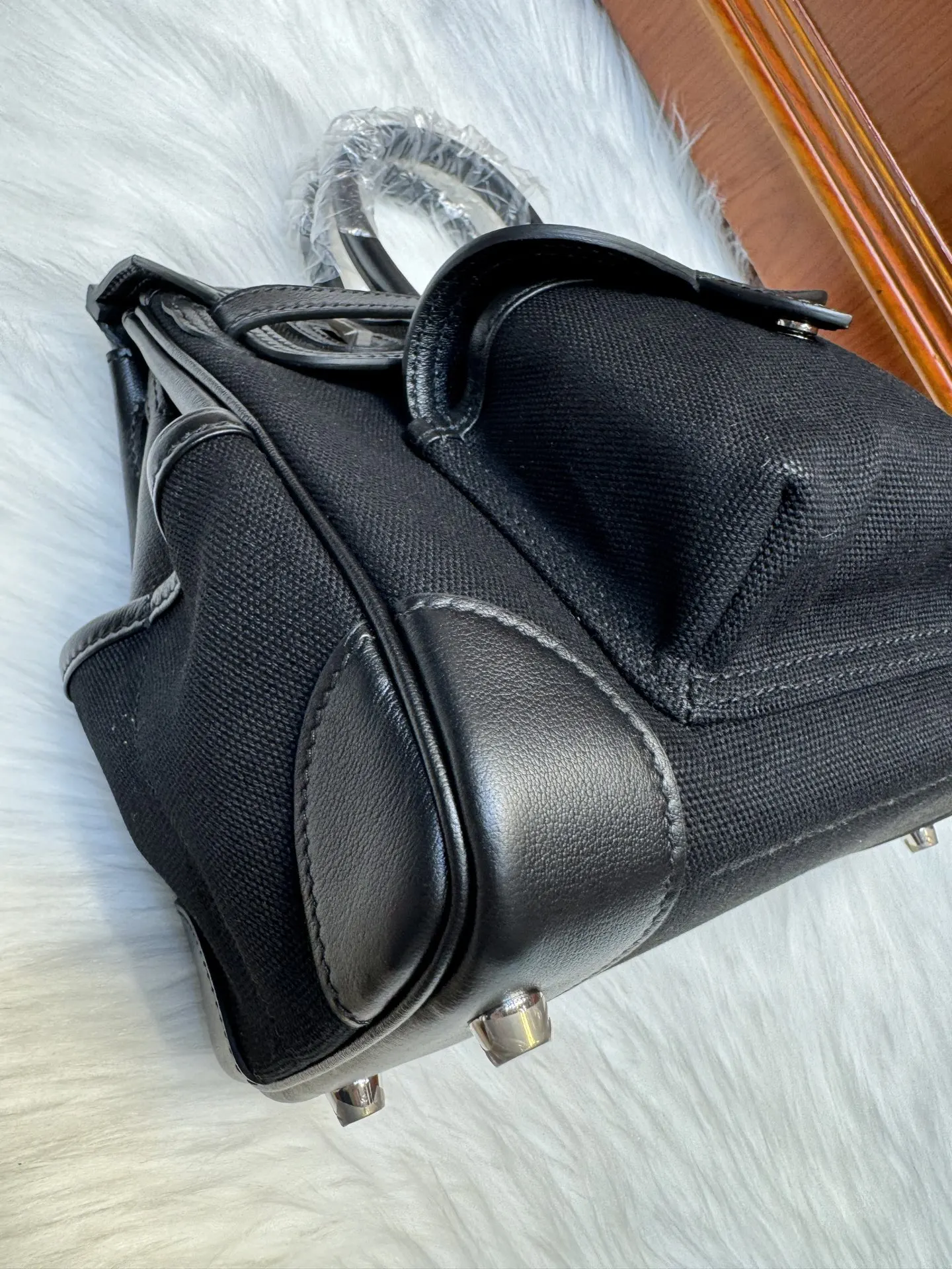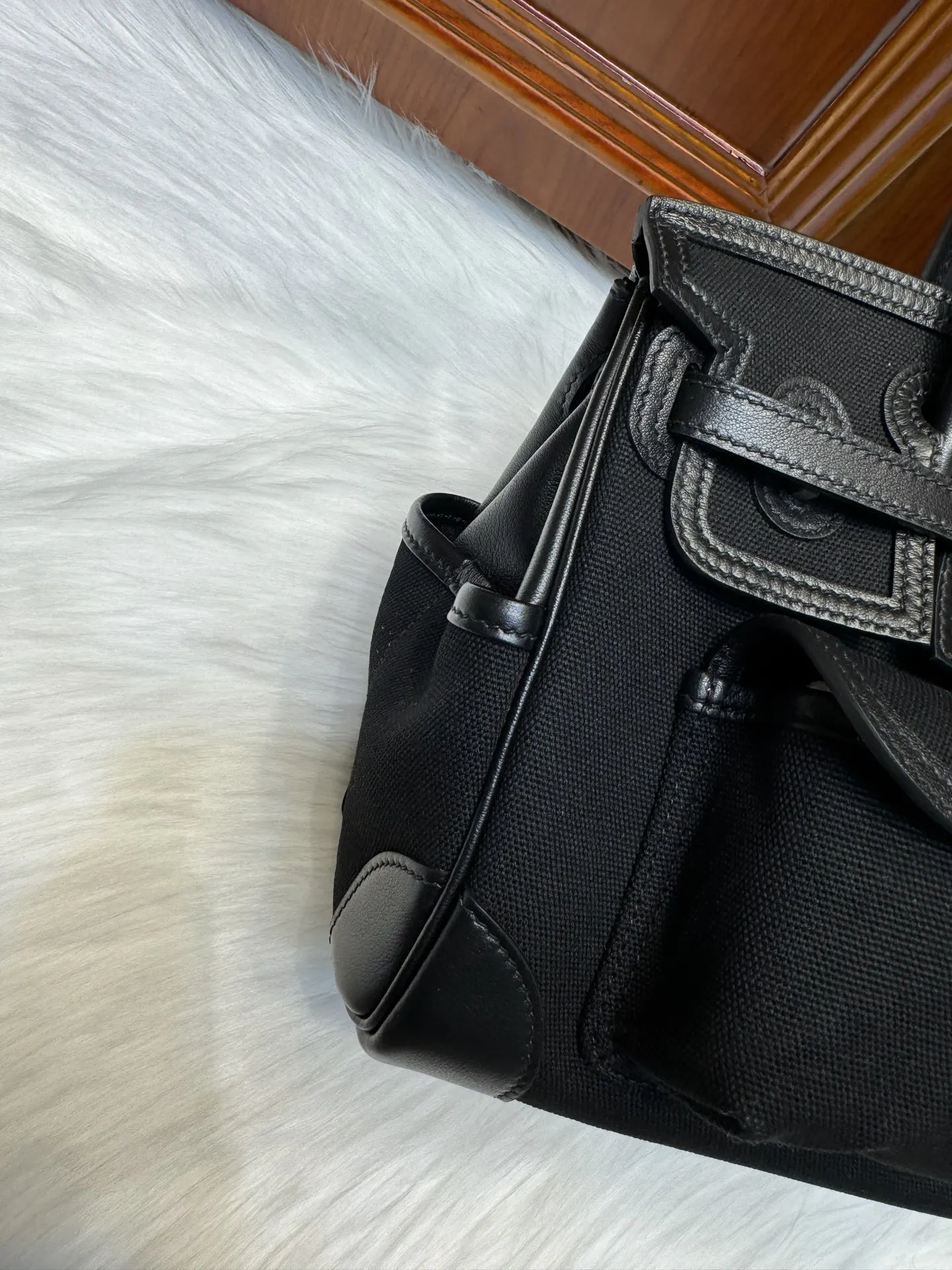 Birkin 25cm Cargo Black Swift with Black Canvas and Silver Hardware