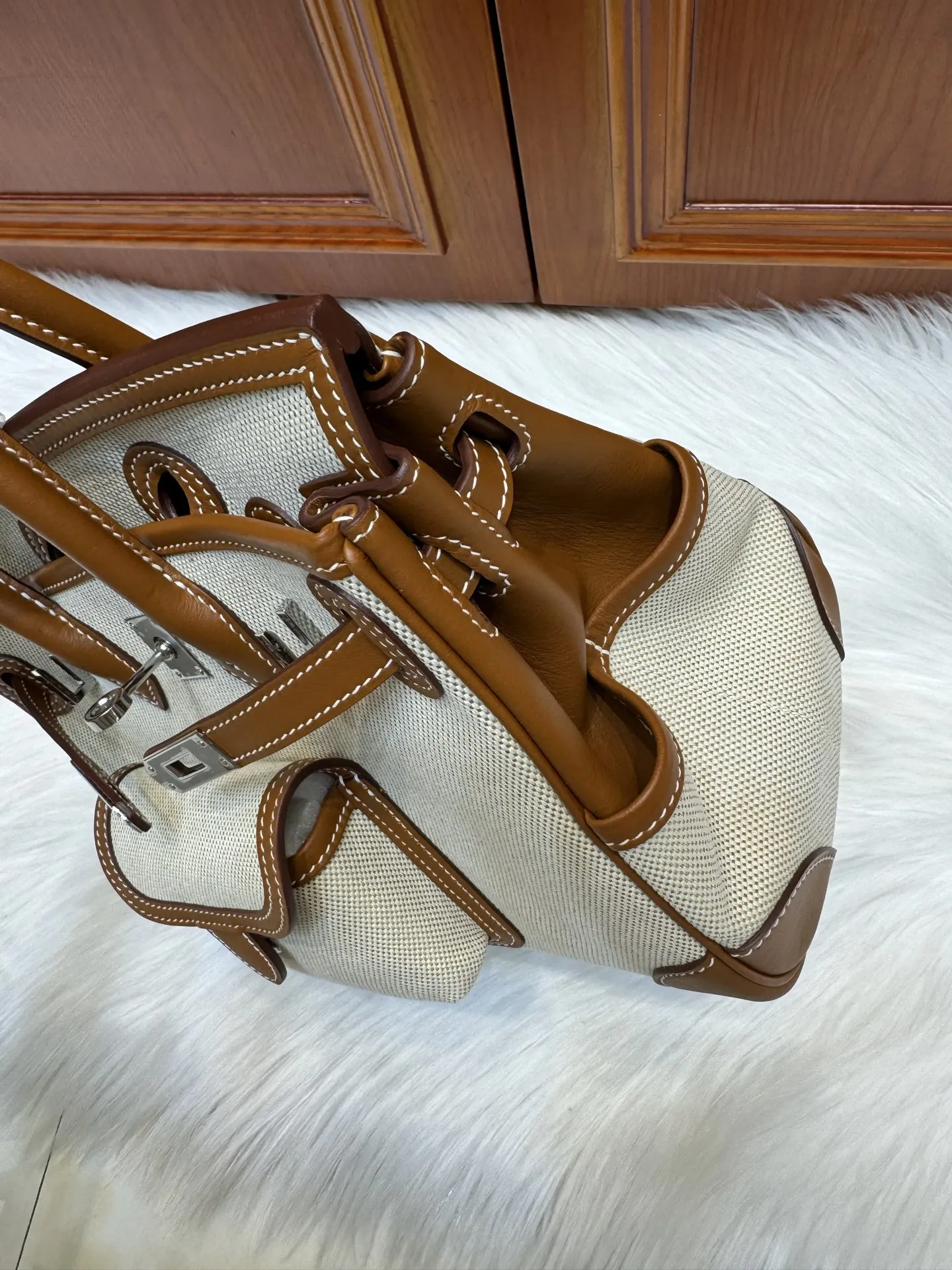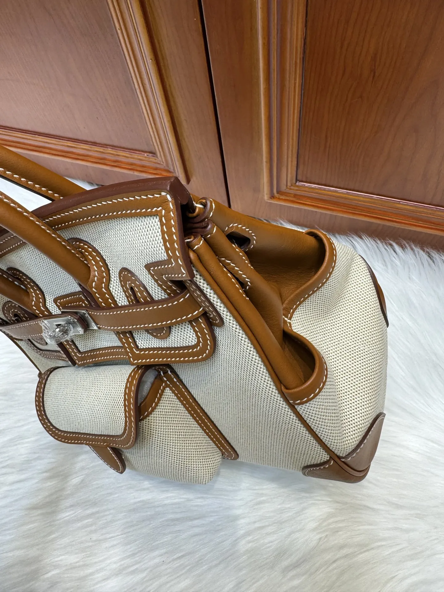 Birkin 25cm Cargo Gold Swift Craie with Silver Hardware