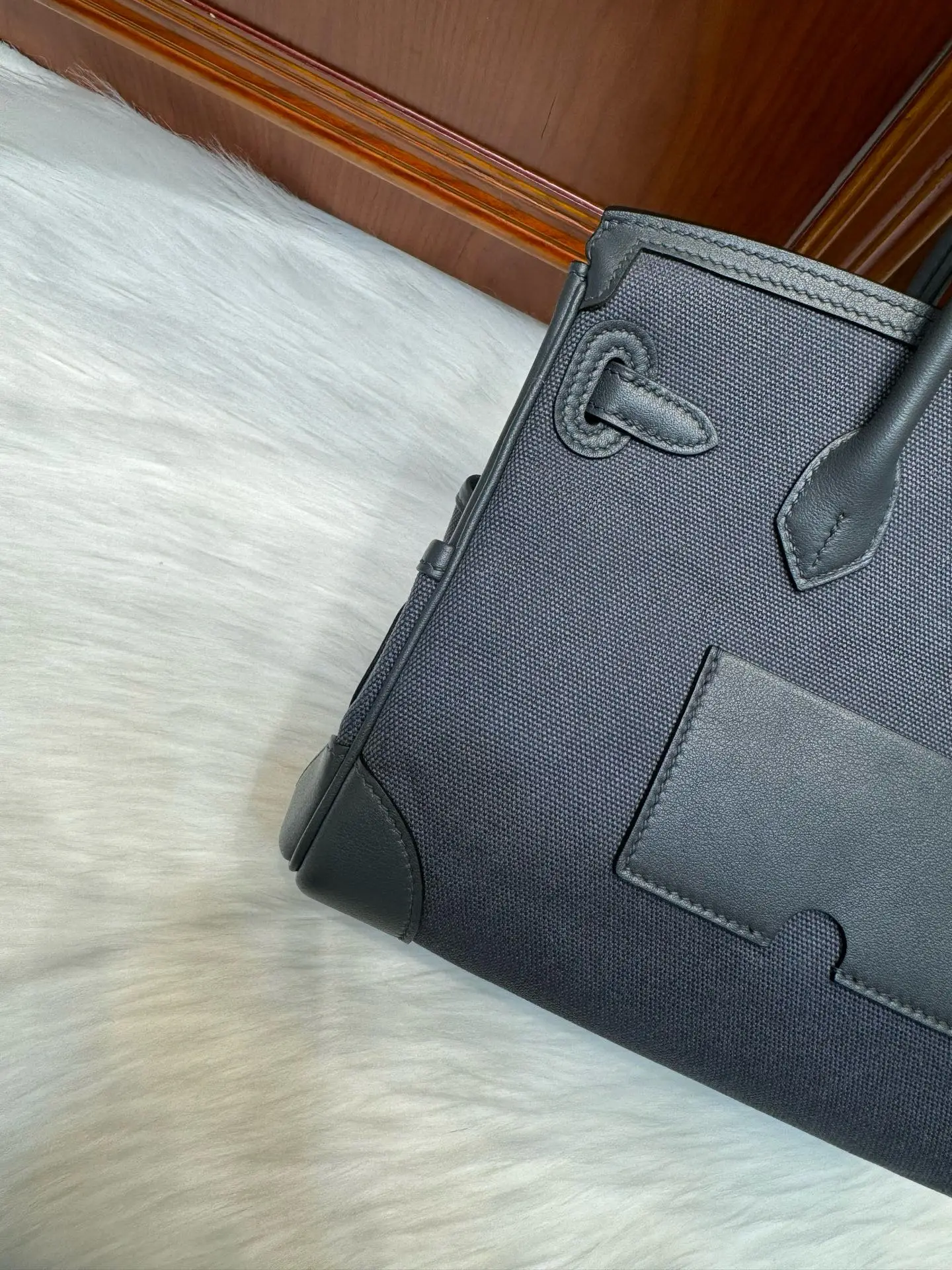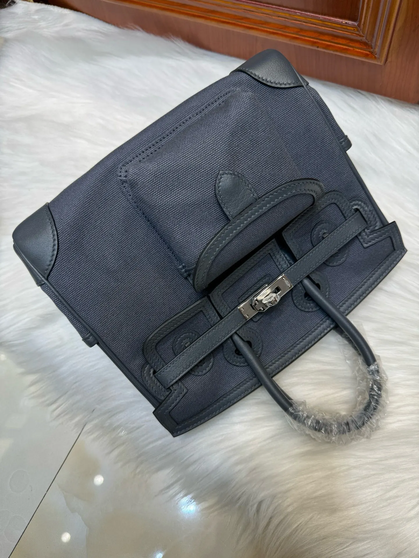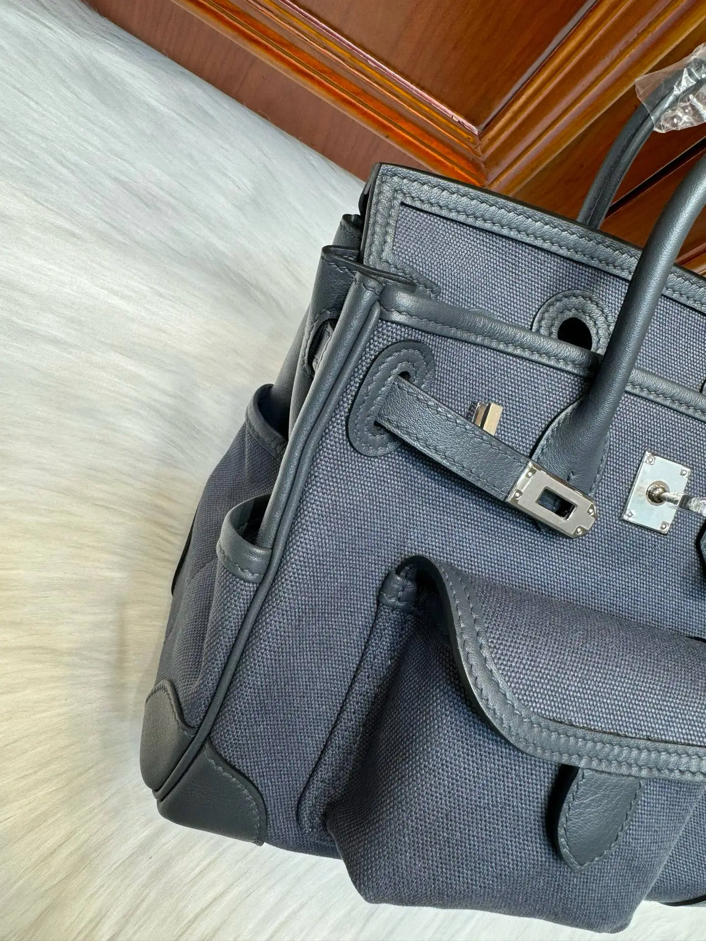 Birkin 25cm Cargo Midnight Blue Canvas with Swift Leather and Silver Hardware