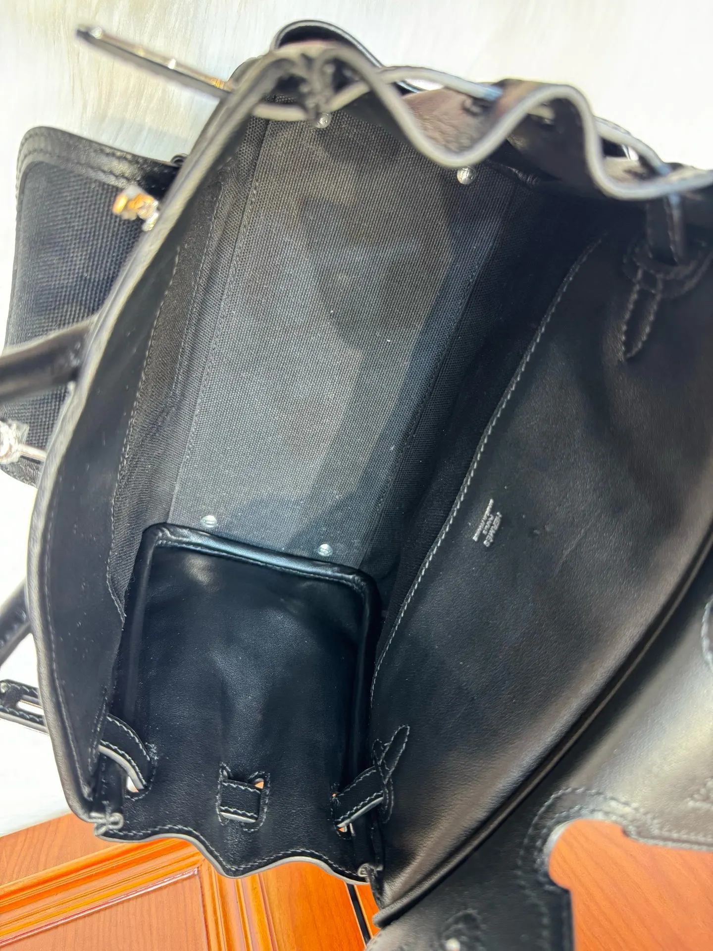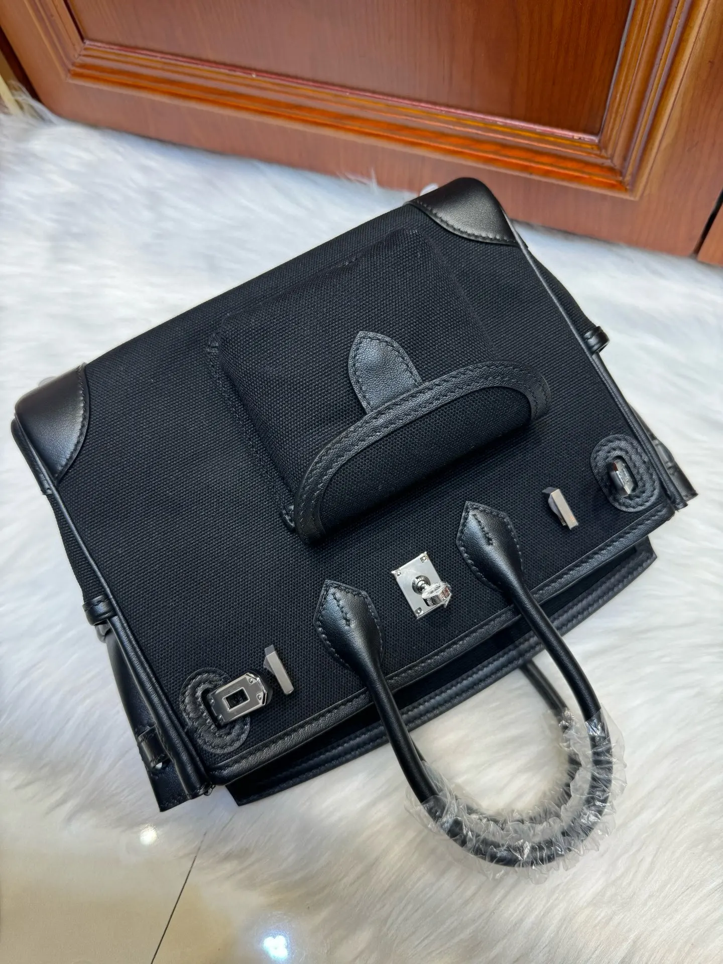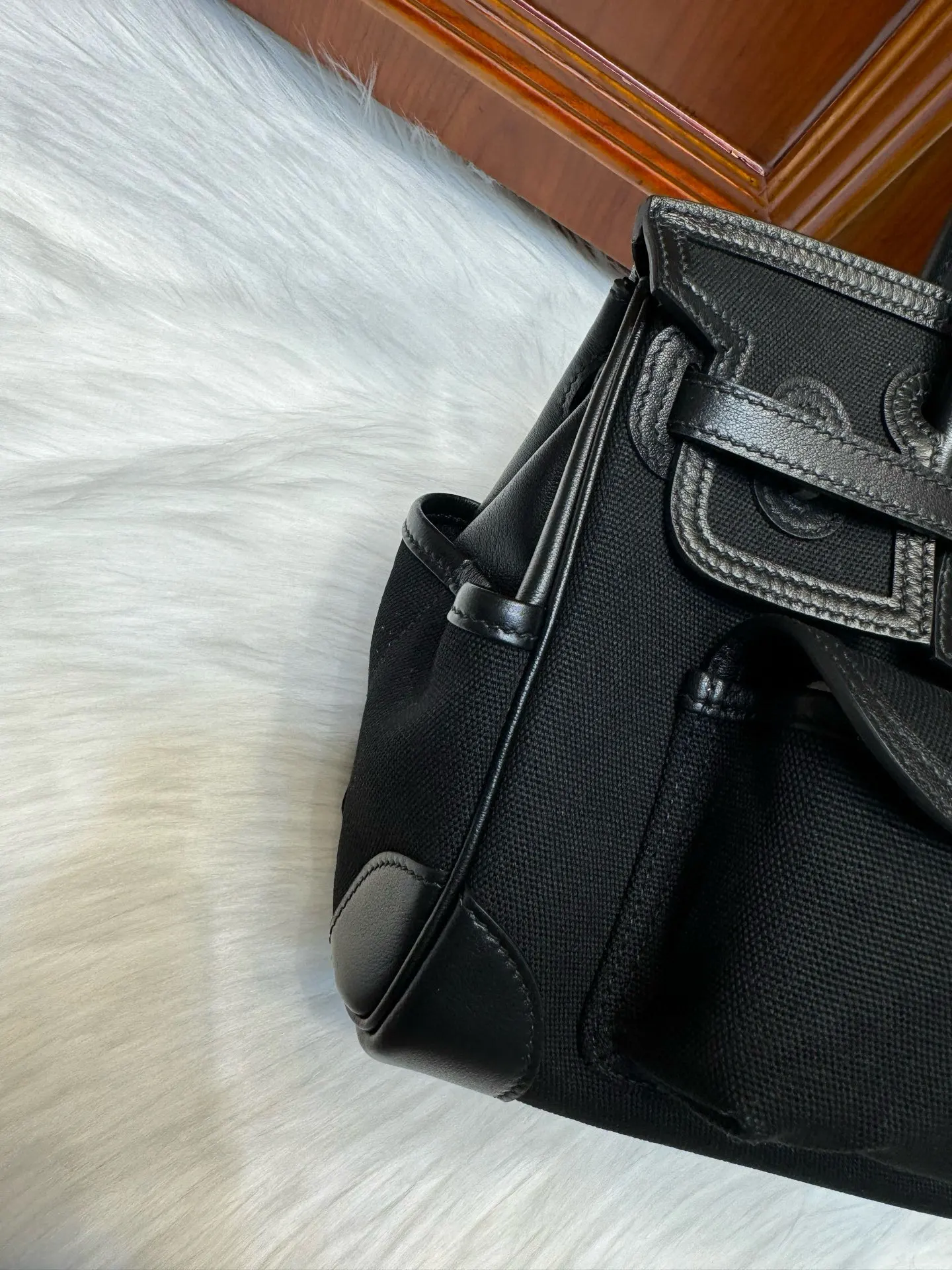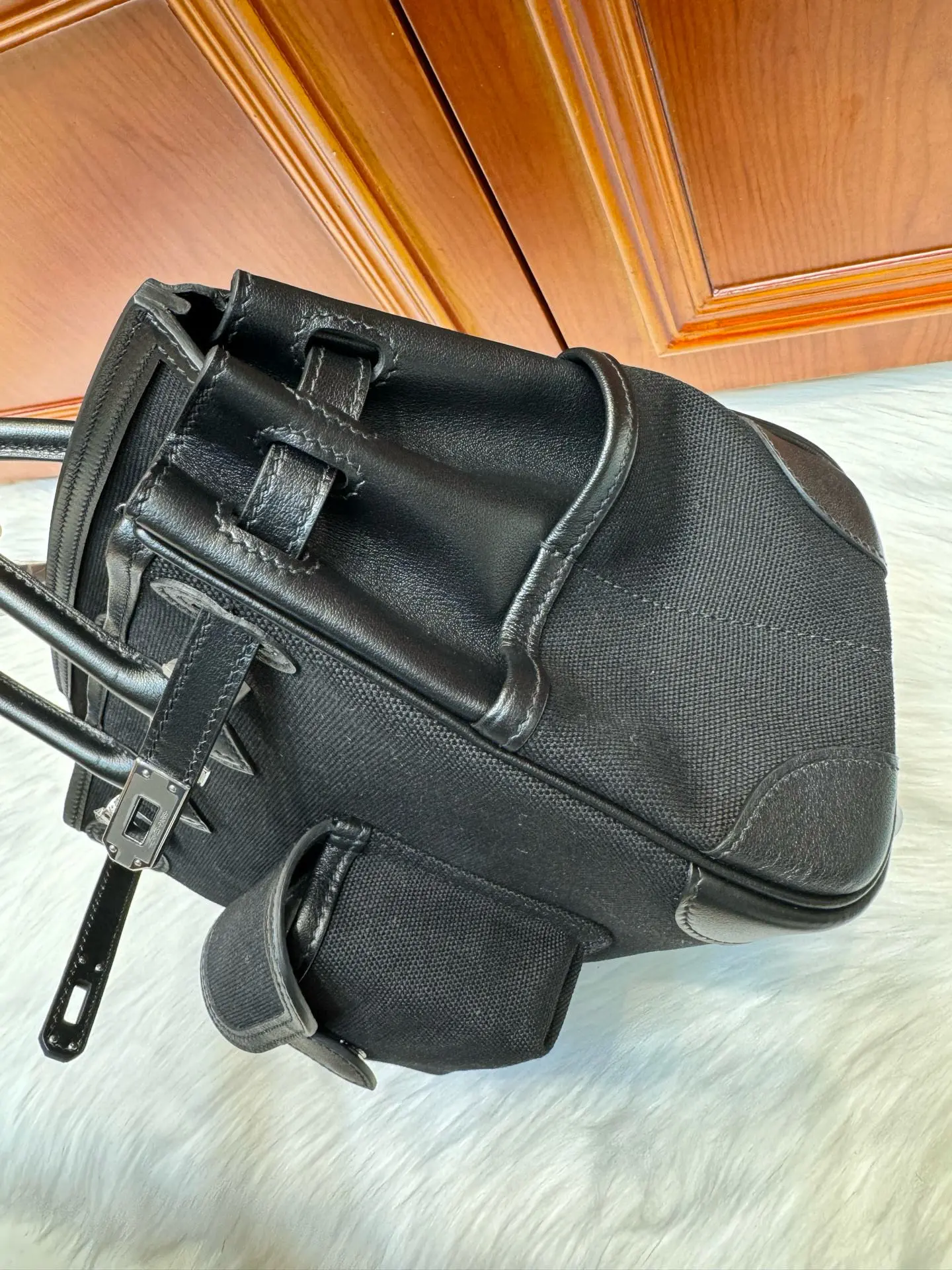 Birkin 25cm Cargo Black Canvas and Swift Leather with Silver Hardware