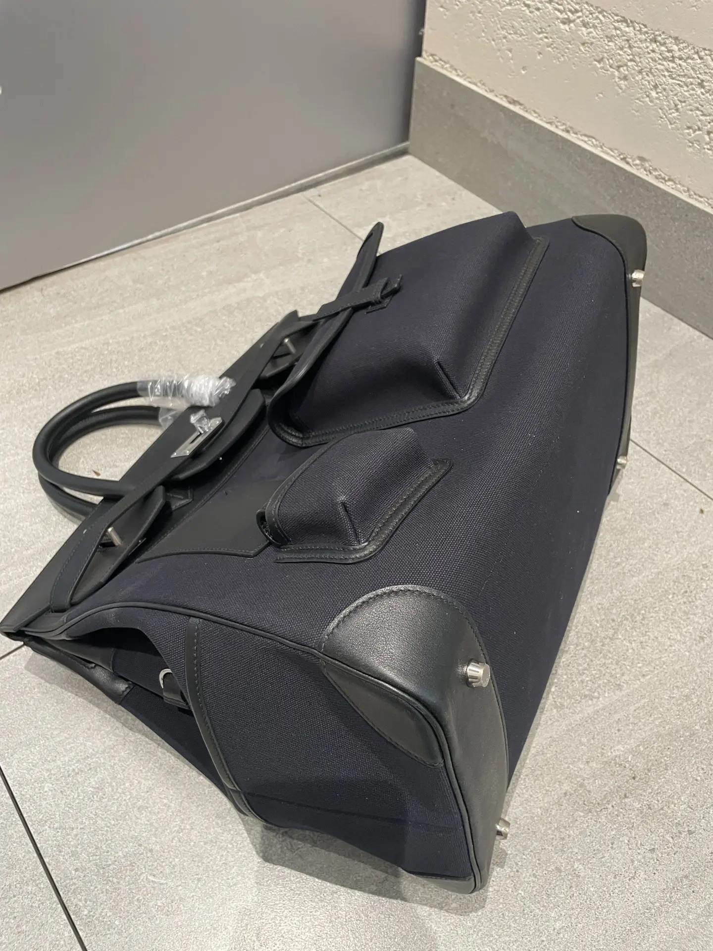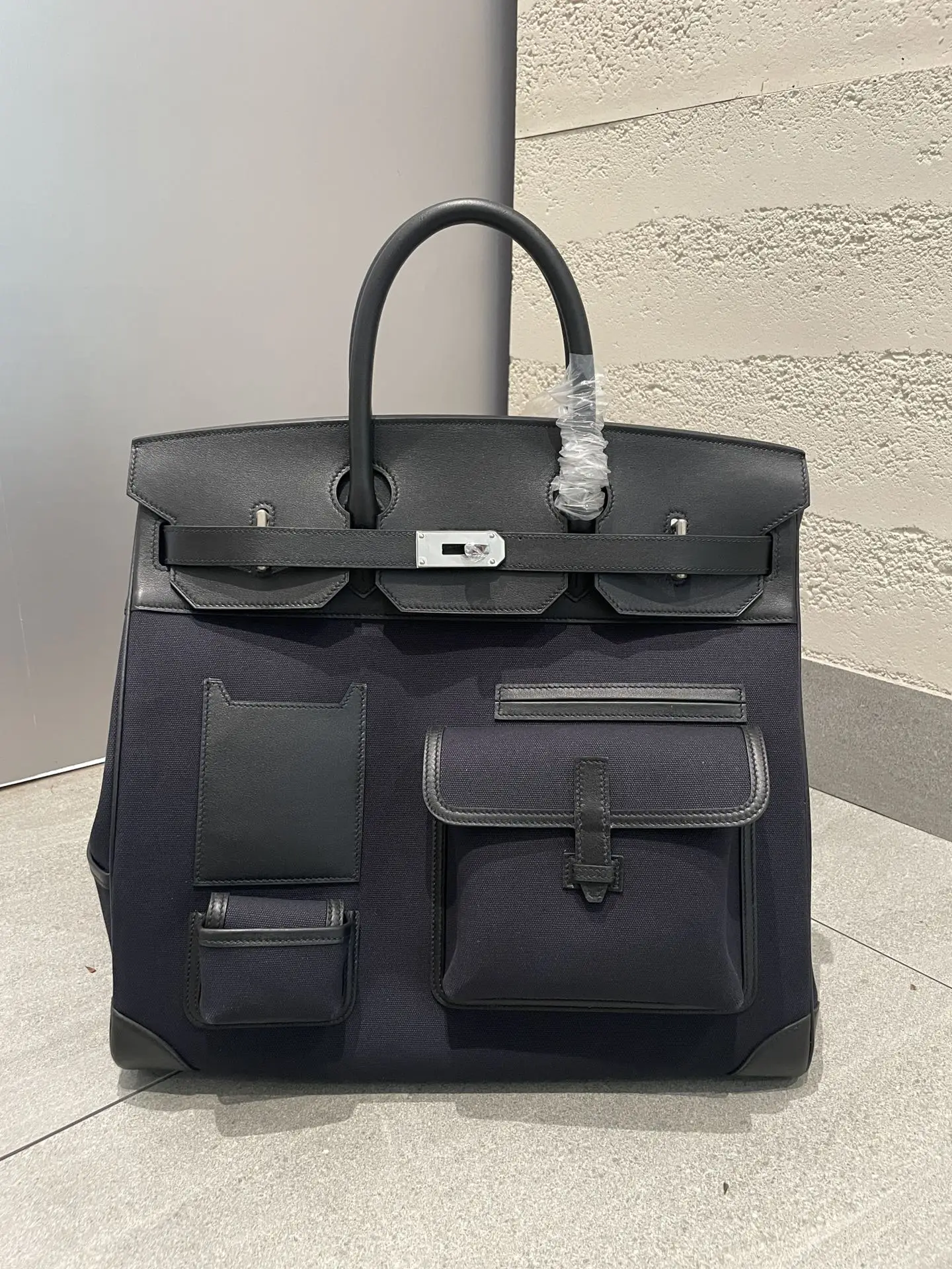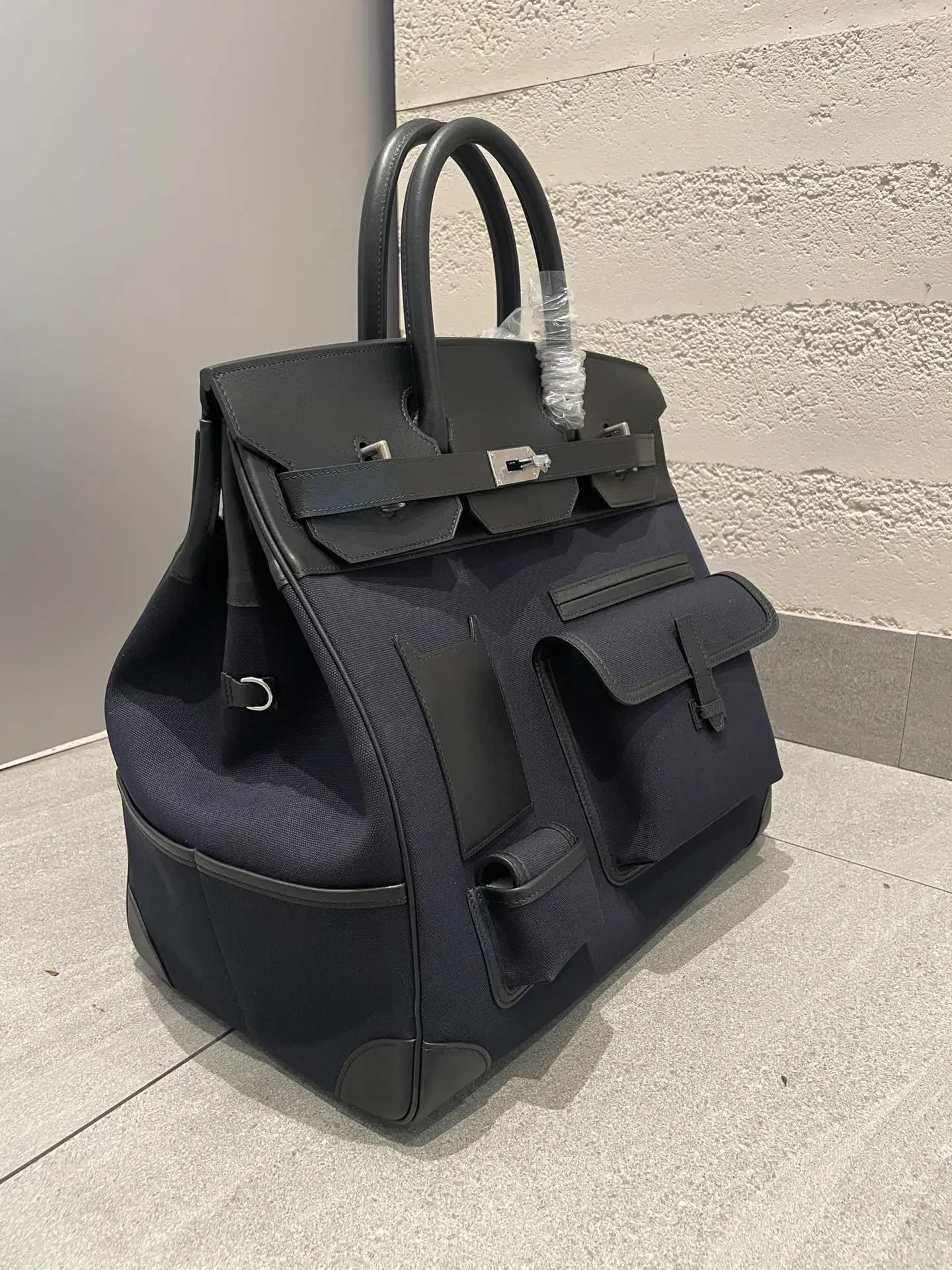 Hac 40 cargo, same wax thread stitching as in-store, all-steel hardware, delicate and smooth swift leather paired with rugged canvas texture, versatile and stylish. This bag will definitely get you noticed and is a breath of fresh air in the crowd. Black cargo 40 travel bag.