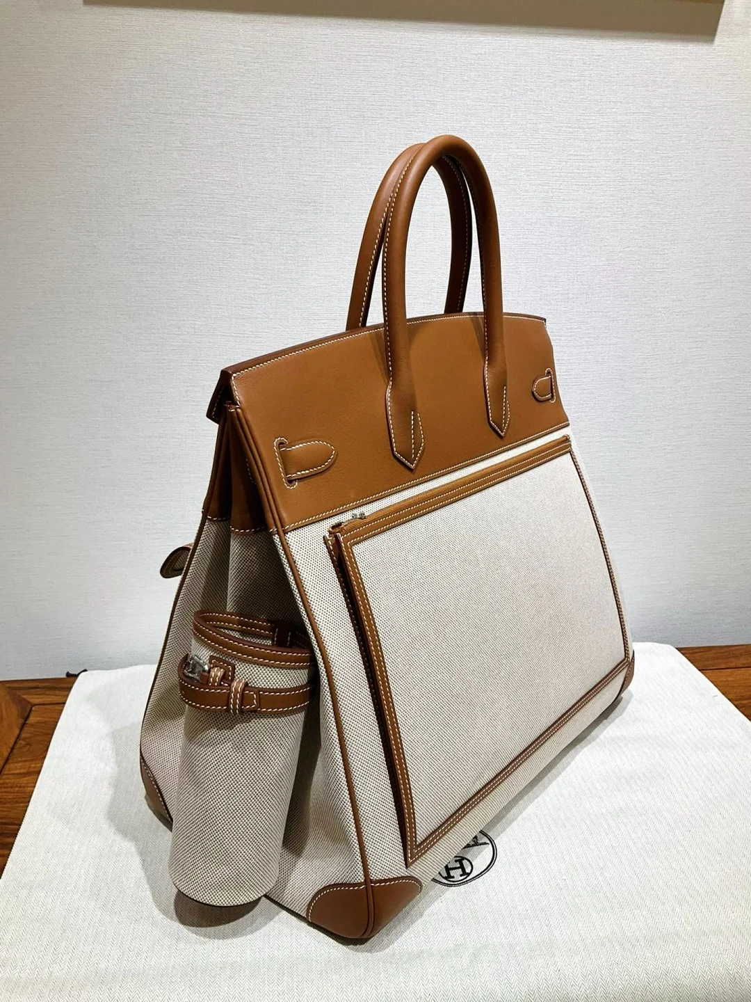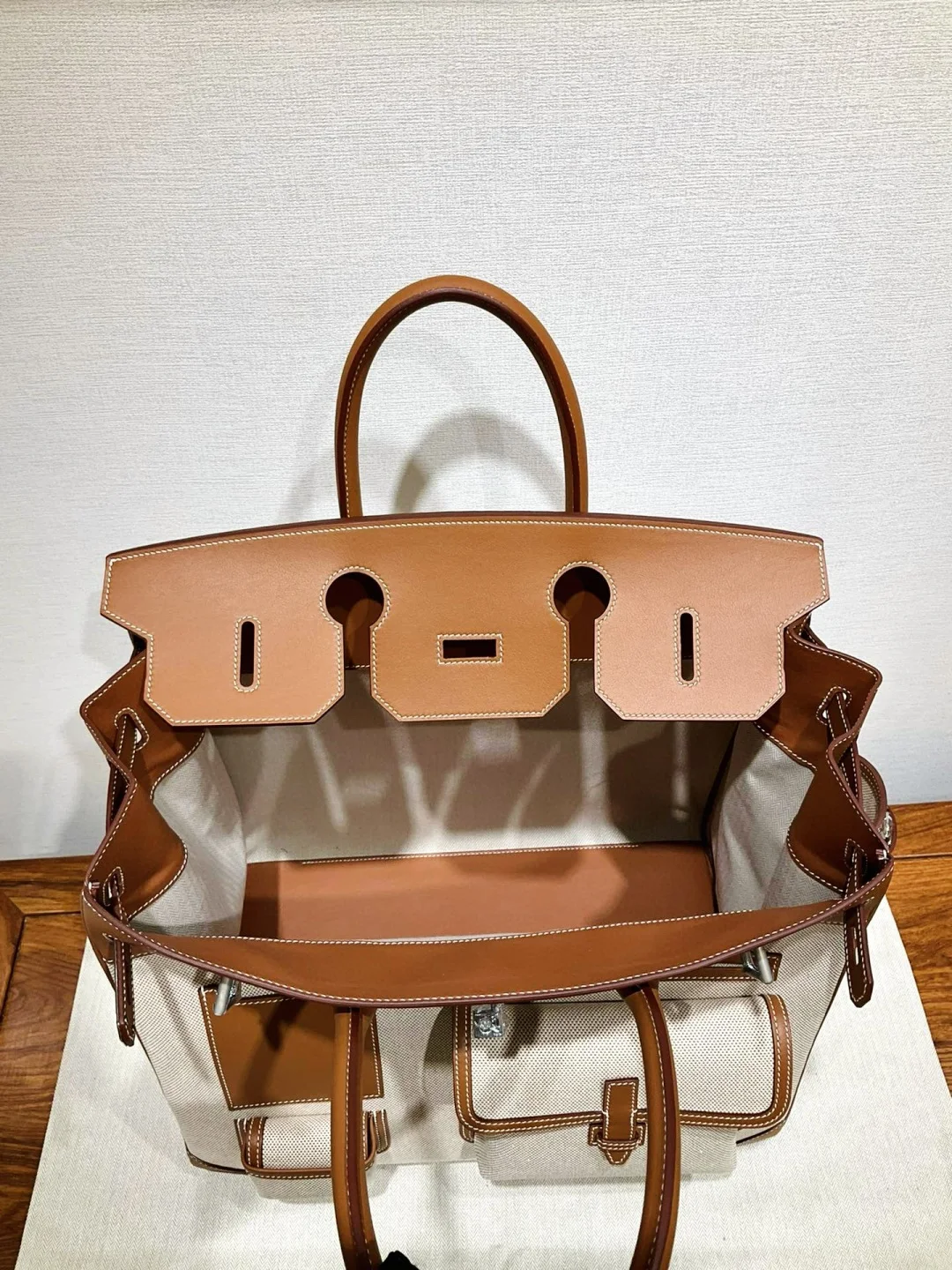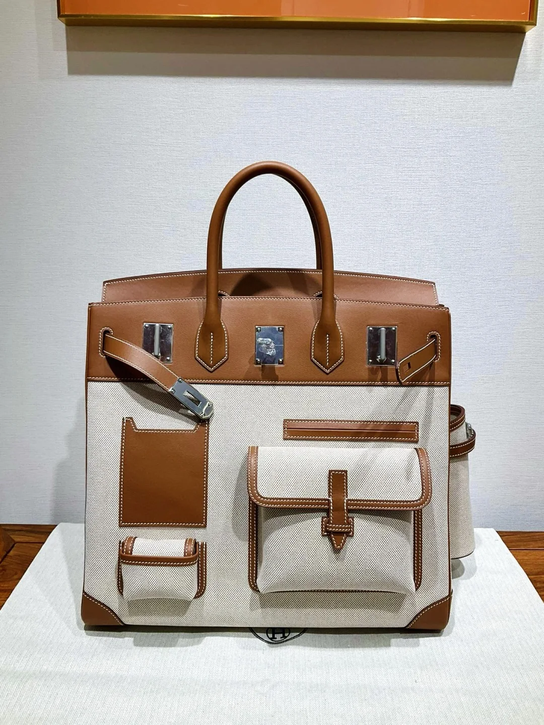 Hac 40 Cargo, golden brown, synchronous with the counter wax thread stitching, all-steel hardware, delicate and smooth Swift leather paired with rugged canvas texture, versatile an..