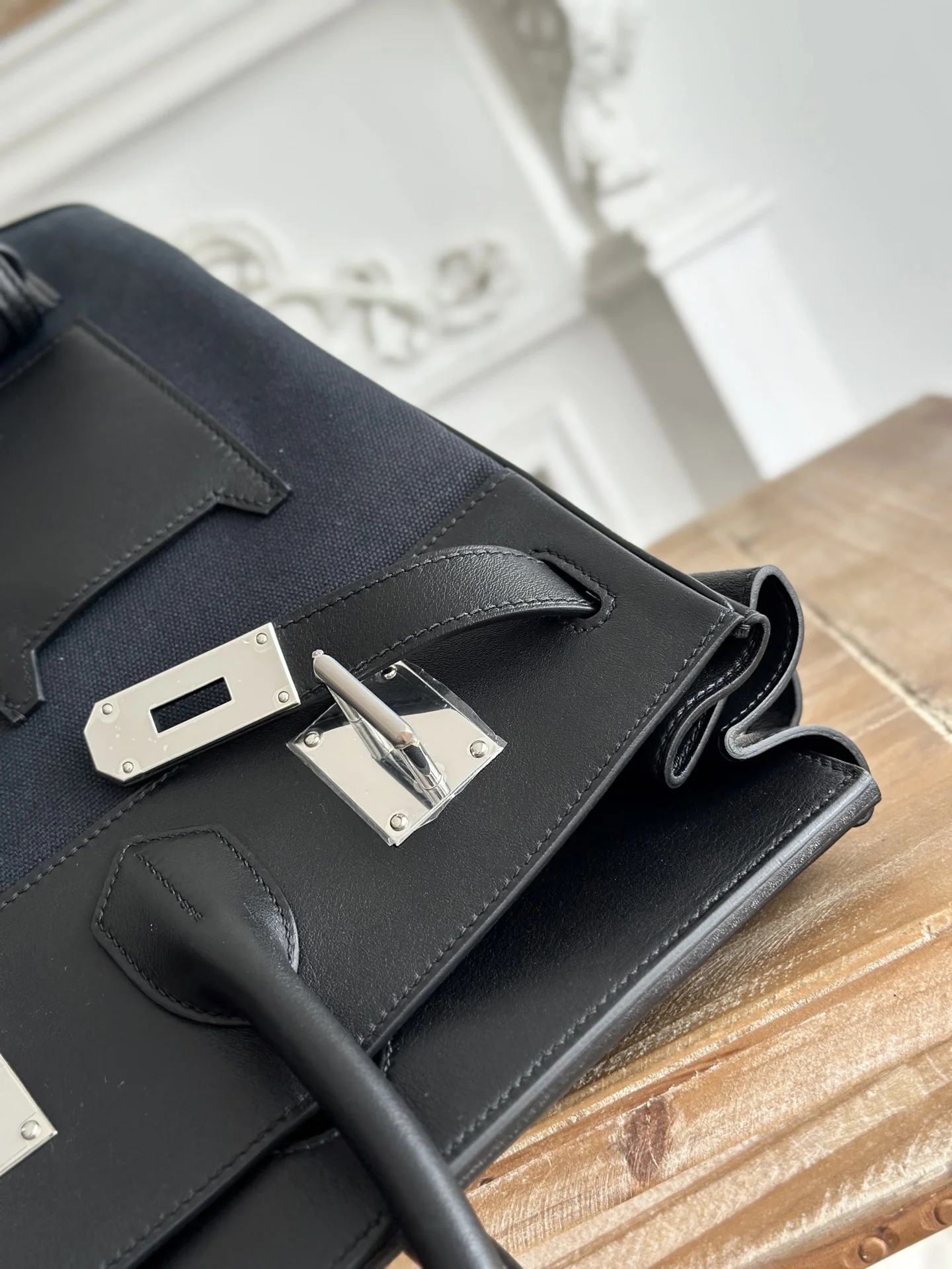 Hac 40 cargo, synched with authentic boutique wax thread stitching, all-steel hardware, delicate and smooth swift leather complementing the rugged canvas texture, versatile and aes..