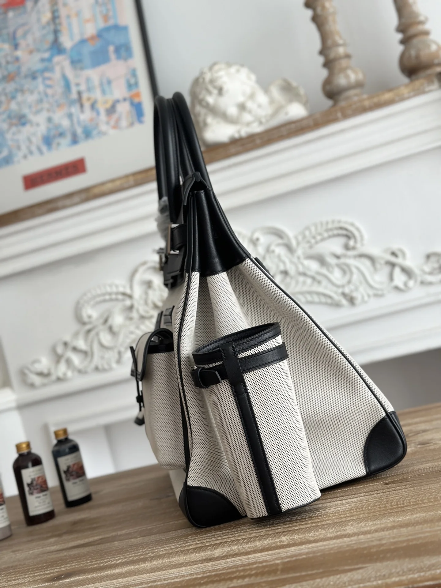 Hac 40 Cargo Black, synchronously crafted with counter-grade waxed thread stitching. All-steel hardware, smooth Swift leather paired with rugged canvas. Versatile and stylish, this..
