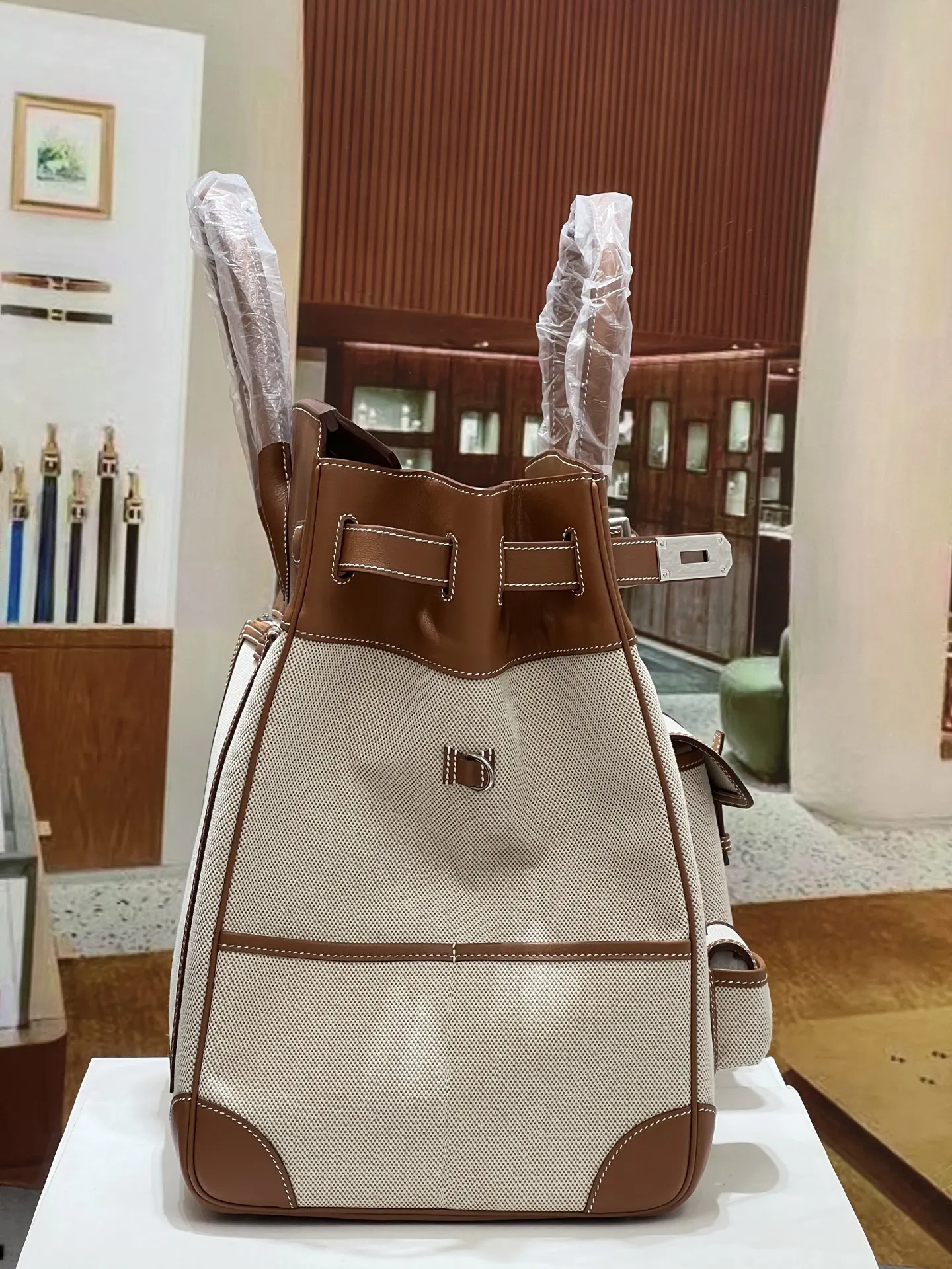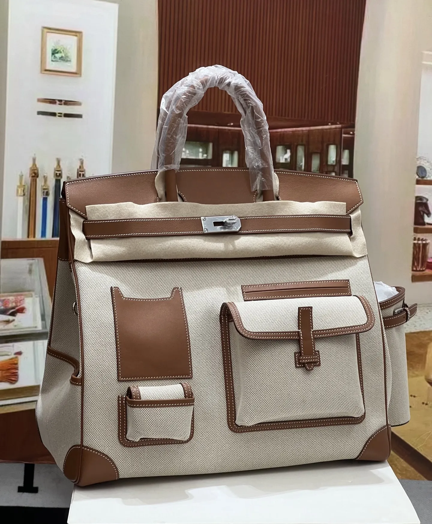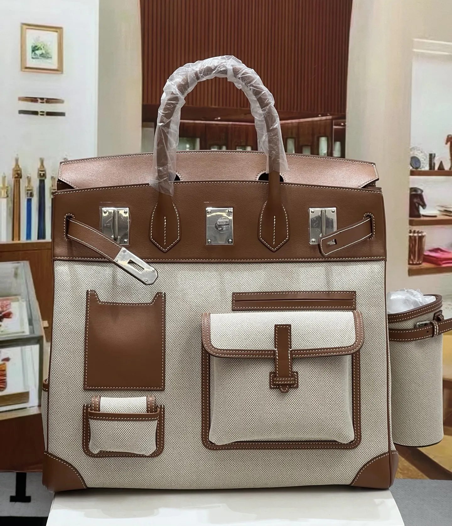Hac 40 cargo, crafted with wax thread stitching synchronized with boutique standards, features all-steel hardware, and a delicate, smooth Swift leather paired with rugged canvas. T..