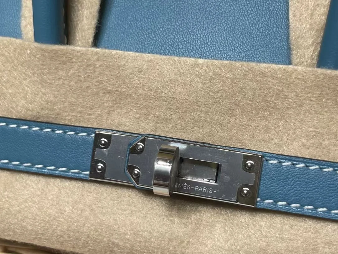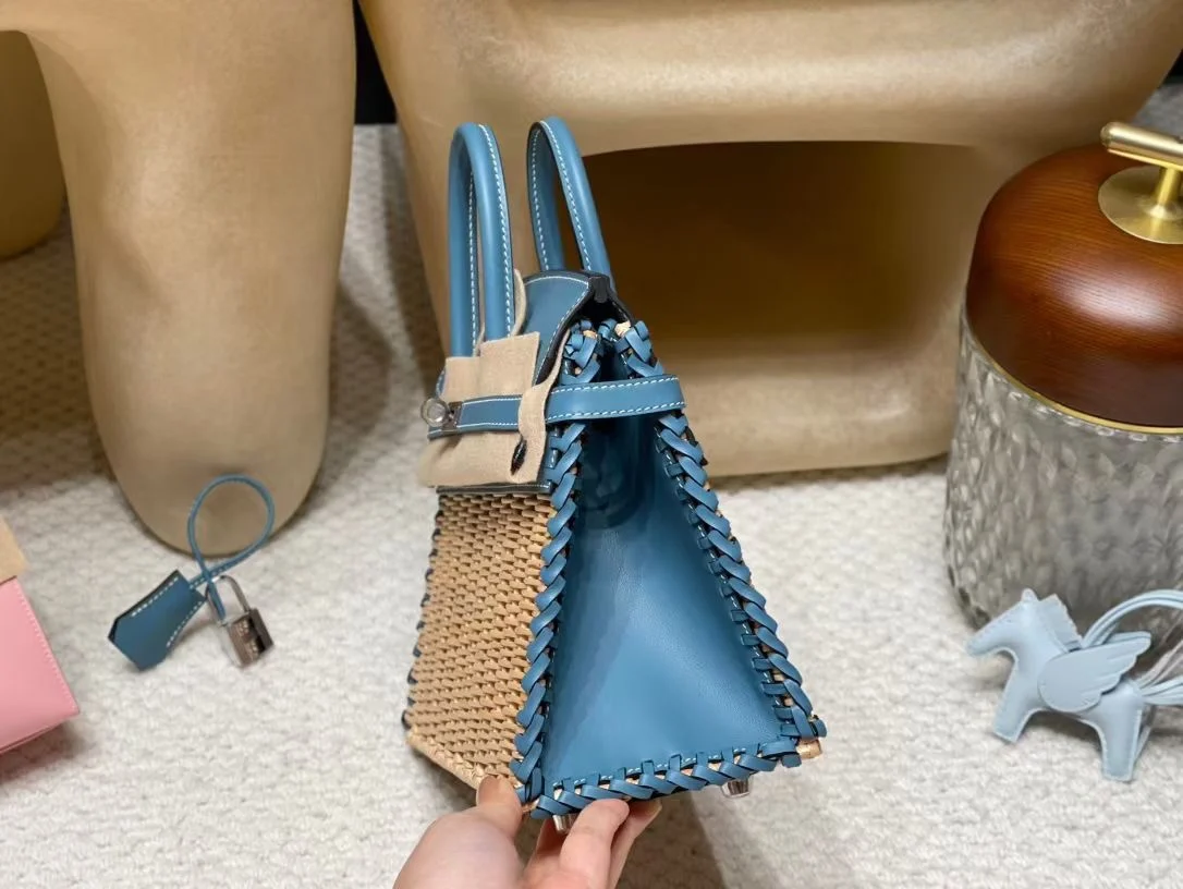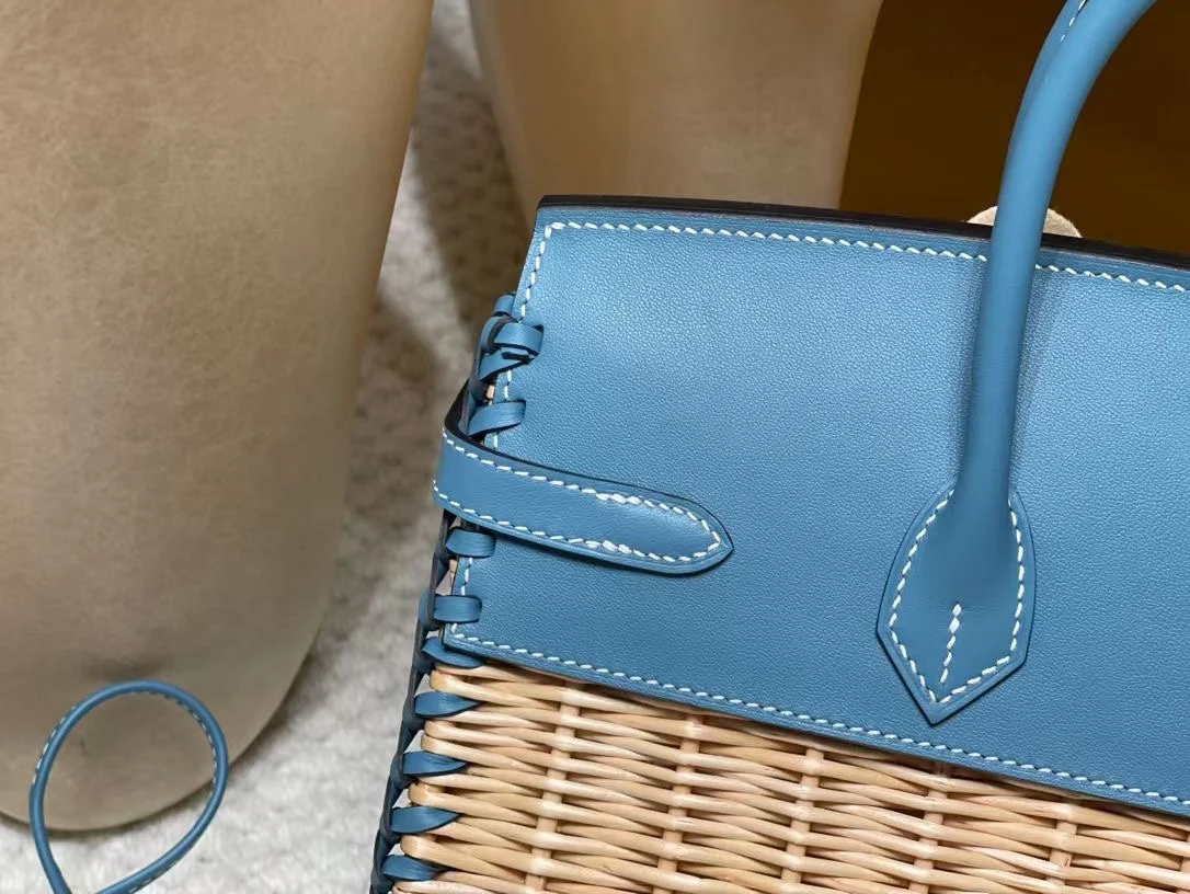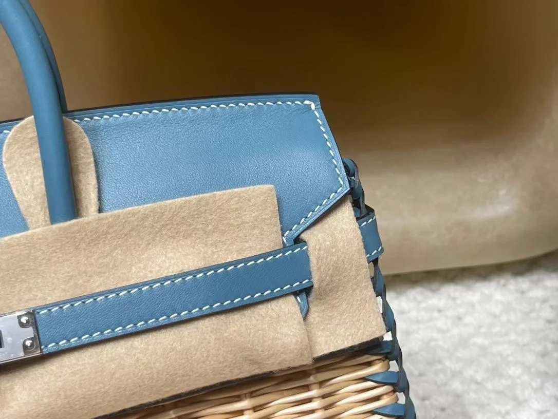 Birkin Picnic bag, the most luxurious picnic accessory, this wicker bag is instantly captivating. Compared to bags made of other materials, this wicker one has a more relaxed vacation feel. It not only exudes a fashionable vibe but also a unique charm! 75 Denim Blue with Silver Hardware.