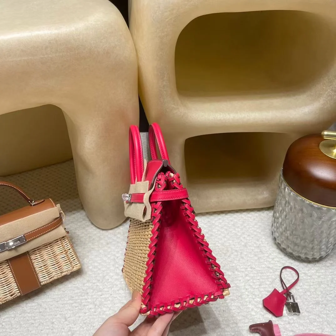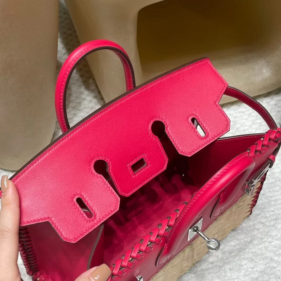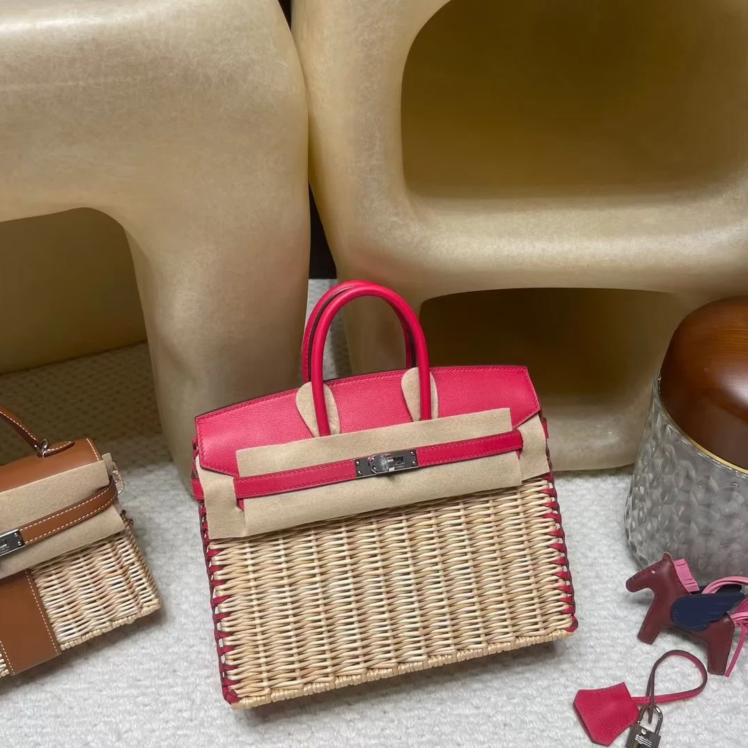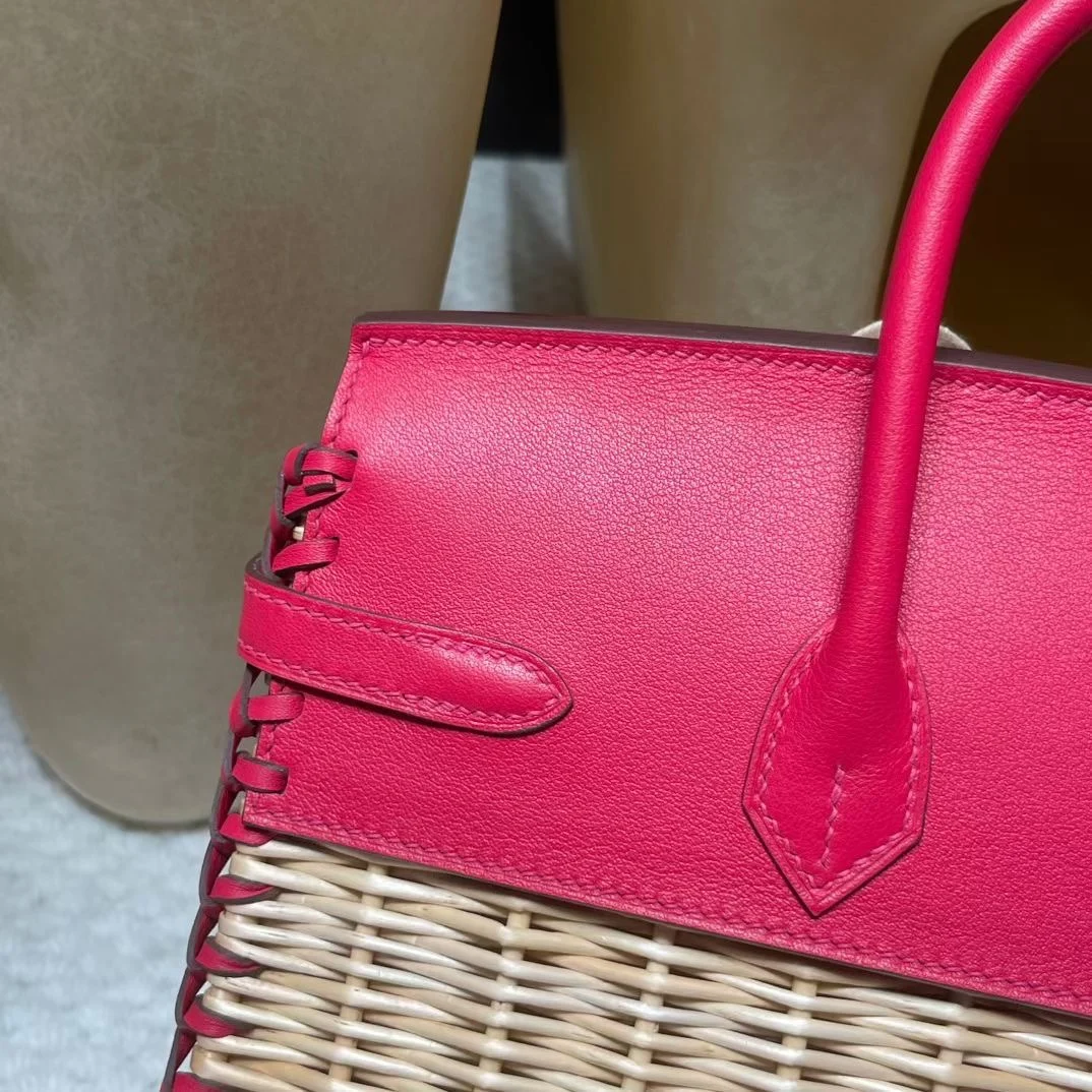 Birkin Picnic bag, the most luxurious picnic equipment, an instantly captivating wicker bag. Compared to bags made of other materials, this wicker design exudes a more relaxed vacation vibe. It not only reveals a fashionable flair but also a unique charm! 90 Raspberry with Silver Hardware.