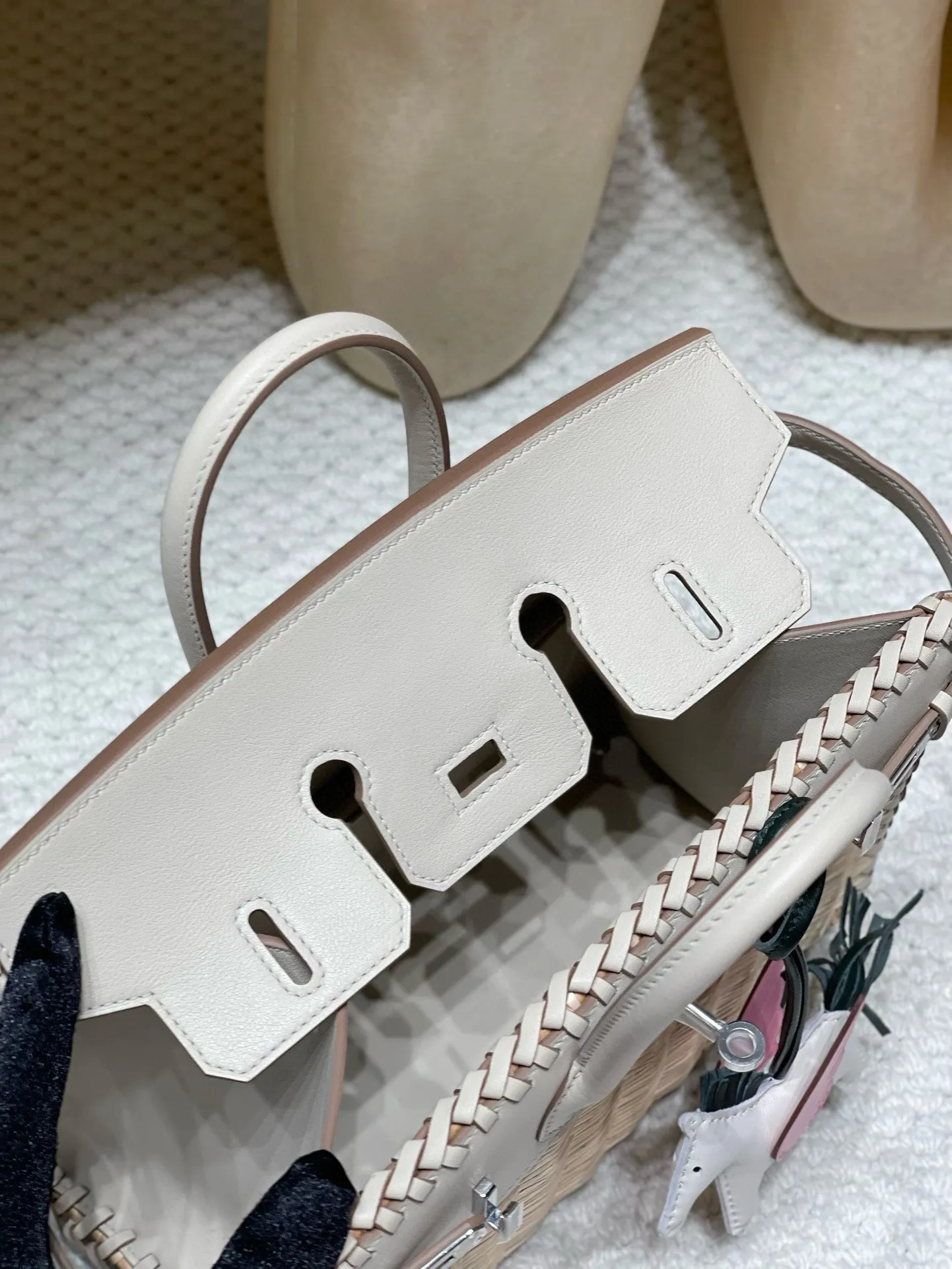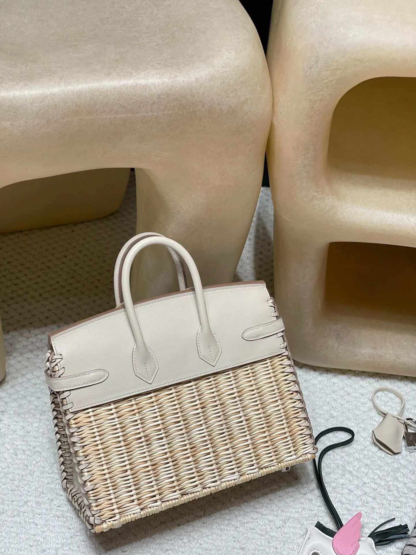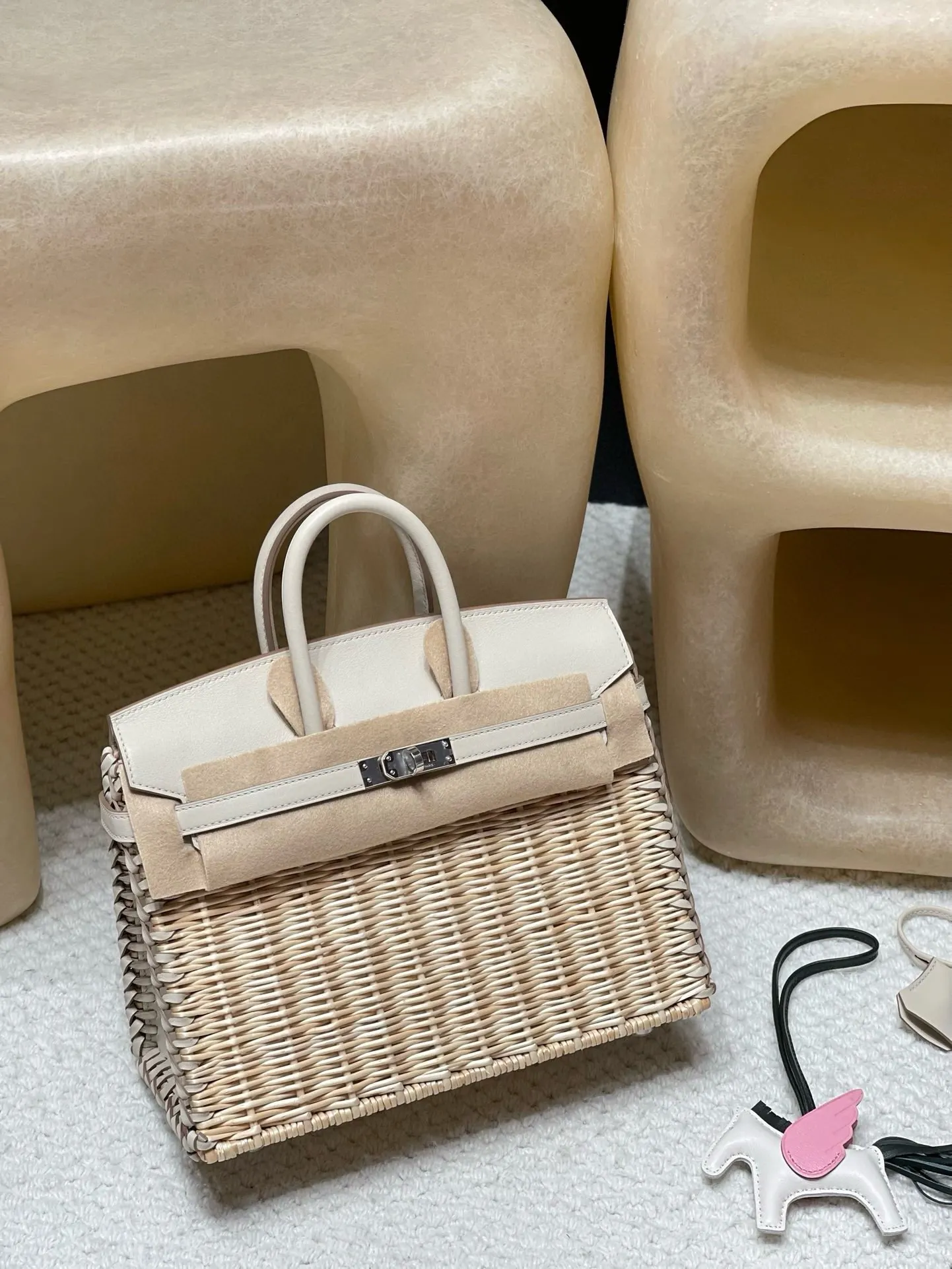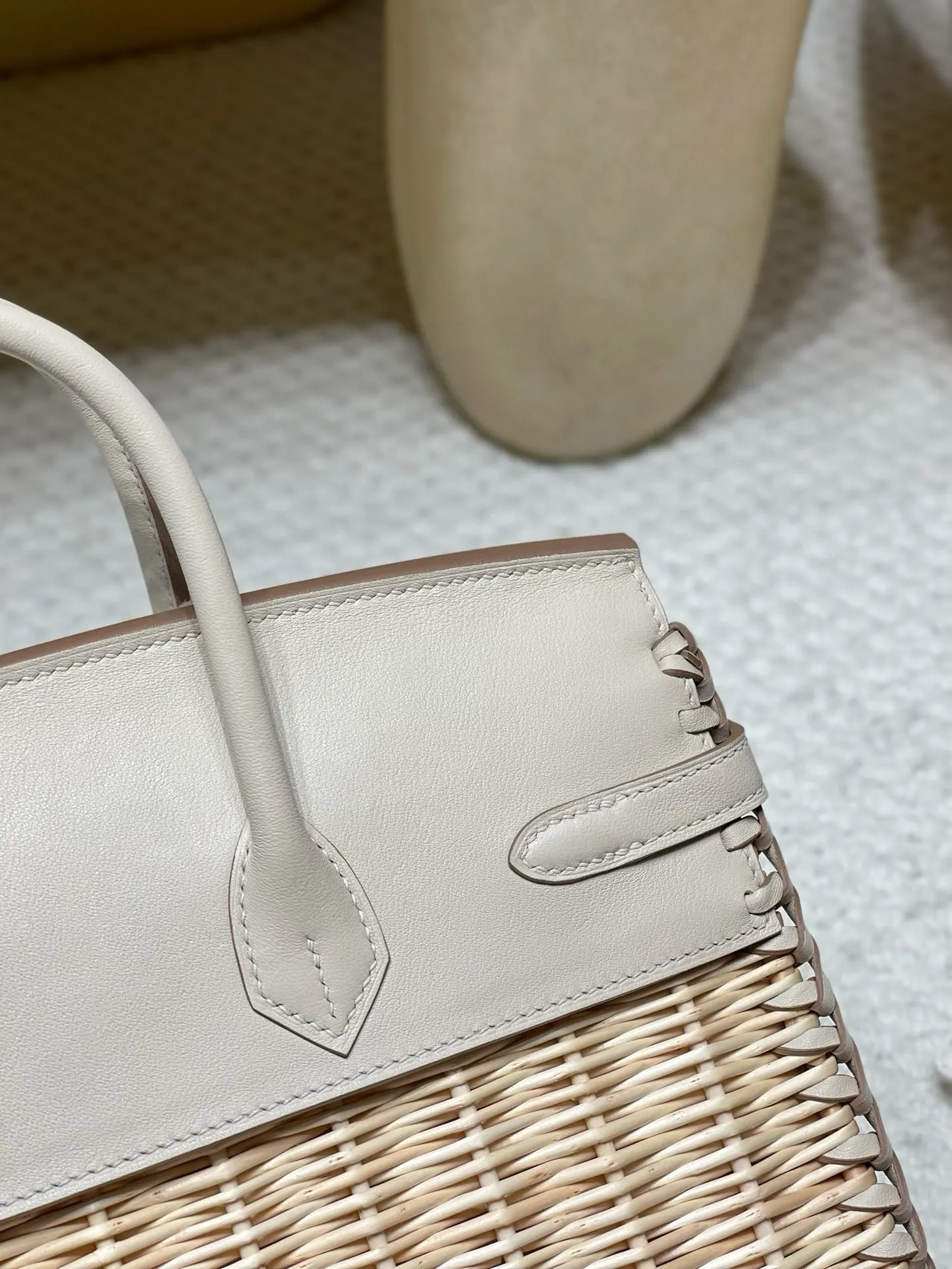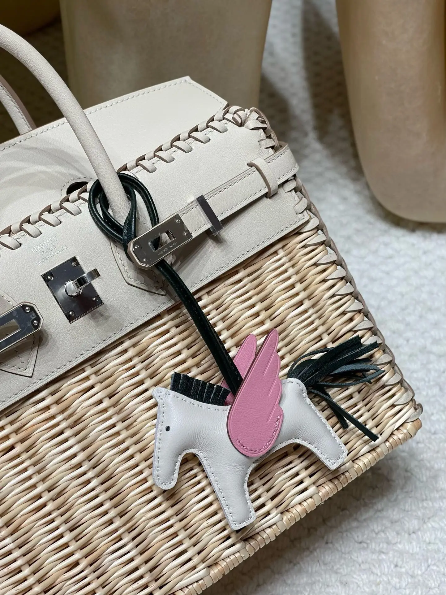 Birkin Picnic Bag, the most luxurious picnic accessory, this wicker bag is love at first sight. Compared to bags made of other materials, this wicker one has a more relaxed vacation feel. It not only exudes a fashionable vibe but also a unique charm! Milkshake White with Silver Hardware.