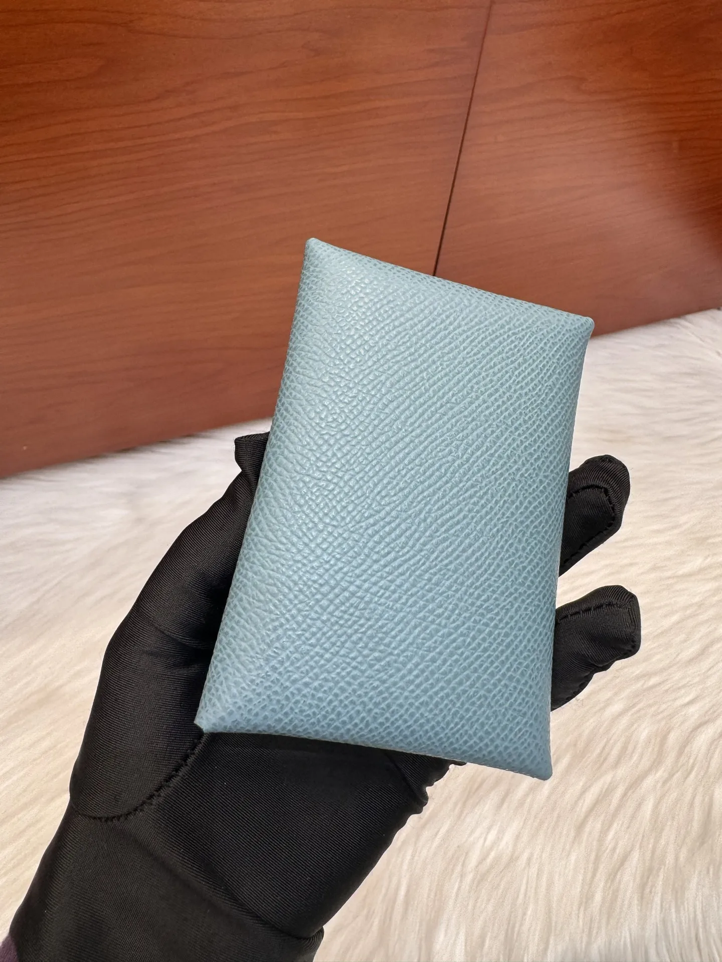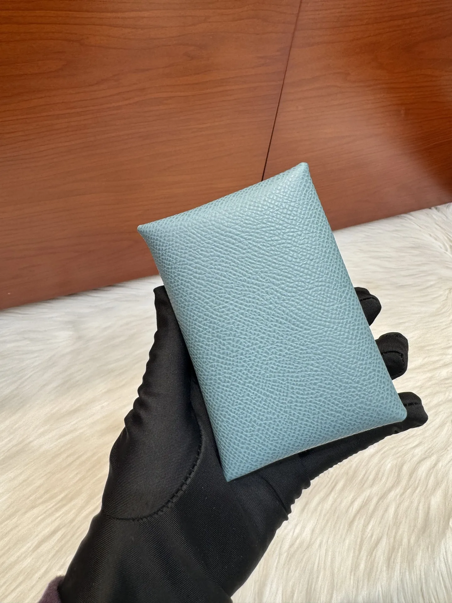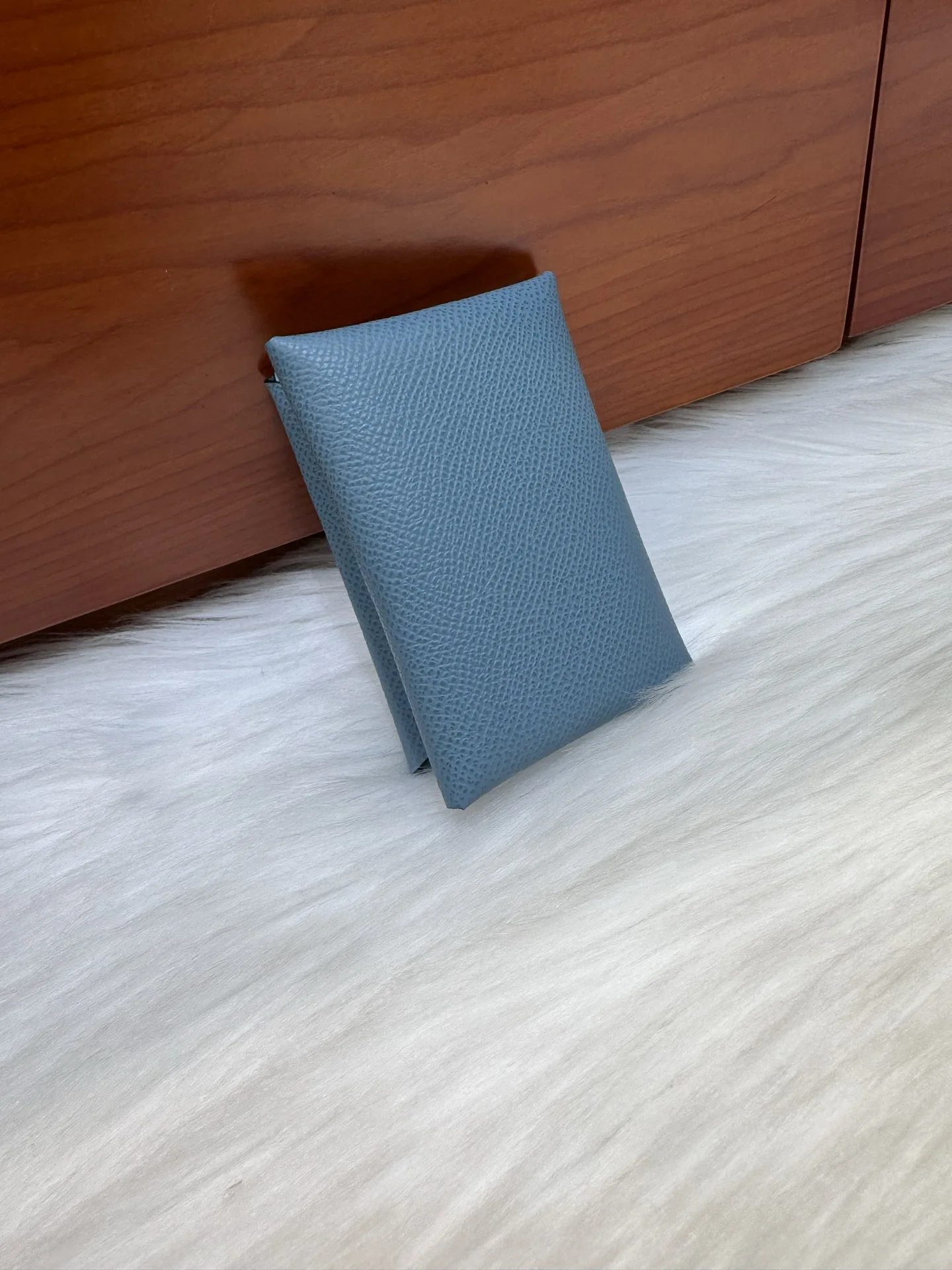 Calvi Duo card holder, Epsom leather, Bleu Indigo, silver hardware
