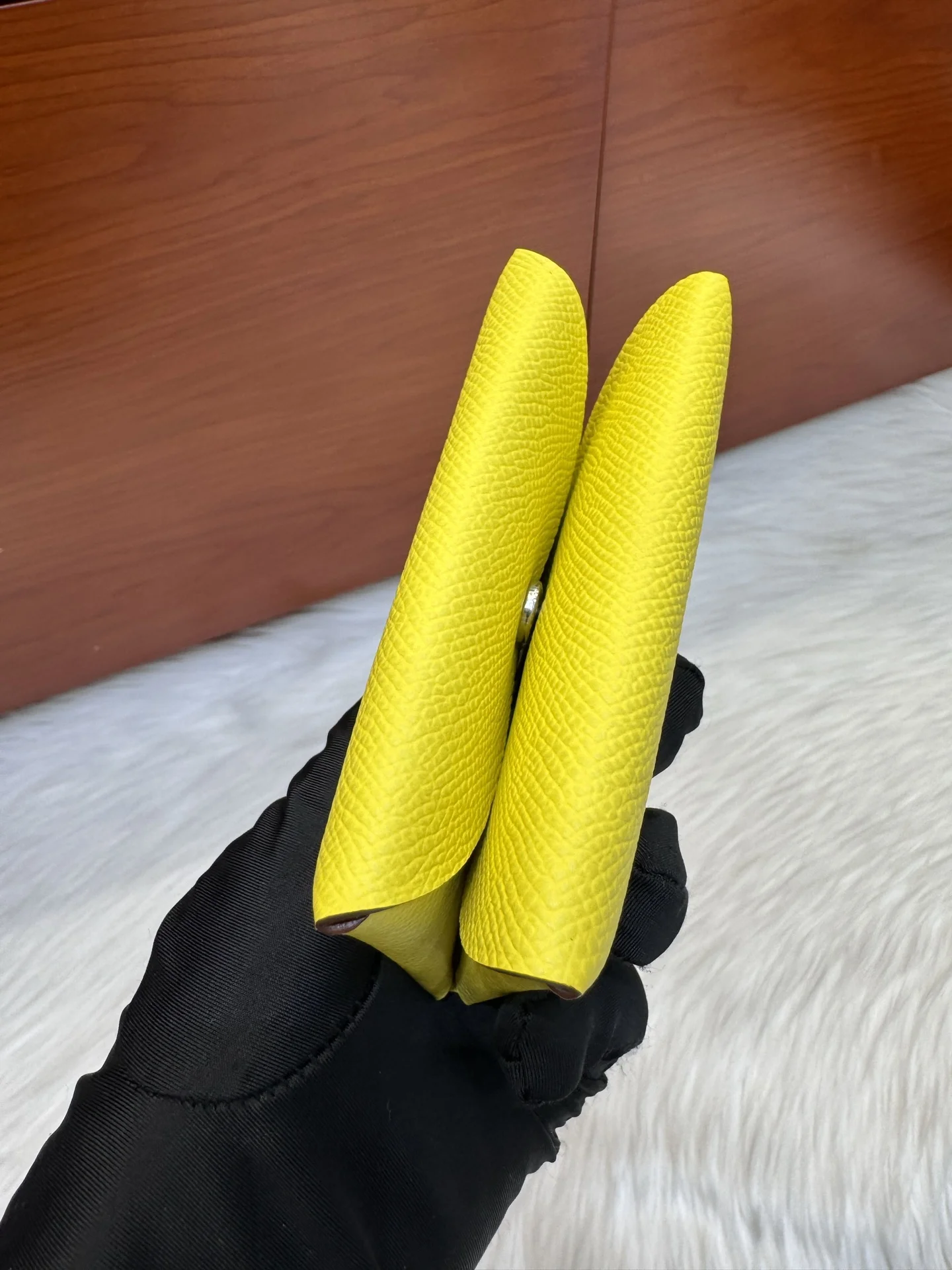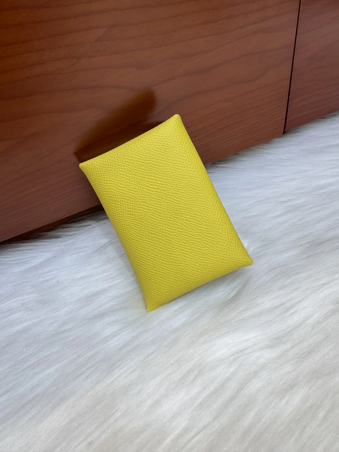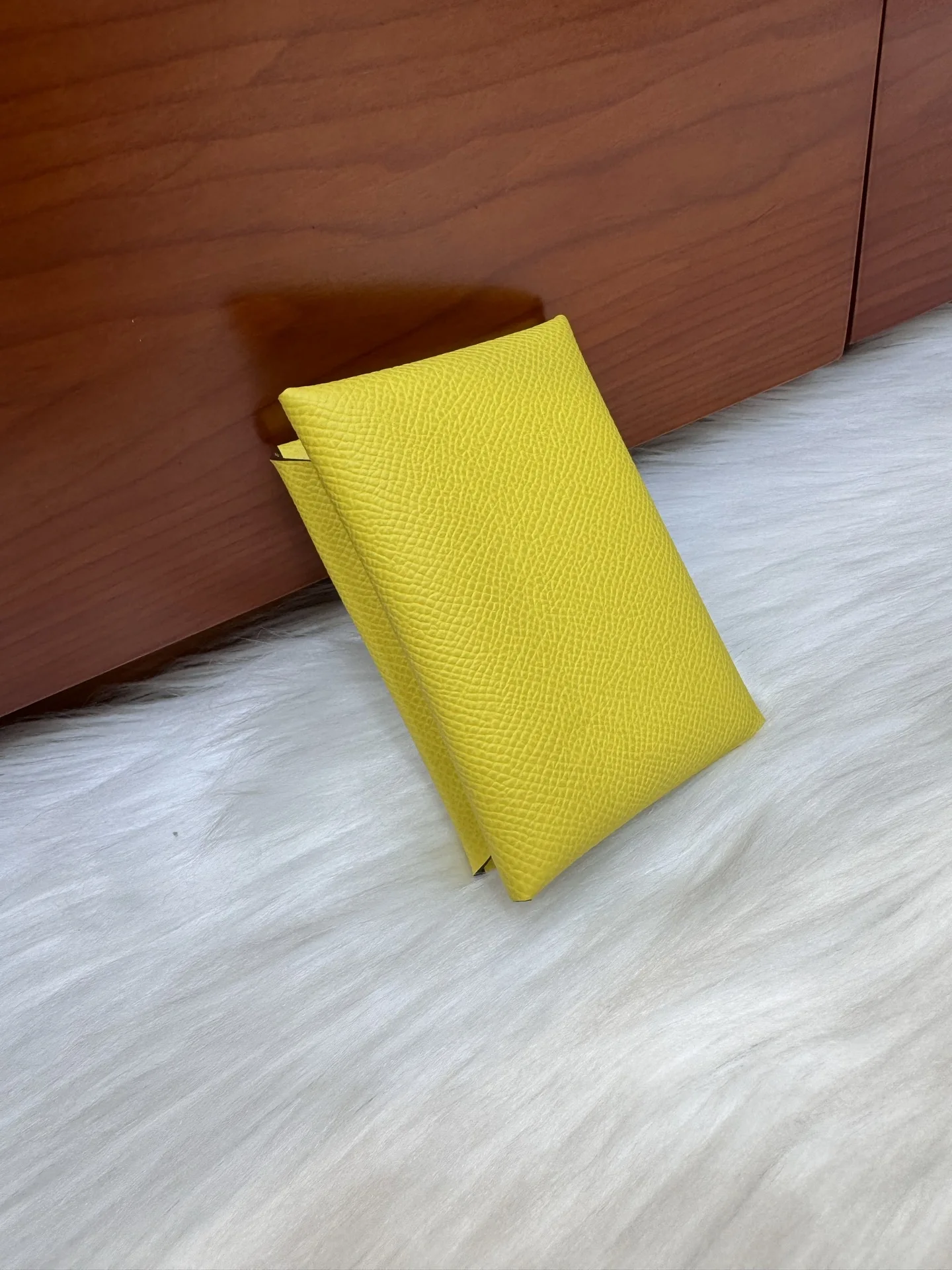Calvi Duo card holder, Epsom leather, jaune citron, silver hardware