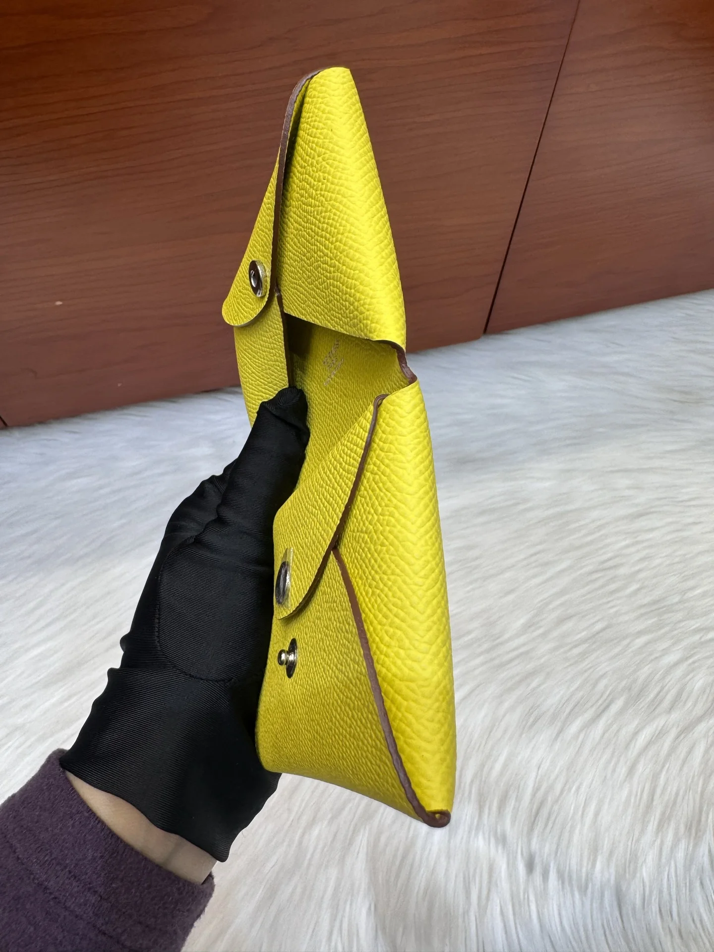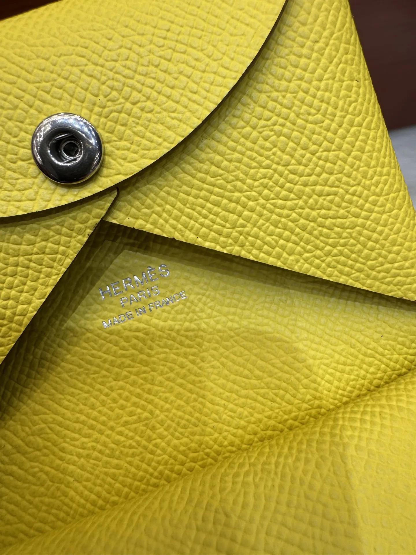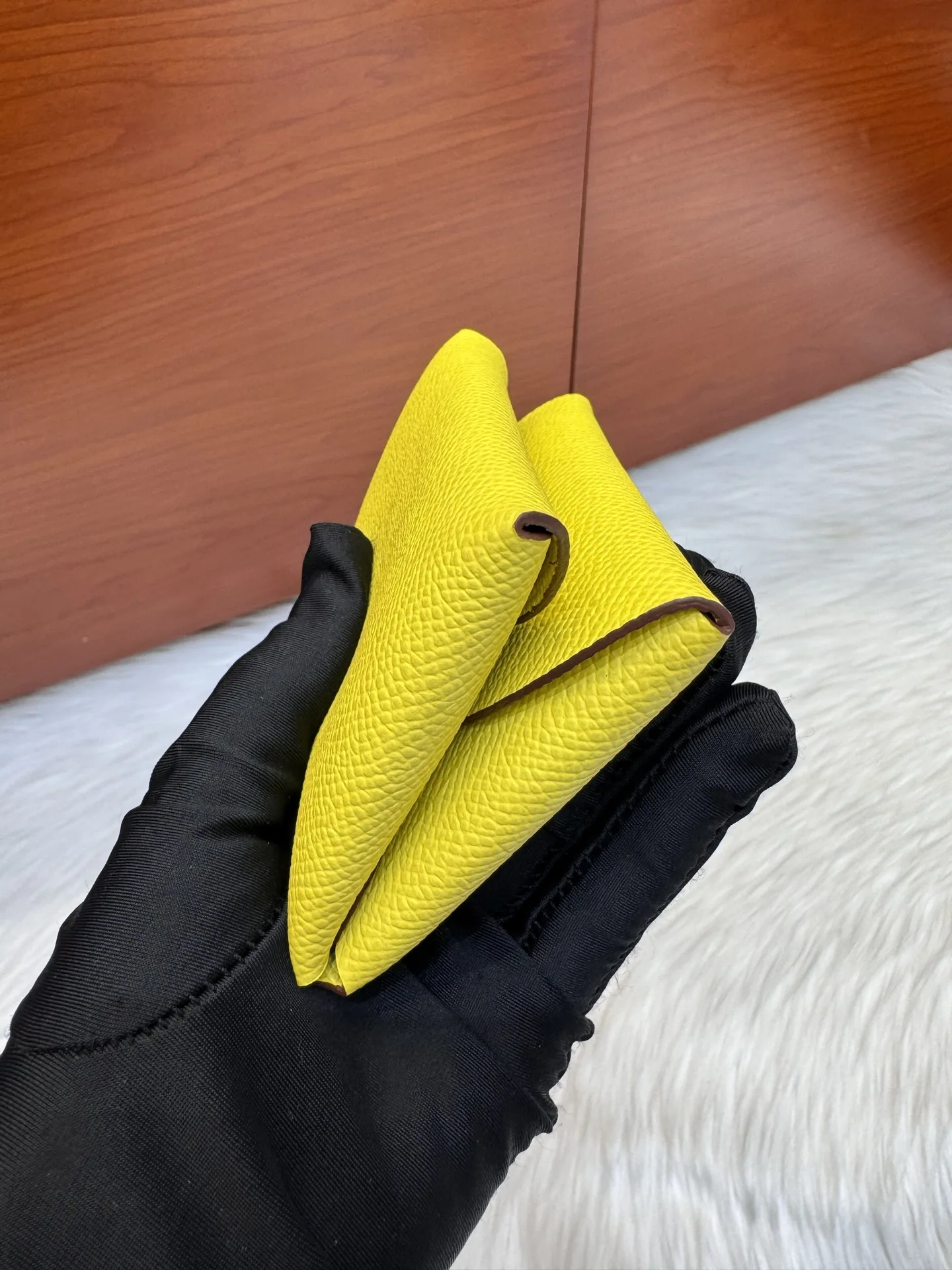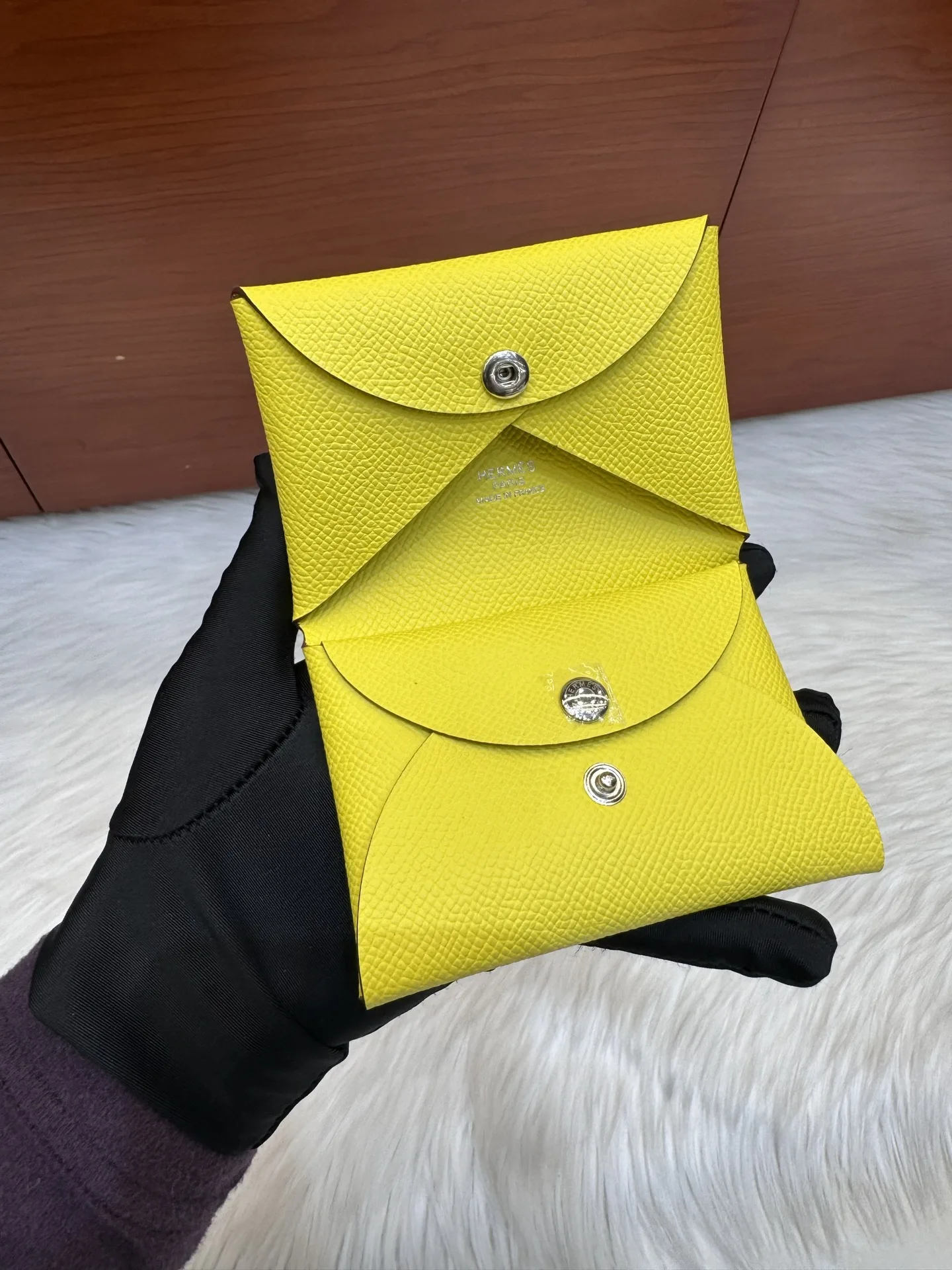 Calvi Duo card holder, Epsom leather, jaune citron, silver hardware