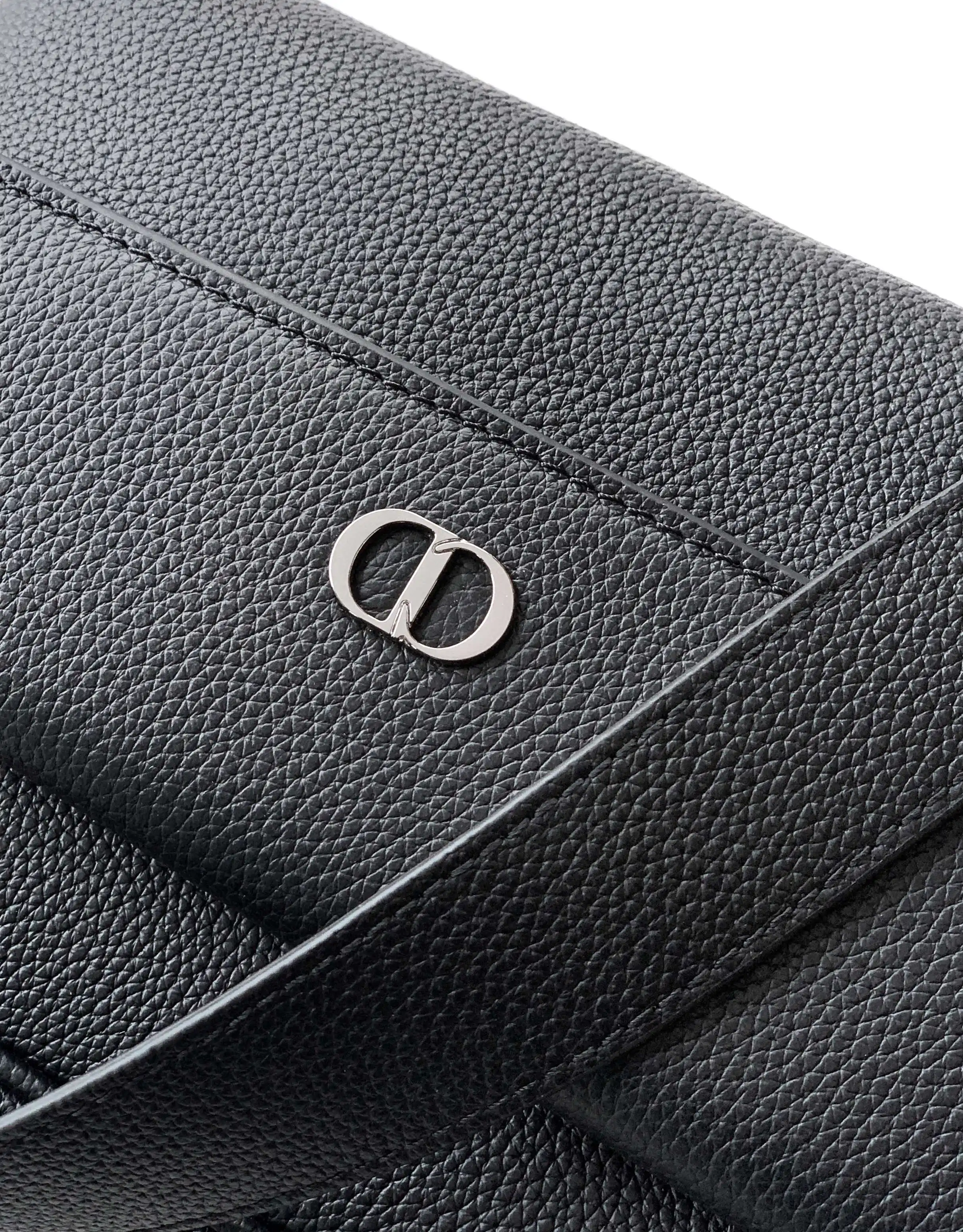 The CD Icon zip messenger bag is a new addition to the Winter 2025 menswear collection, featuring a minimalist design that showcases Dior s exquisite craftsmanship. It is meticulously crafted from black matte grain leather, adorned with a black metal-coated CD Icon logo on the front, complemented by a D-shaped ring for hanging a leather luggage tag, which is embellished with a CD embossed logo for added sophistication. The design is practical and compact, with a front flap pocket and a back slip pocket, providing compartments for various daily essentials, while the CD lining is inspired by Dior s tailoring craftsmanship. The classic style includes an adjustable strap for shoulder or crossbody wear, harmonizing with a variety of pieces. Dimensions: 24 x 16 x 9 cm. Item number: 1ICPO378ICO.