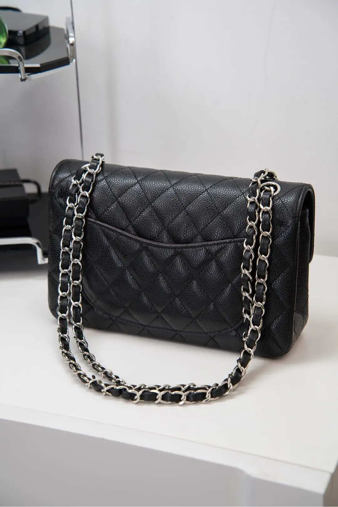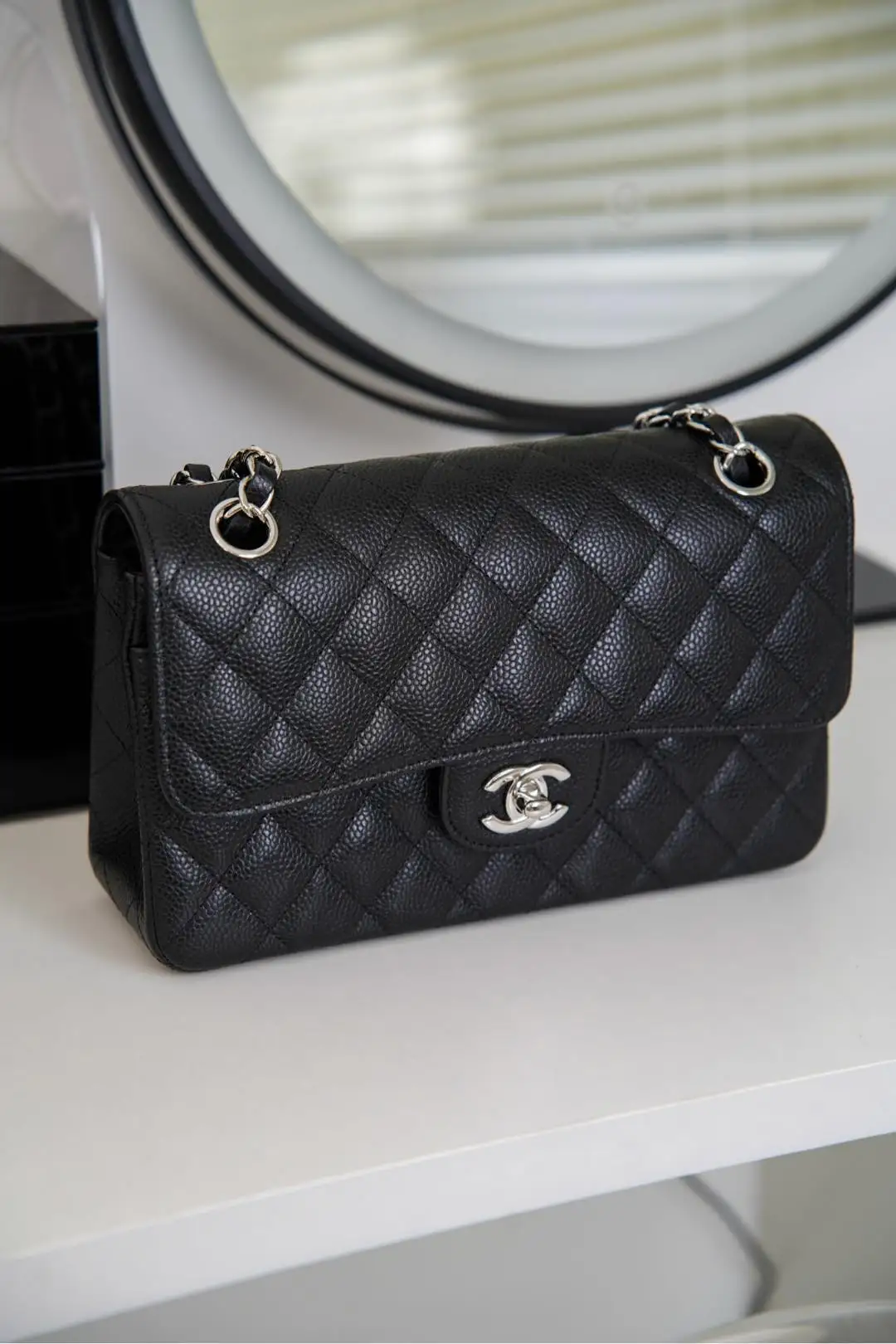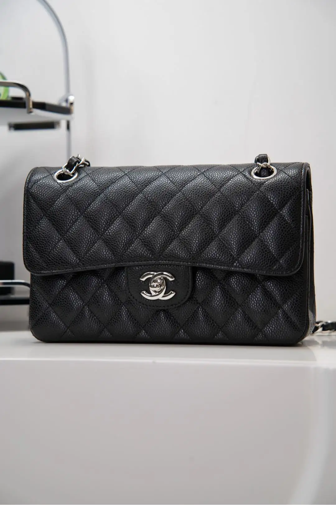 Original Chip Version ℂ𝔽 𝗖𝗹𝗮𝘀𝘀𝗶𝗰 𝗙𝗹𝗮𝗽 Authentic Leather Small Size Black Cow Silver Hardware French 𝐇𝐚𝐚𝐬 Original Lychee Ball Grain Leather, with unparalleled texture and color. Eleven years of handmade craftsmanship focused on the classic model, the front flap and body stitching perfectly aligned, the edge diamond pattern precisely 1:2. Meticulously crafted to present the true essence of the authentic product! Size: 14.5x23x6cm